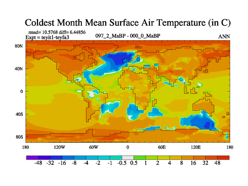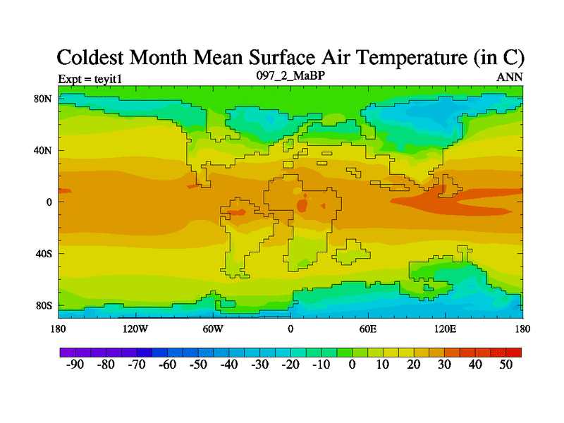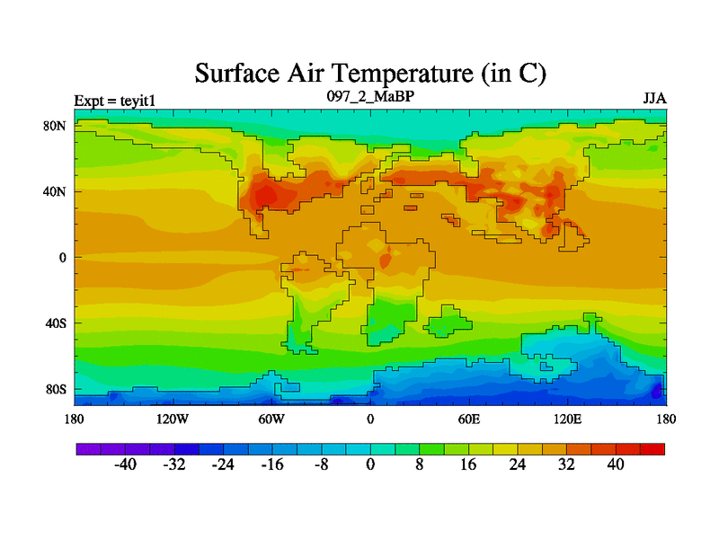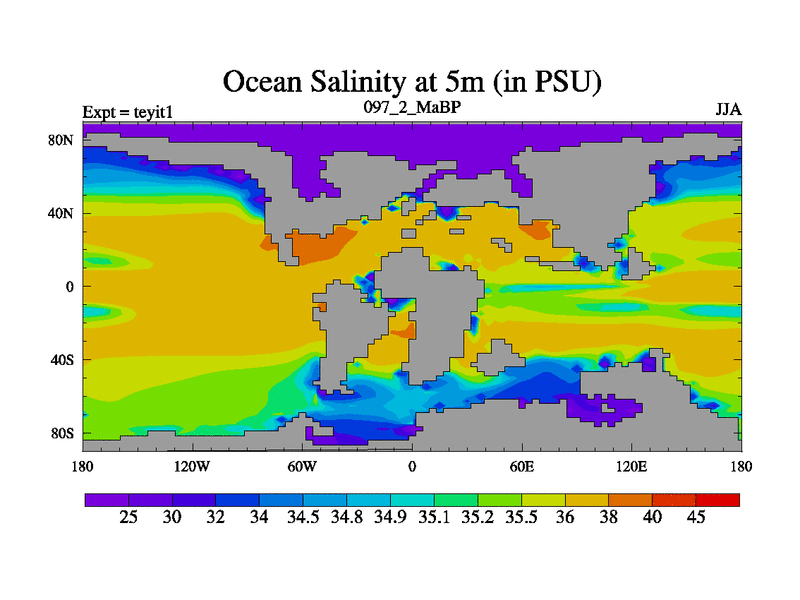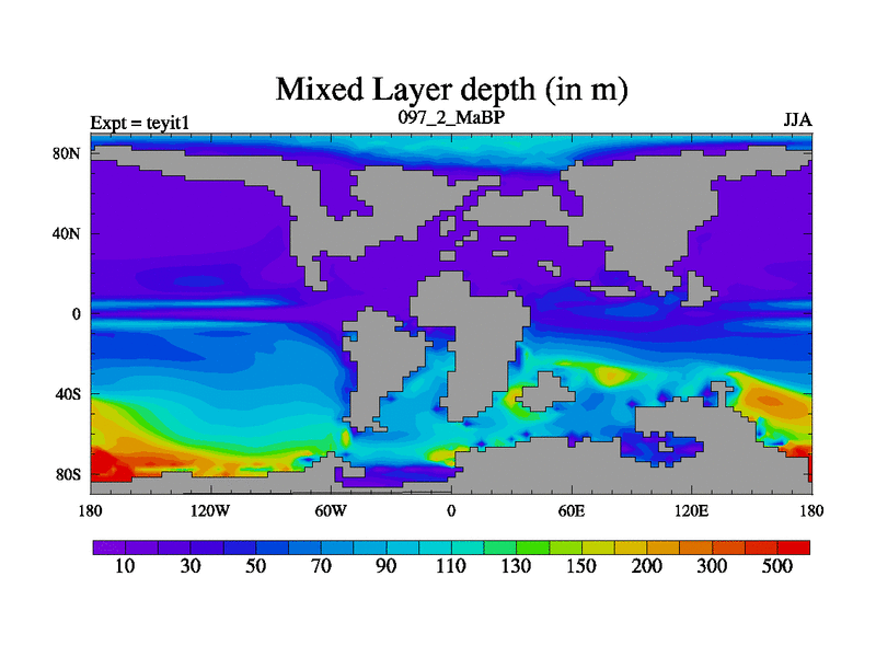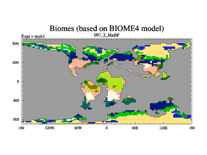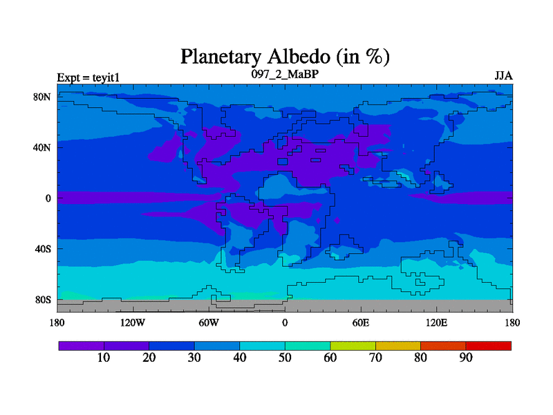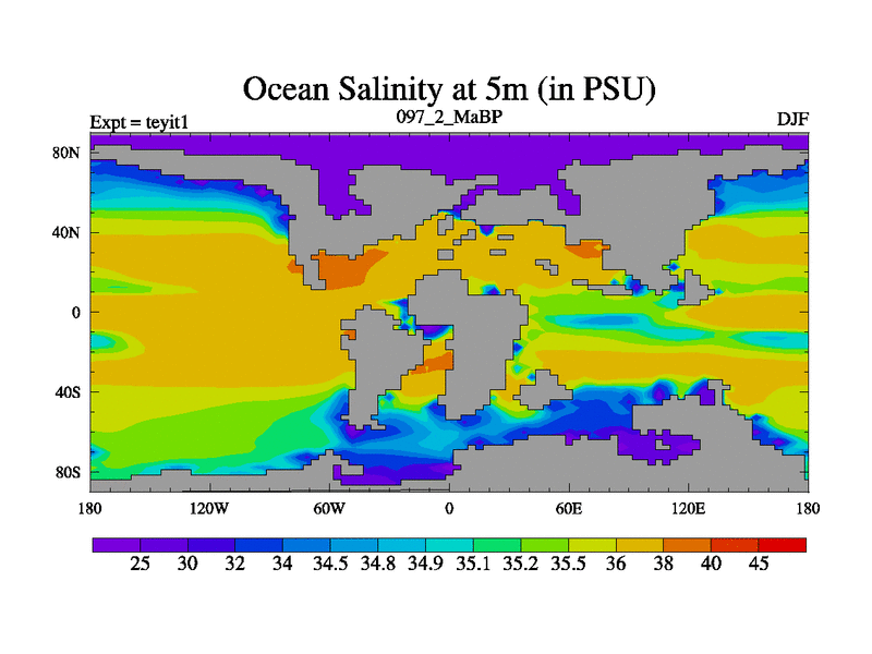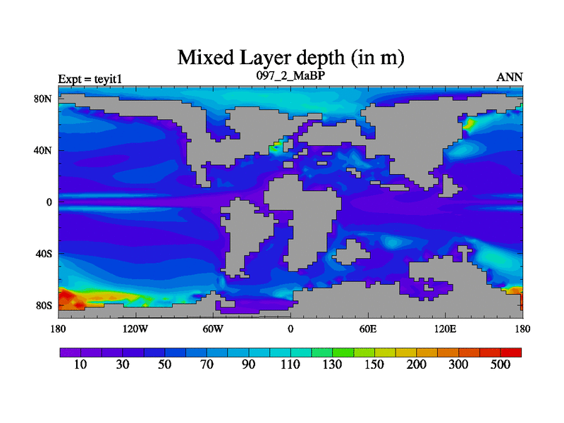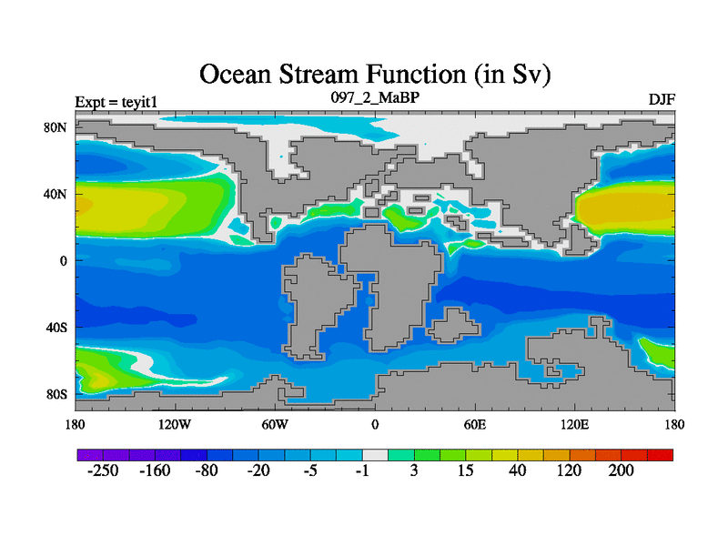 This is the 97.2 Ma simulation using the Scotese palaeogeographies and revised CCN etc. Now includes ocean biogeochemistry