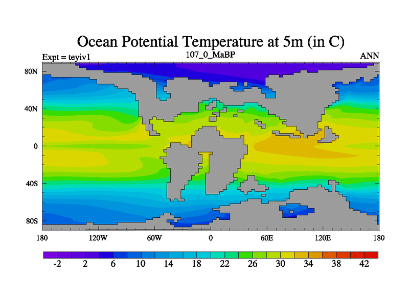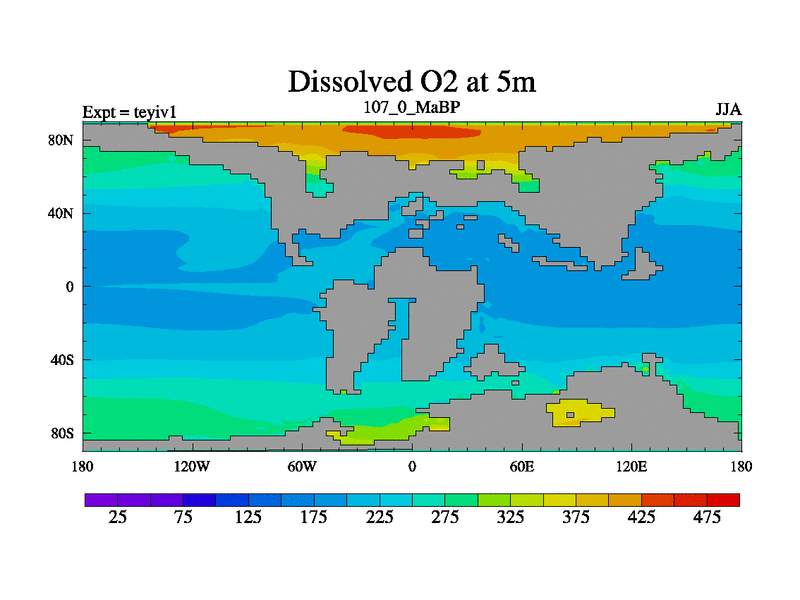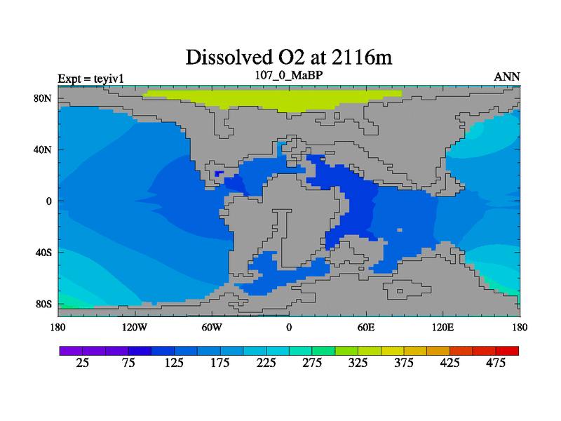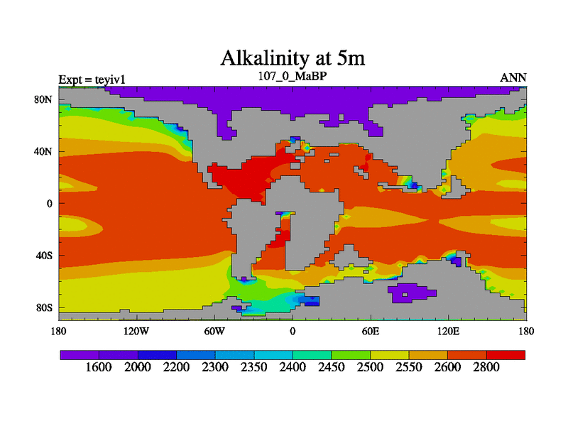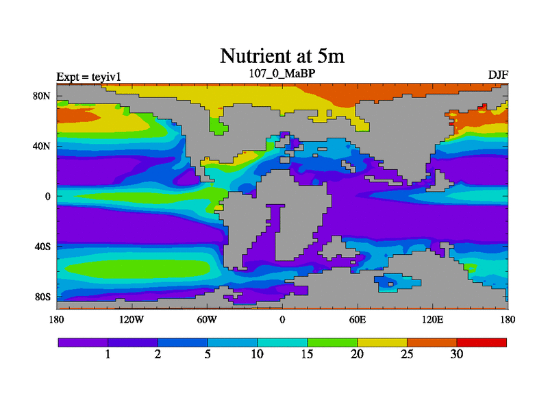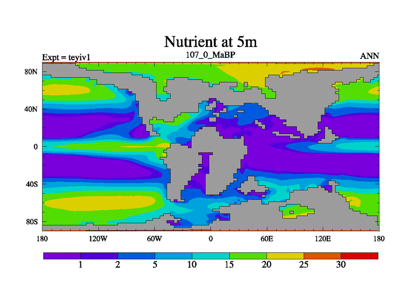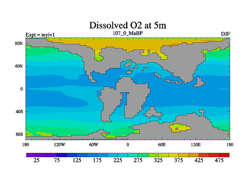 This is the 107.0 Ma simulation using the Scotese palaeogeographies and revised CCN etc. Now includes ocean biogeochemistry