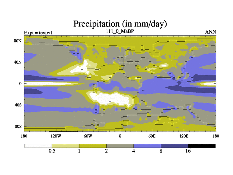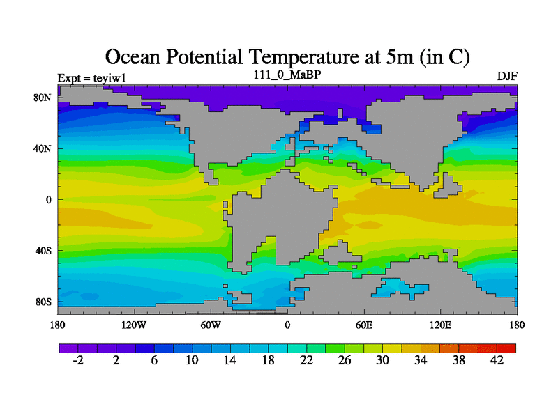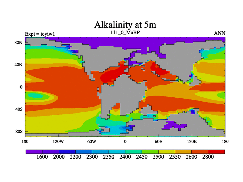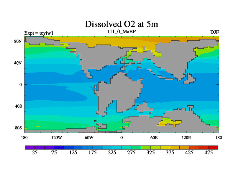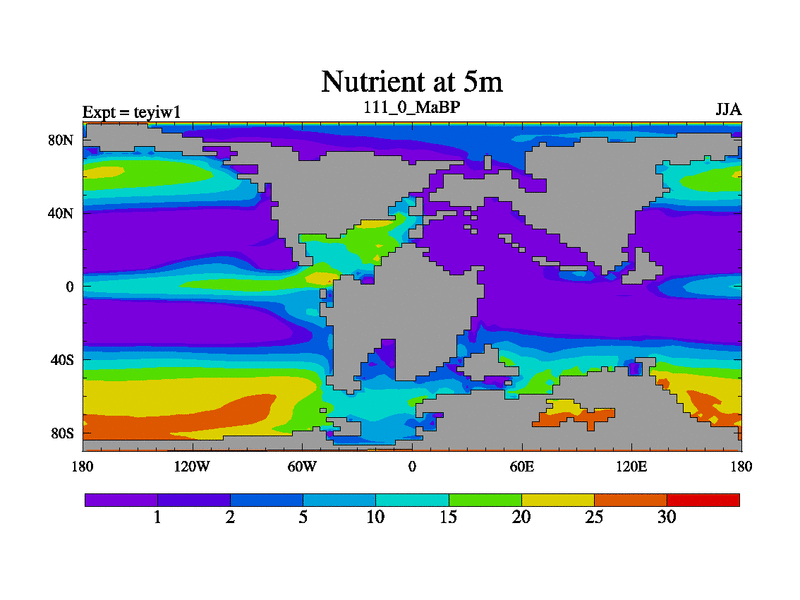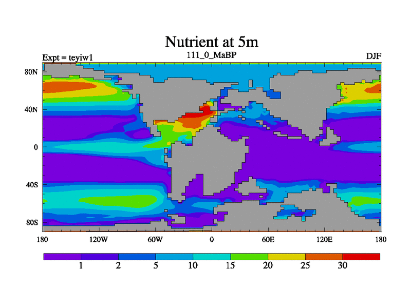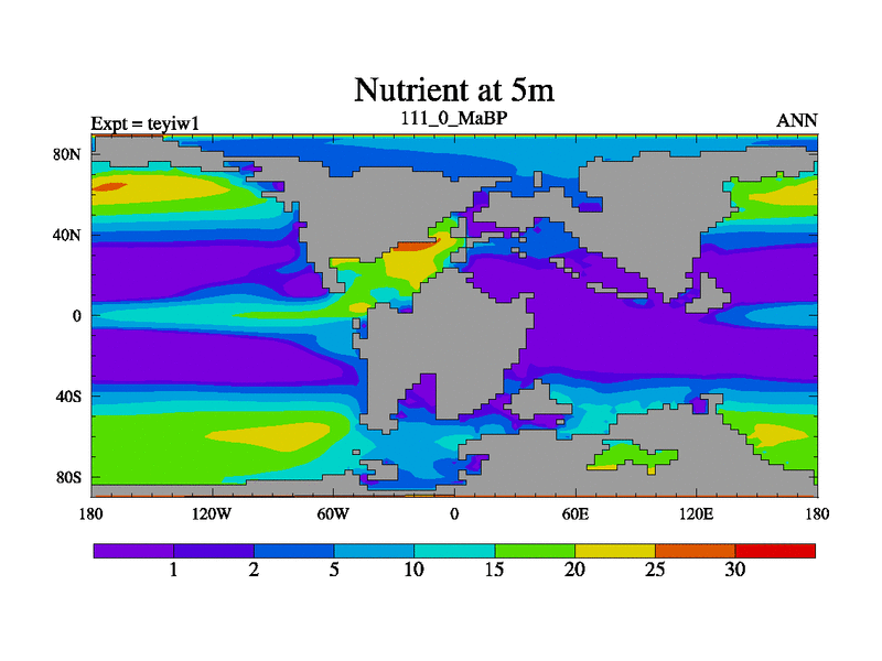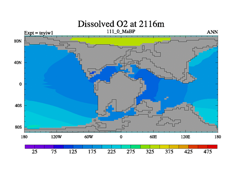 This is the 111.0 Ma simulation using the Scotese palaeogeographies and revised CCN etc. Now includes ocean biogeochemistry