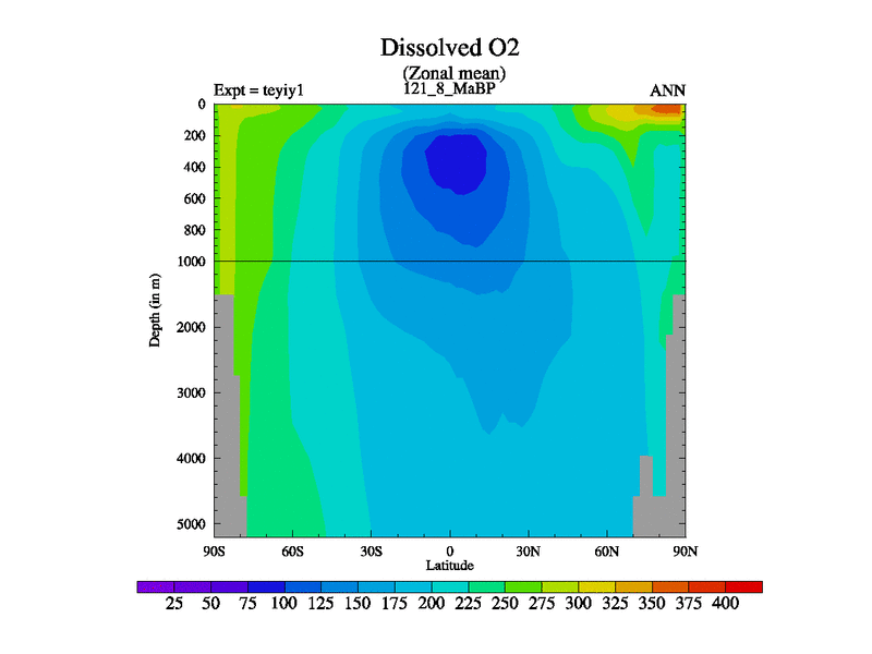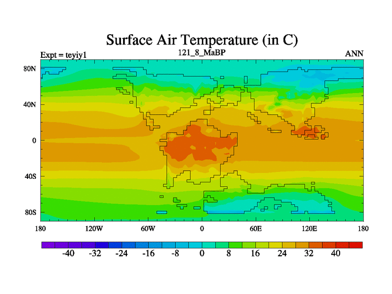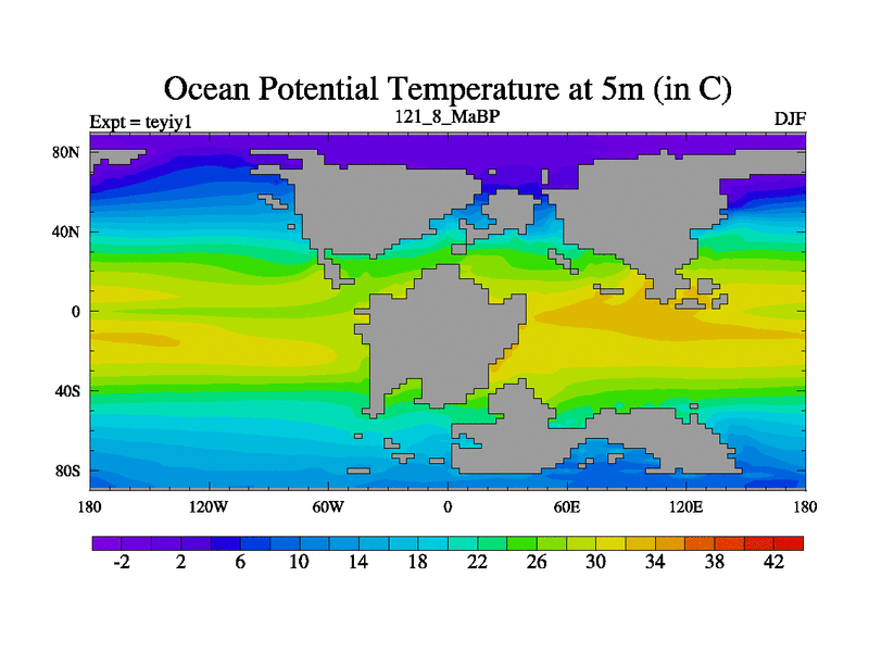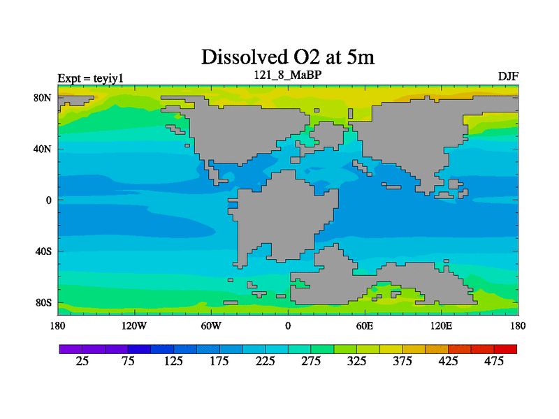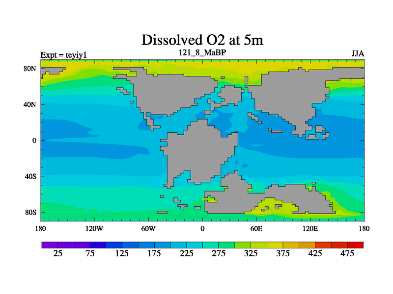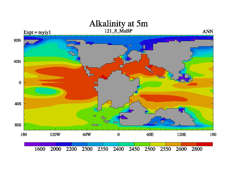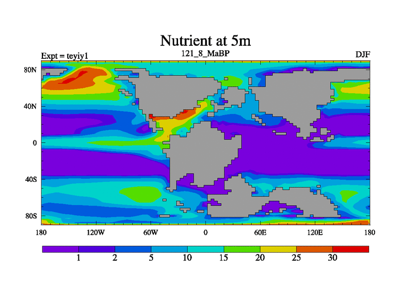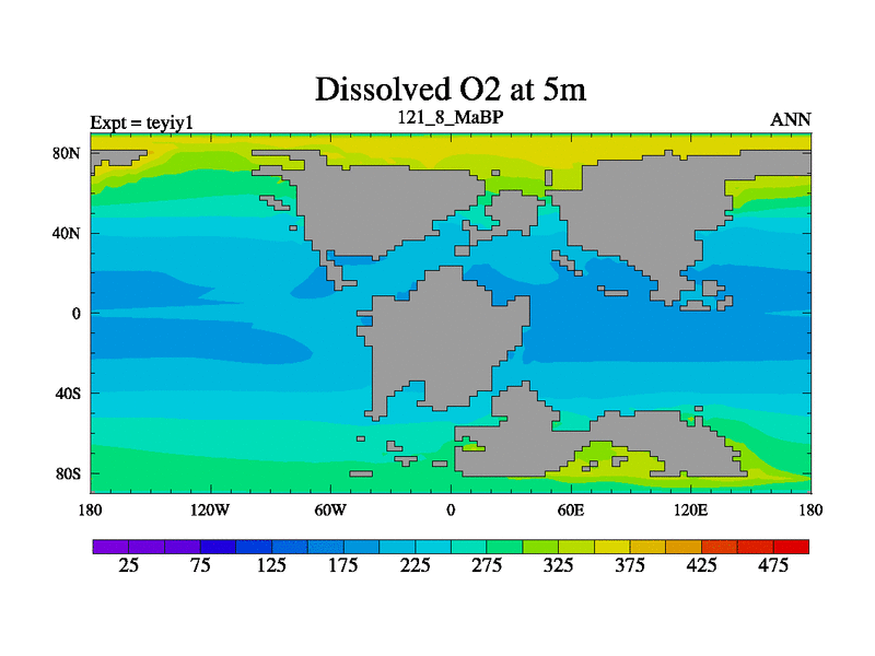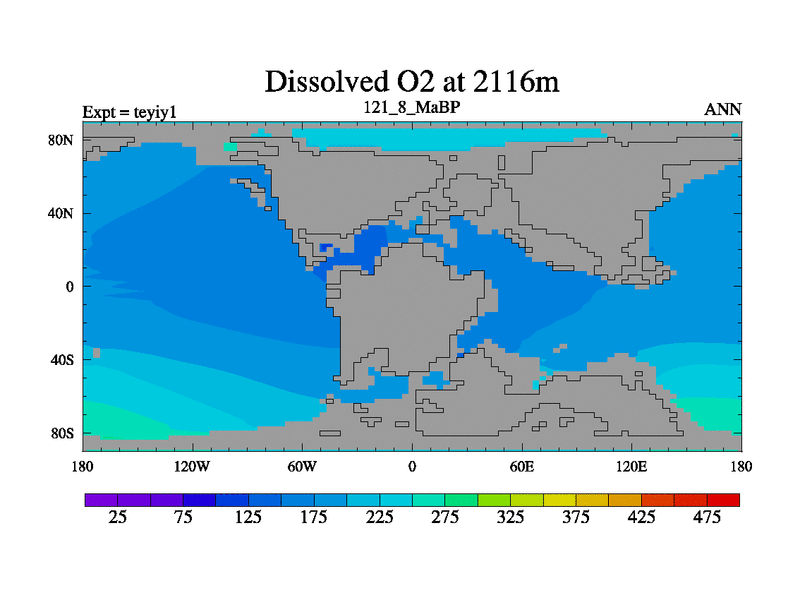 This is the 121.8 Ma simulation using the Scotese palaeogeographies and revised CCN etc. Now includes ocean biogeochemistry