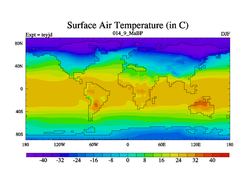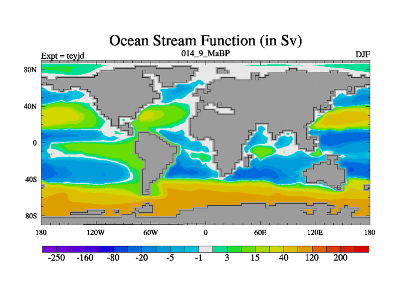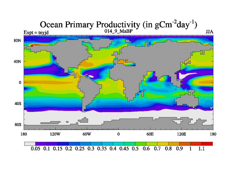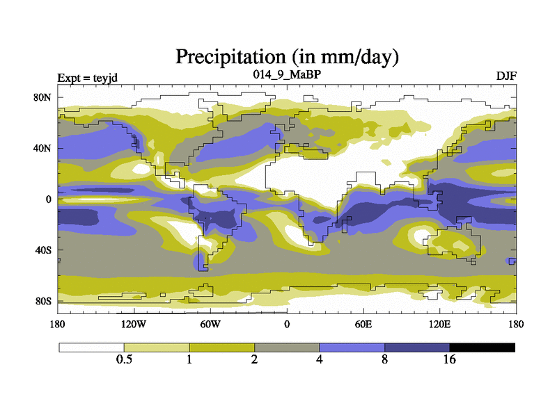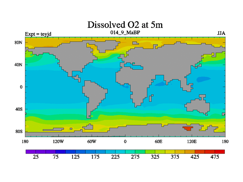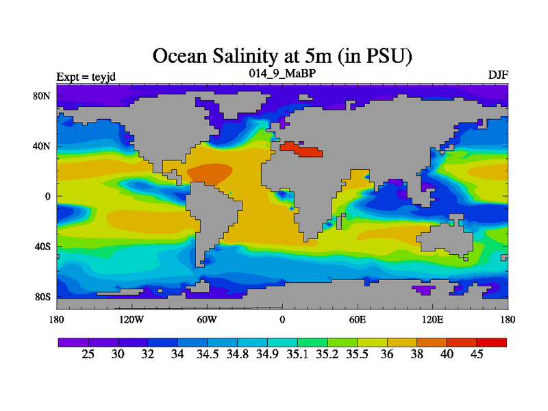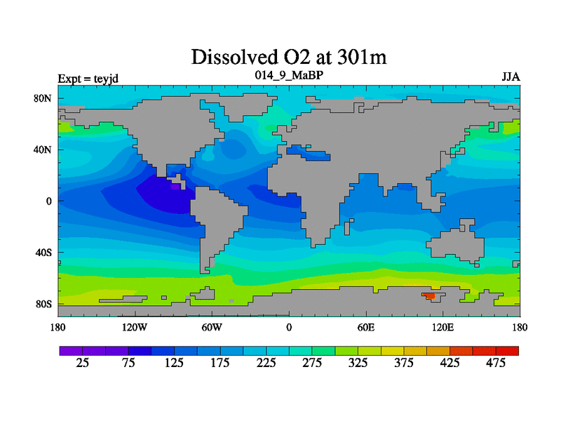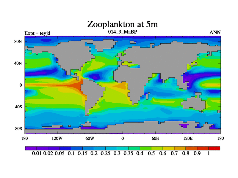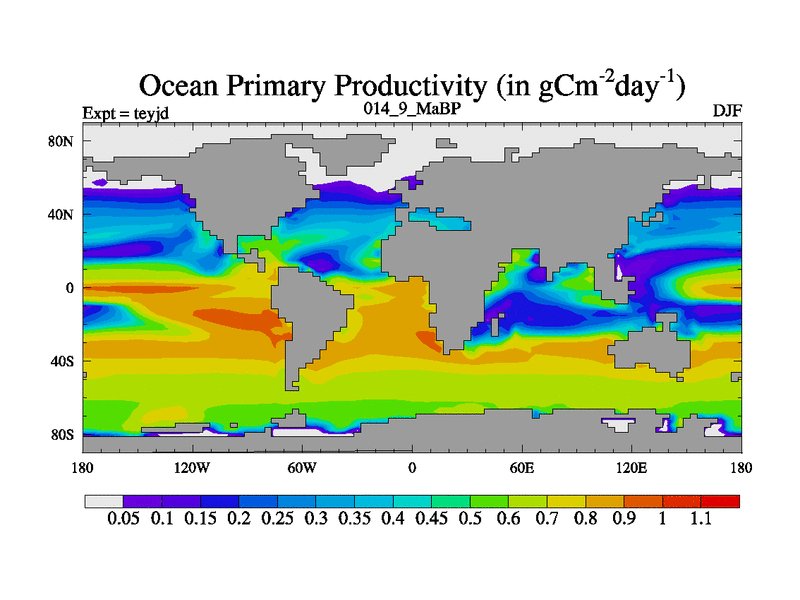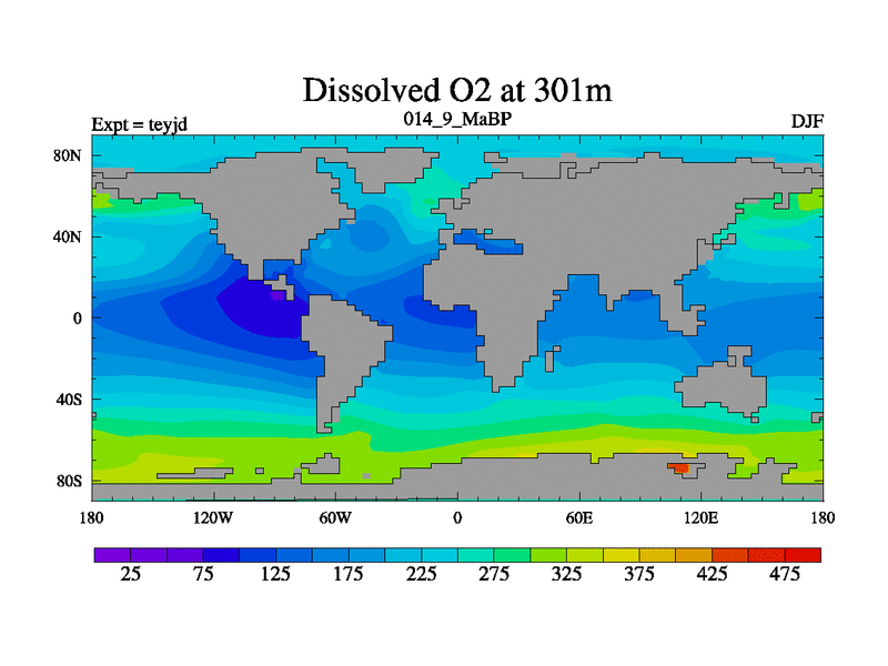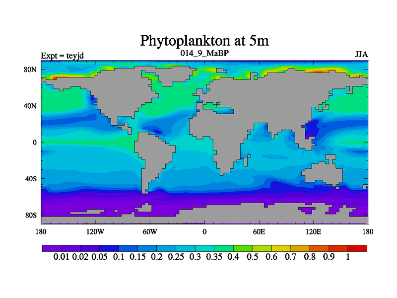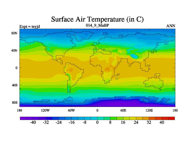 This is the 14.9 Ma simulation using the Scotese palaeogeographies and revised CCN etc. As teyfa3 but corrected orography problem over Antartartica. Now includes ocean biogeochemistry