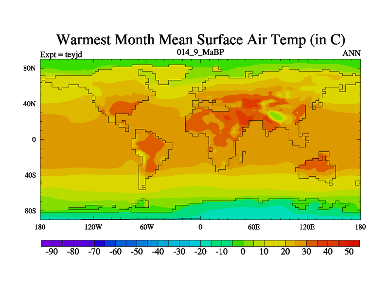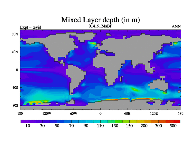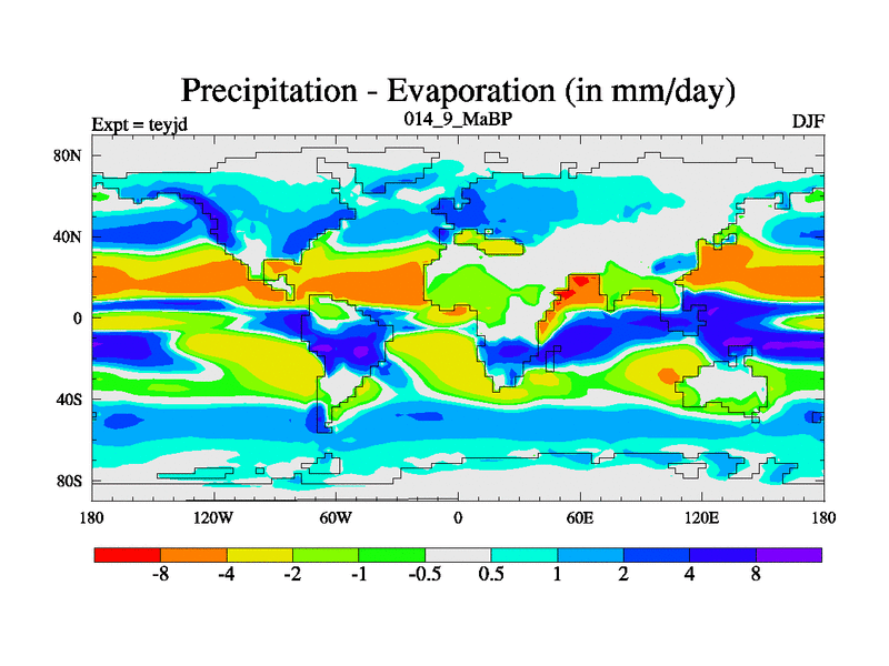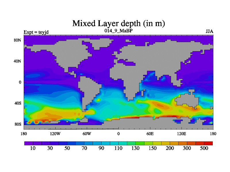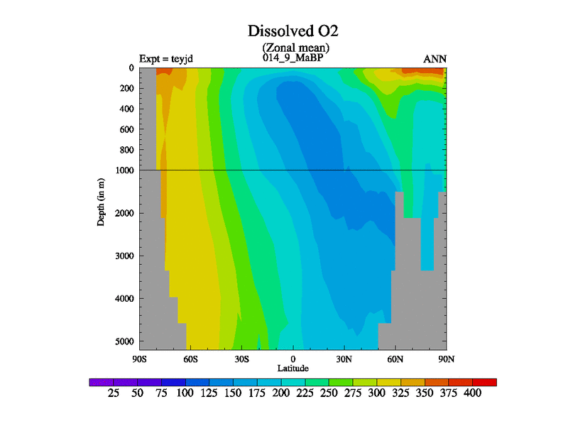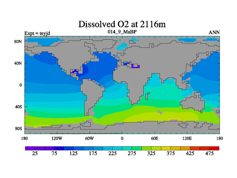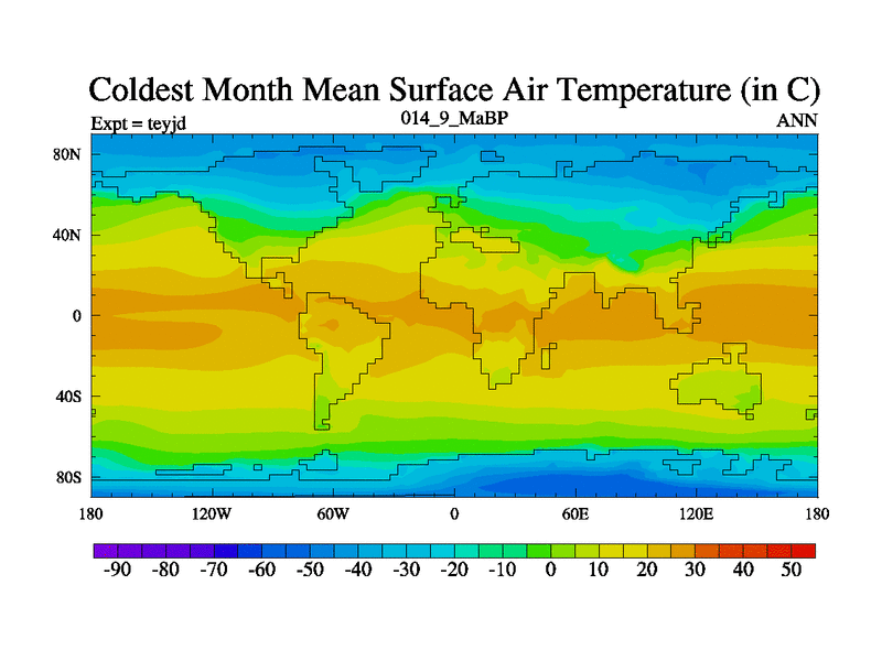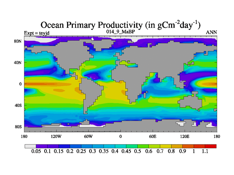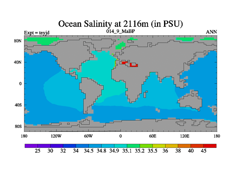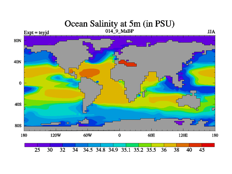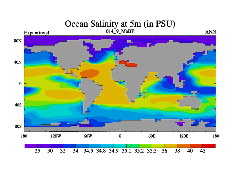 This is the 14.9 Ma simulation using the Scotese palaeogeographies and revised CCN etc. As teyfa3 but corrected orography problem over Antartartica. Now includes ocean biogeochemistry
