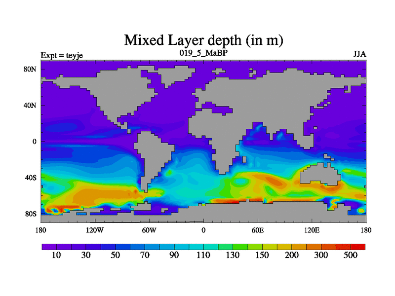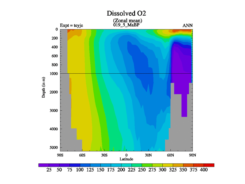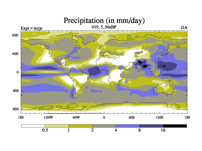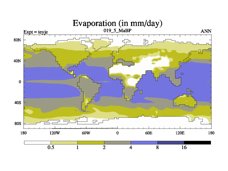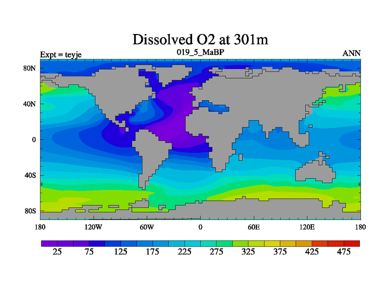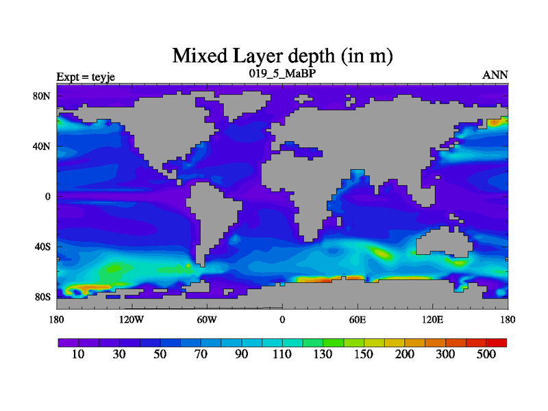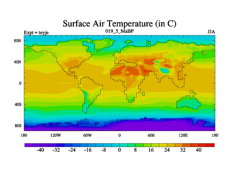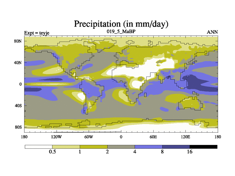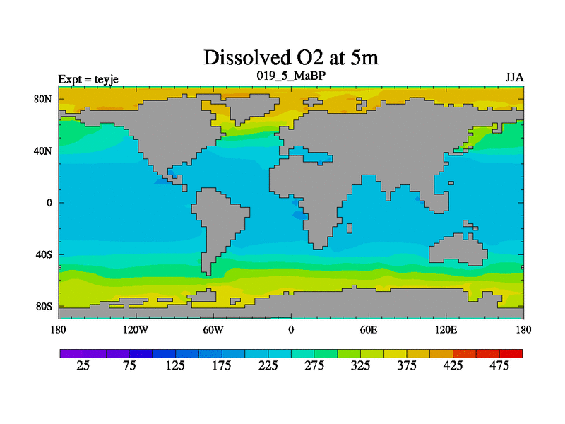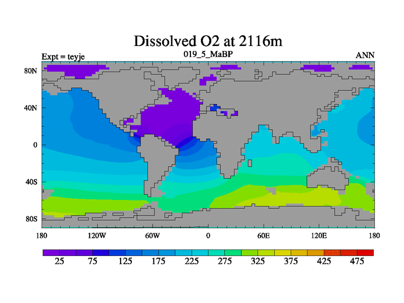 This is the 19.5 Ma simulation using the Scotese palaeogeographies and revised CCN etc. As teyfa3 but corrected orography problem over Antartartica. Now includes ocean biogeochemistry