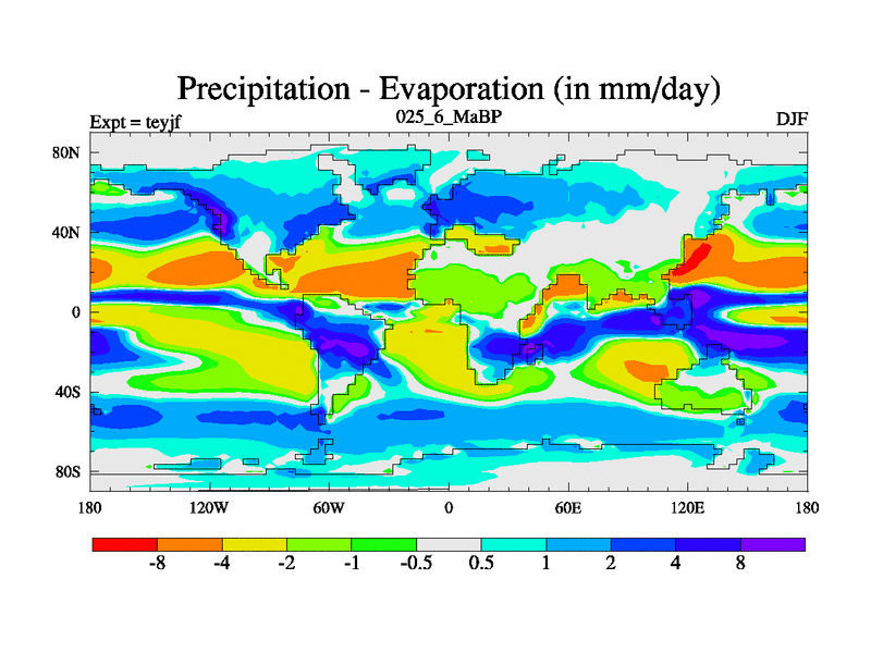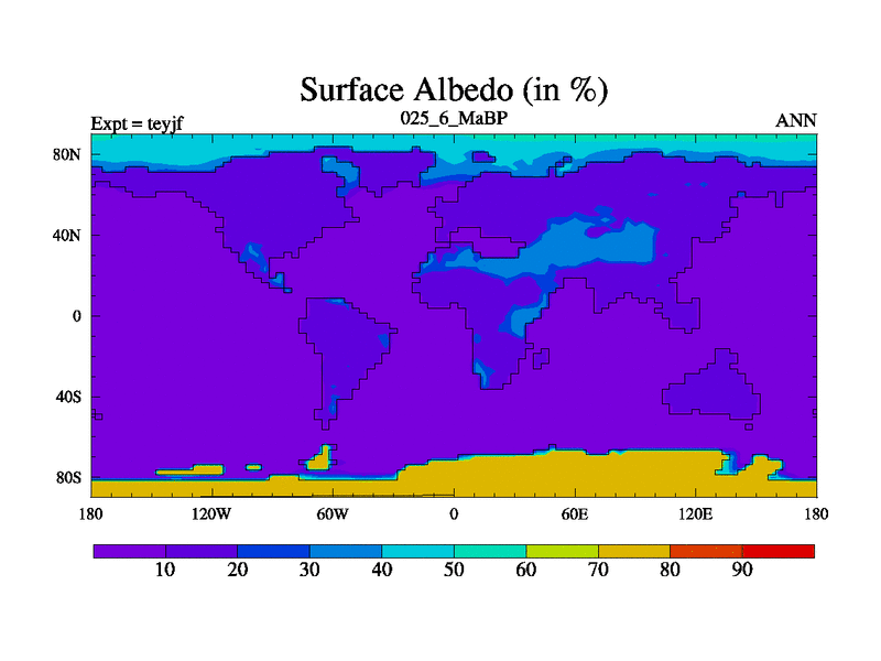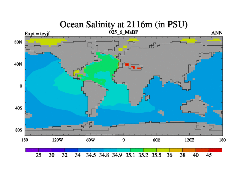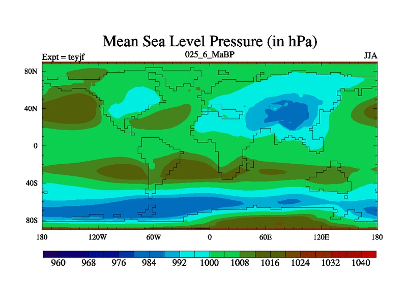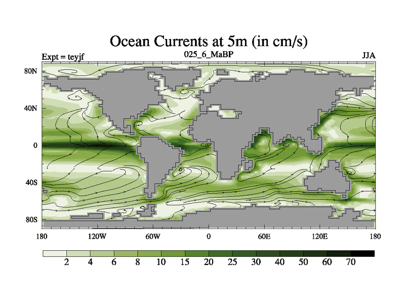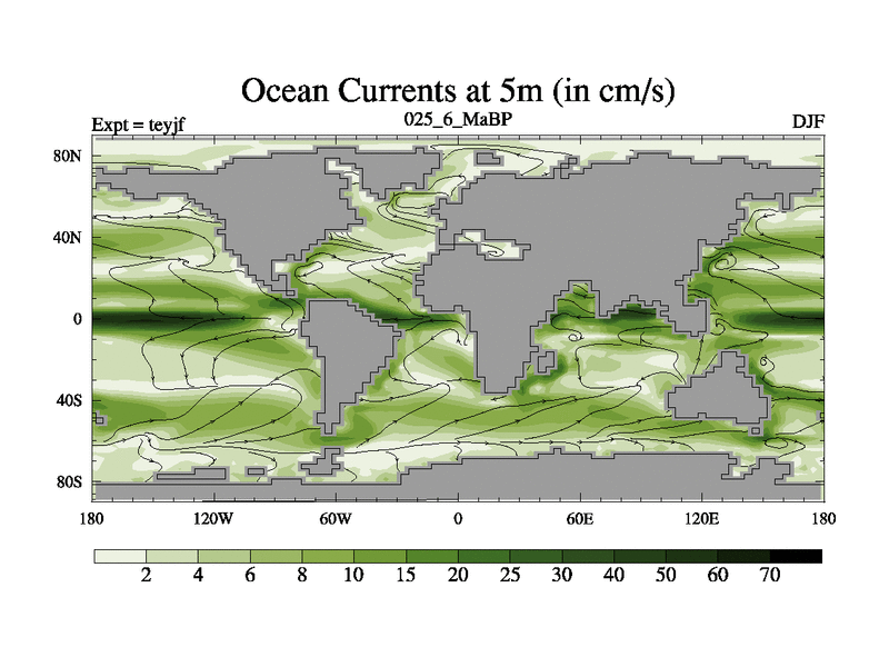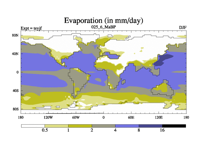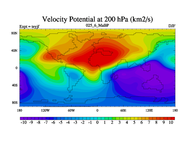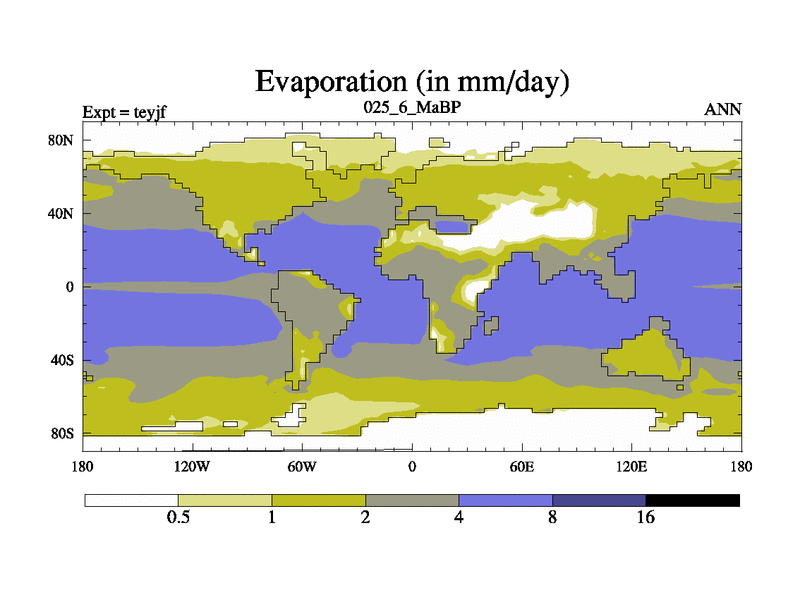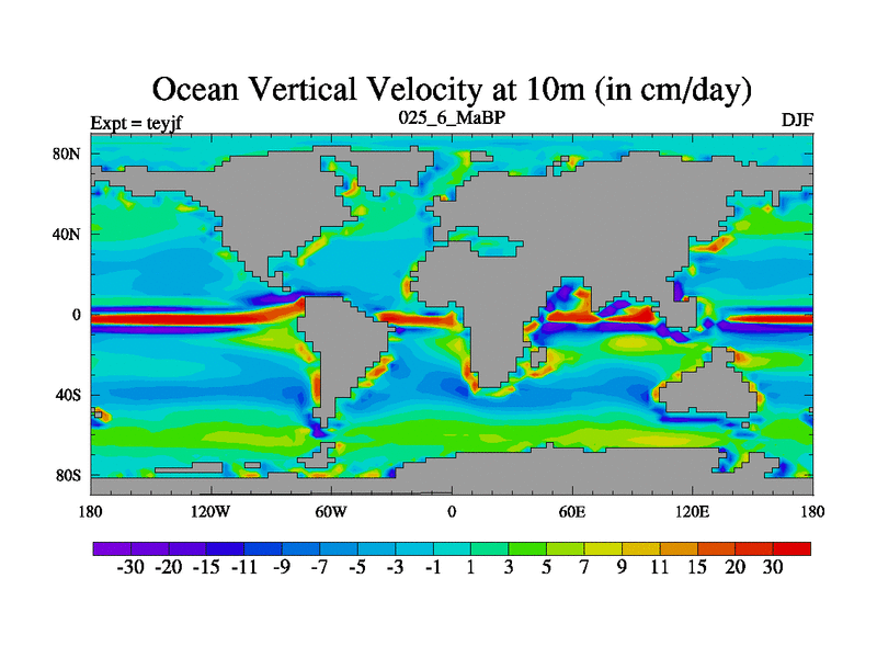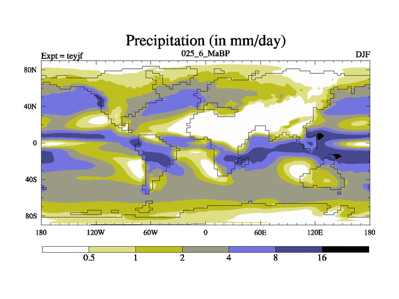 This is the 25.6 Ma simulation using the Scotese palaeogeographies and revised CCN etc. As teyfa3 but corrected orography problem over Antartartica. Now includes ocean biogeochemistry