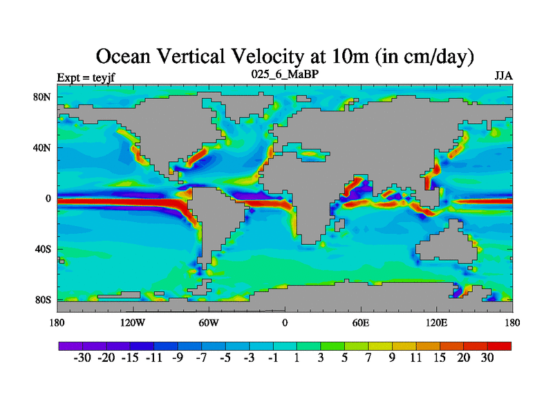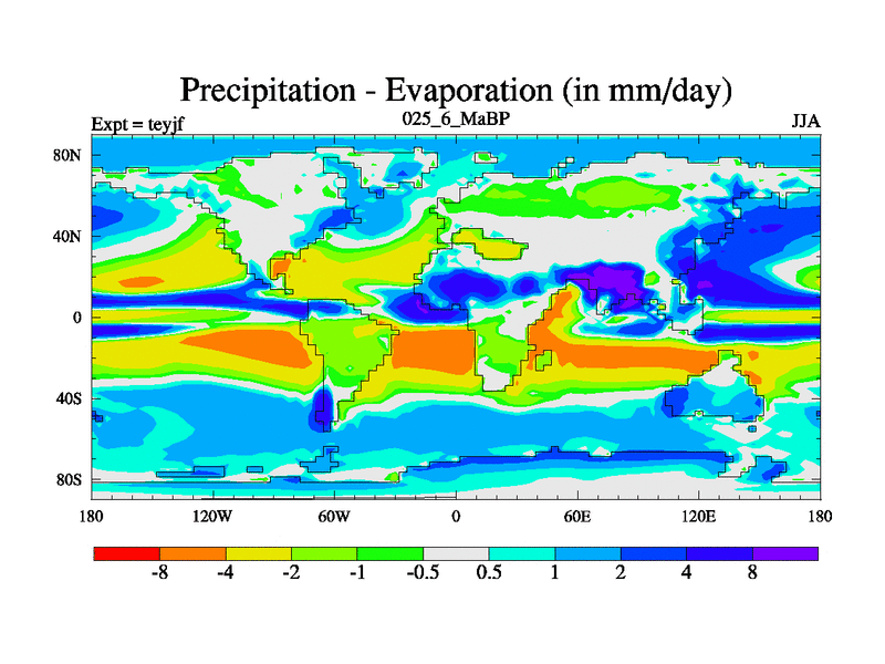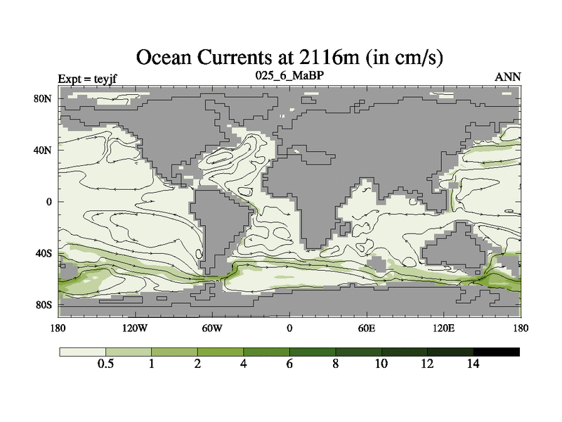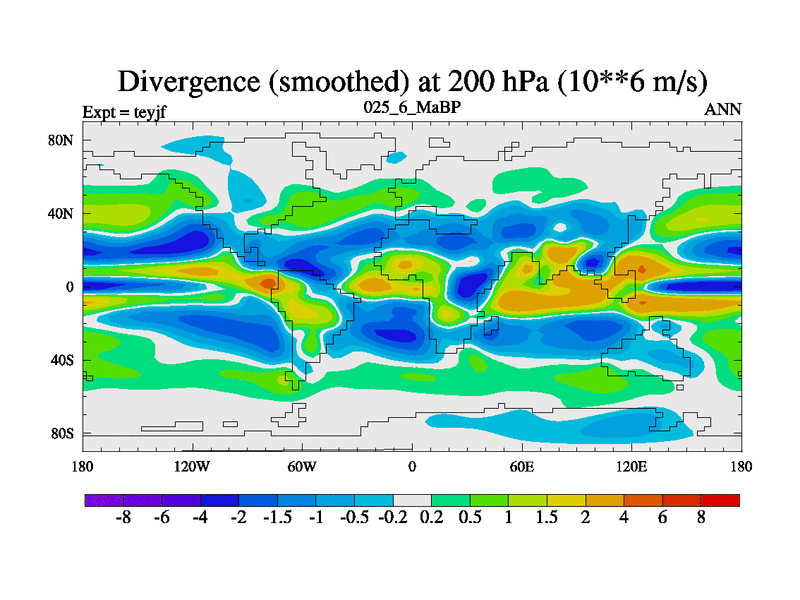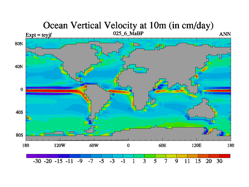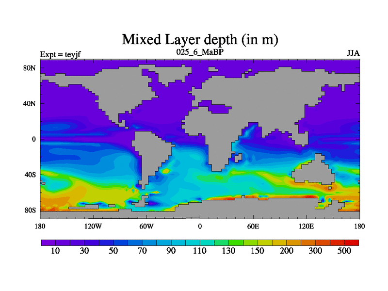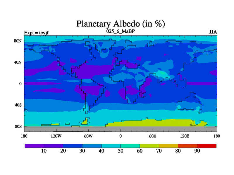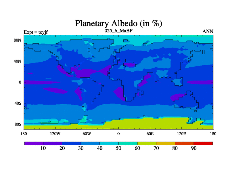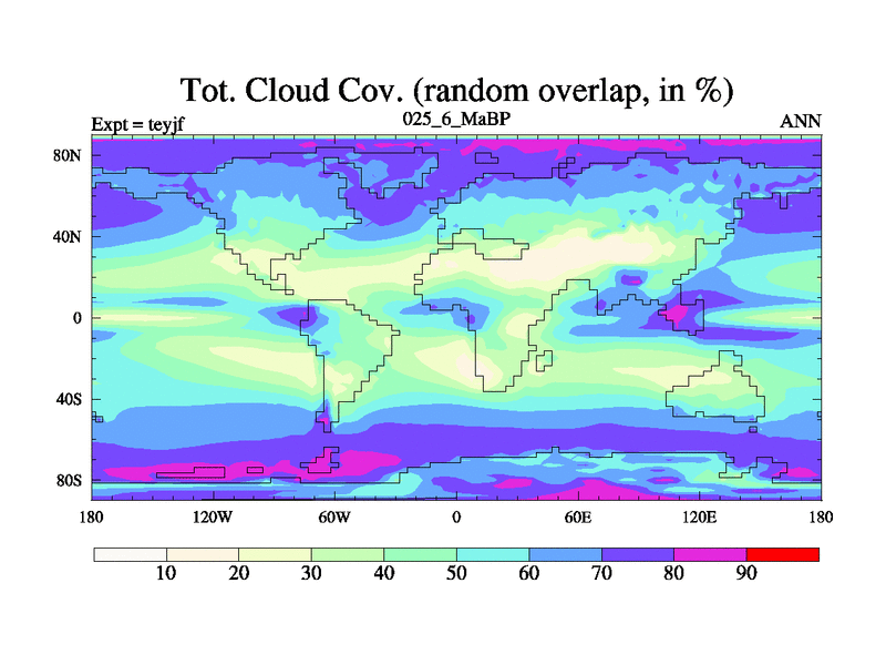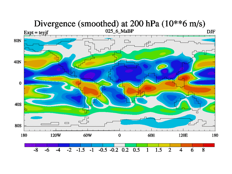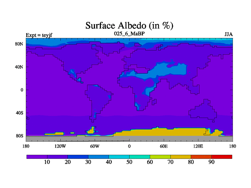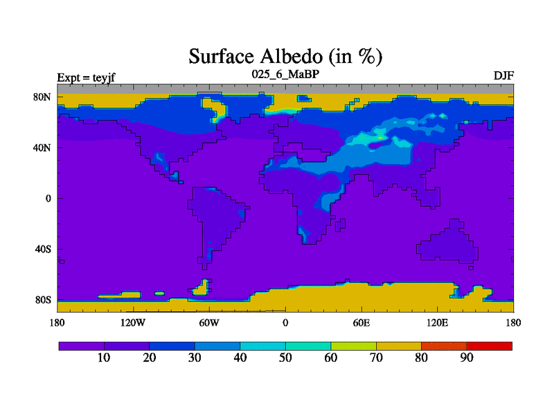This is the 25.6 Ma simulation using the Scotese palaeogeographies and revised CCN etc. As teyfa3 but corrected orography problem over Antartartica. Now includes ocean biogeochemistry