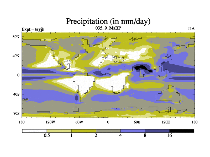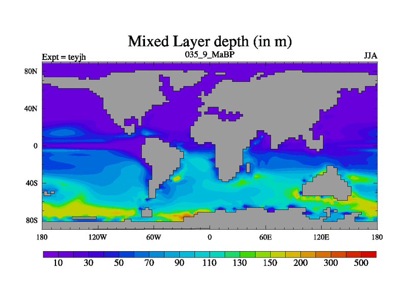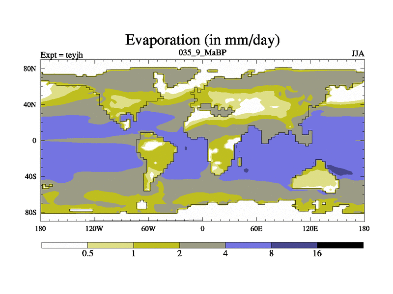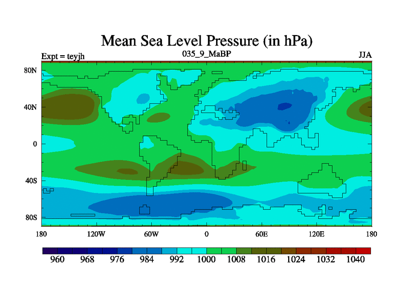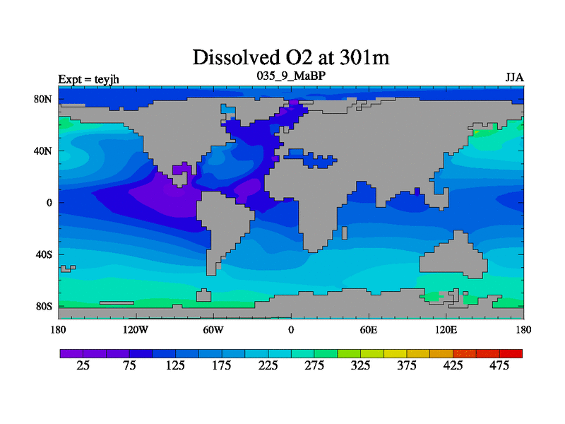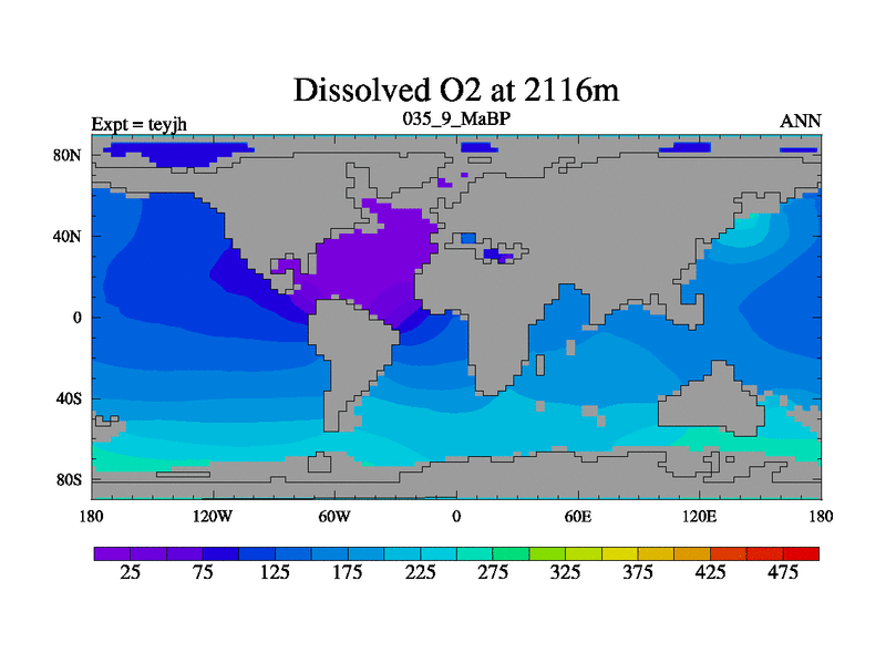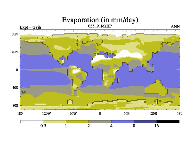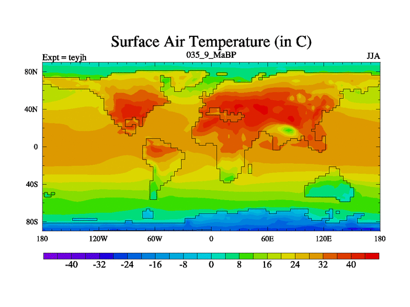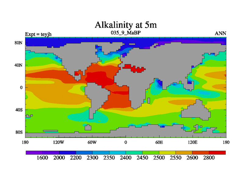 This is the 35.9 Ma simulation using the Scotese palaeogeographies and revised CCN etc. As teyfa3 but corrected orography problem over Antartartica. Now includes ocean biogeochemistry