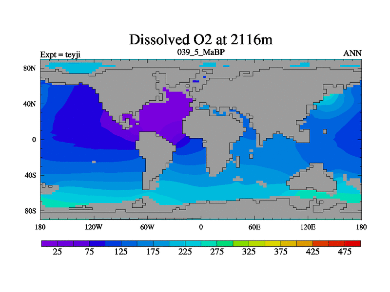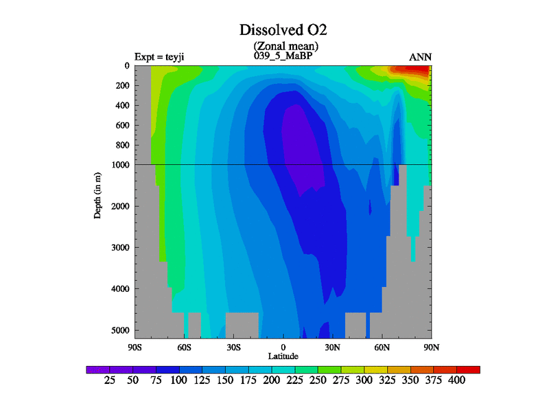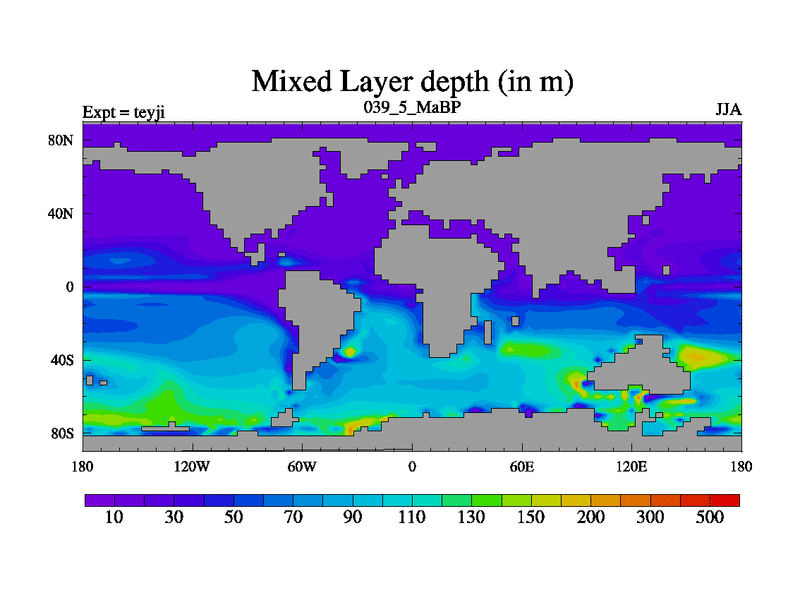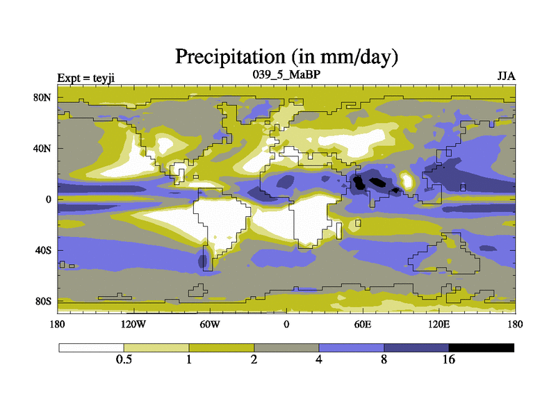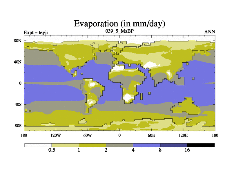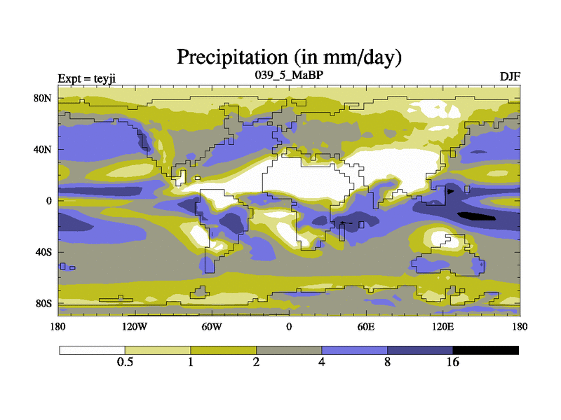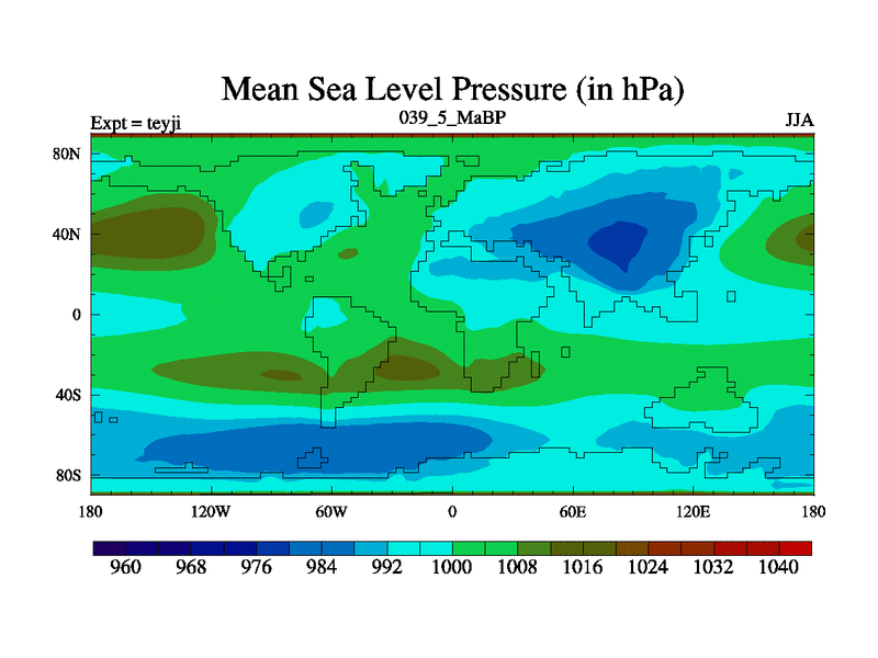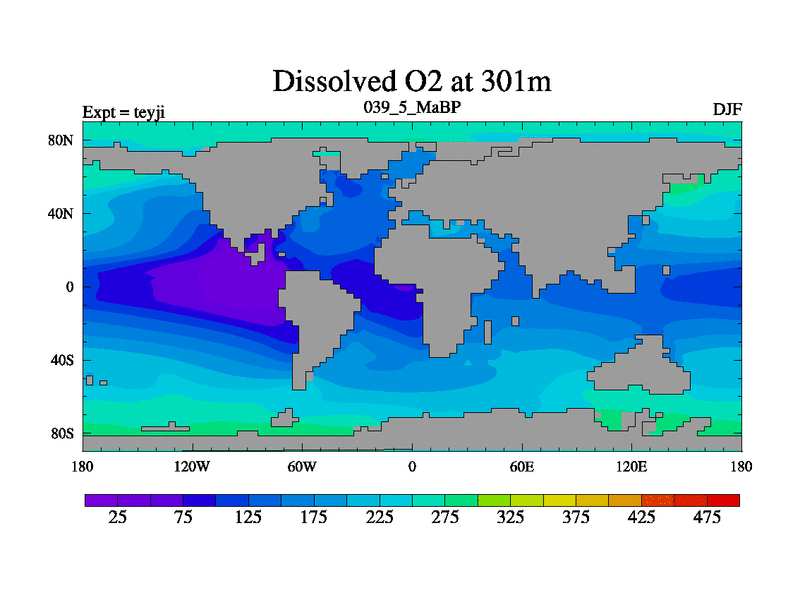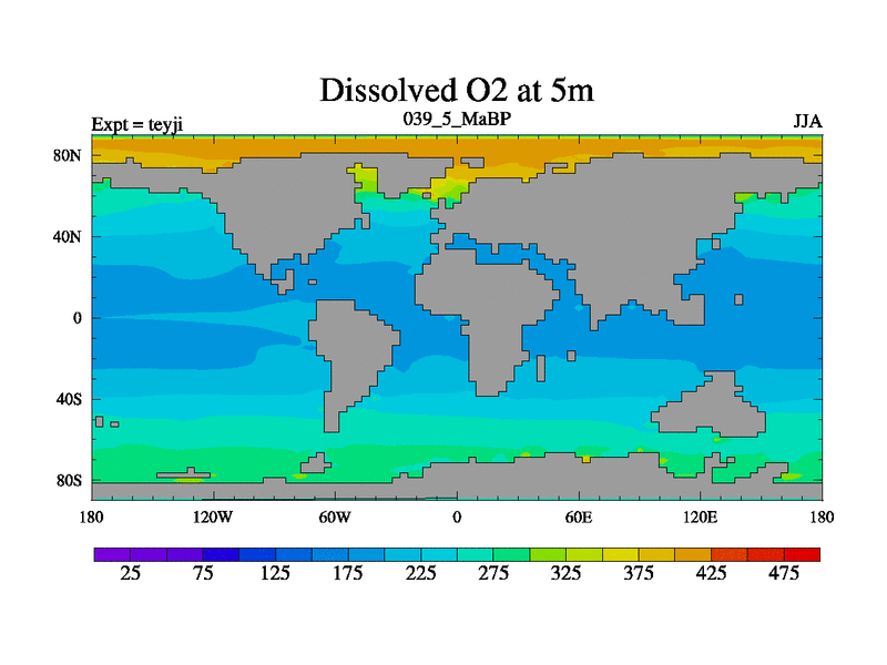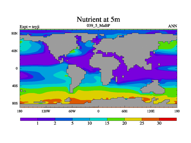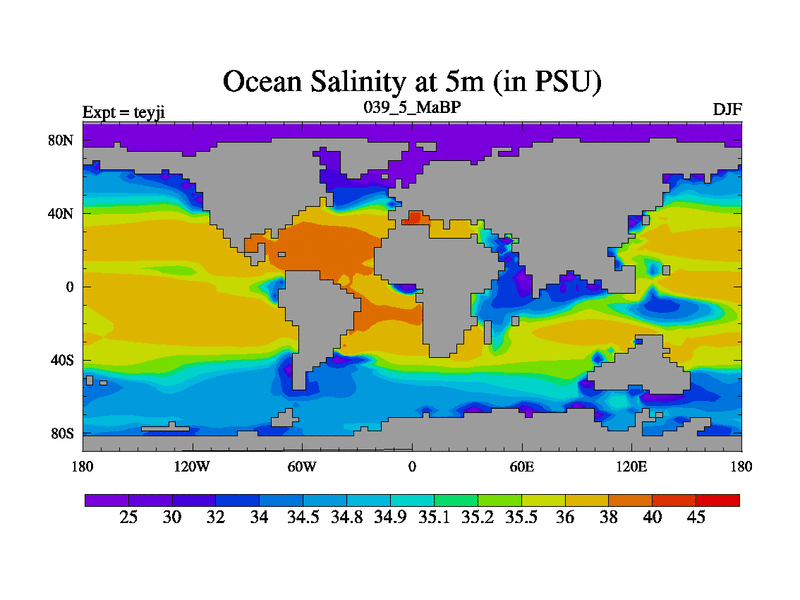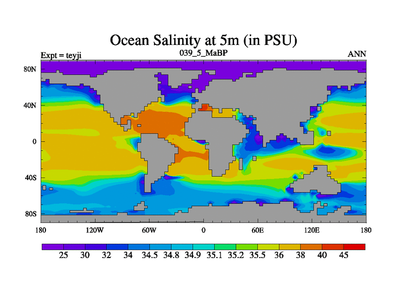 This is the 39.5 Ma simulation using the Scotese palaeogeographies and revised CCN etc. As teyfa3 but corrected orography problem over Antartartica. Now includes ocean biogeochemistry