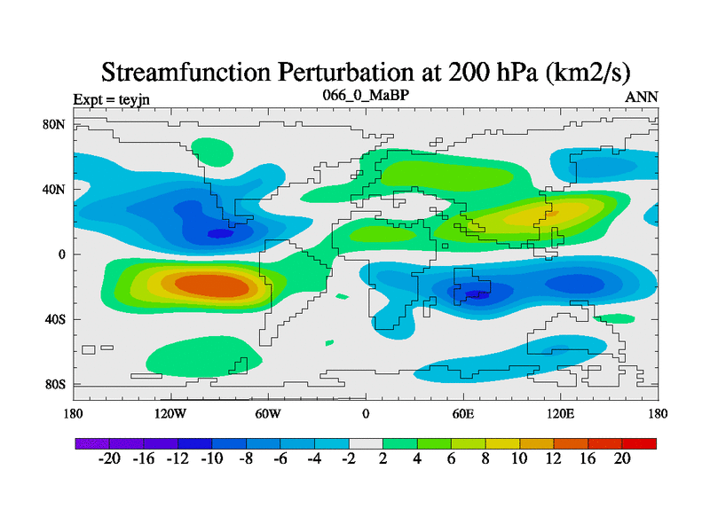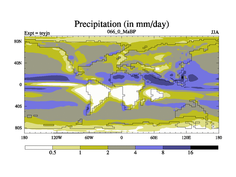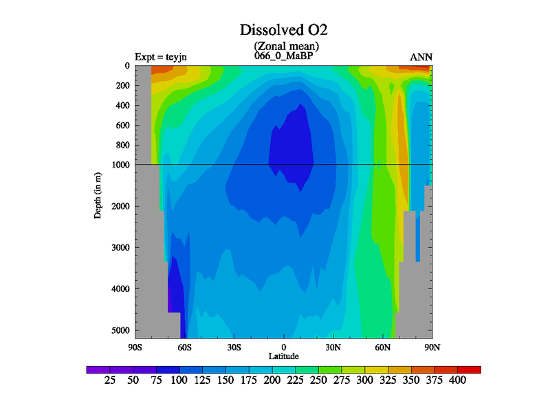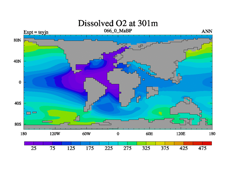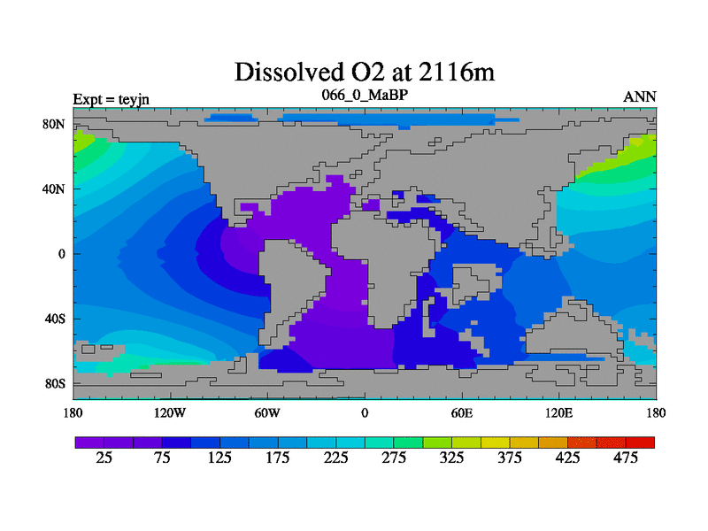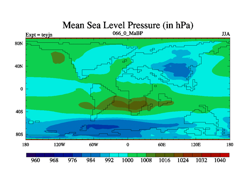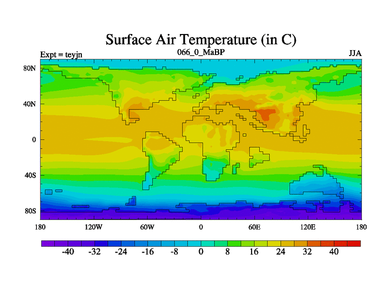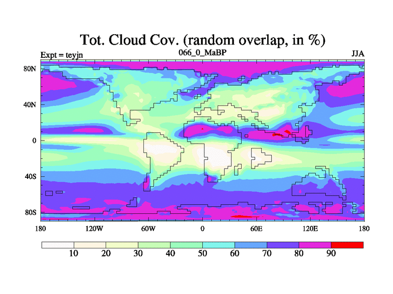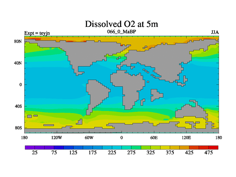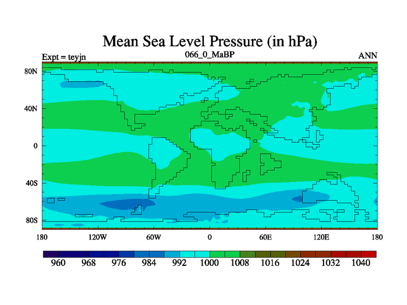 This is the 66.0 Ma simulation using the Scotese palaeogeographies and revised CCN etc. As teyfa3 but corrected orography problem over Antartartica. Now includes ocean biogeochemistry