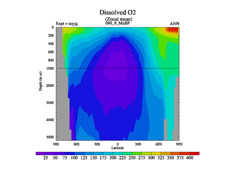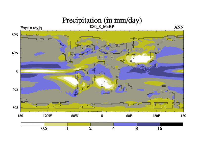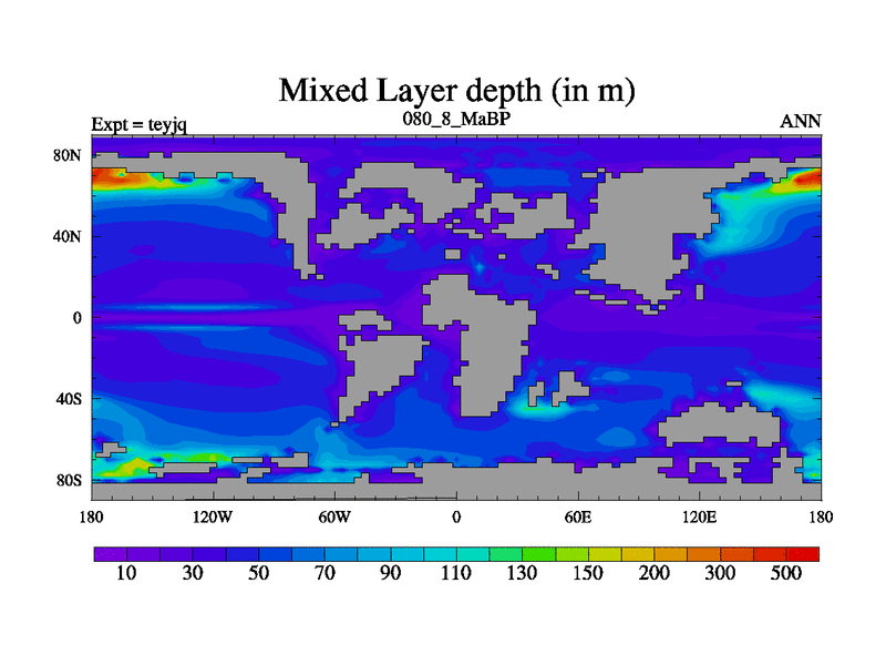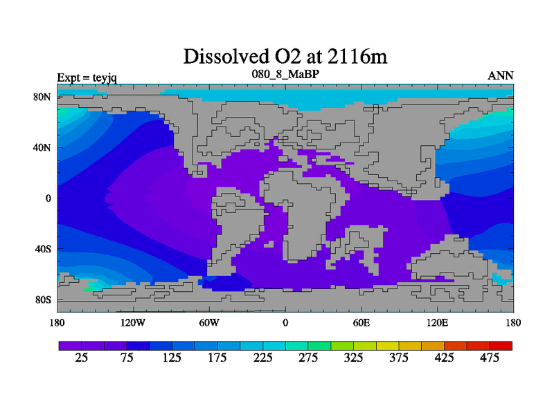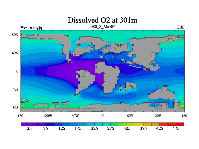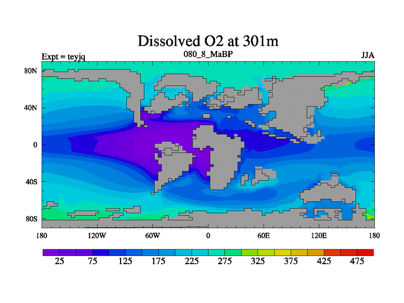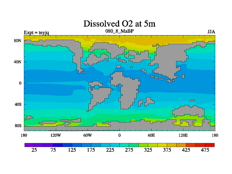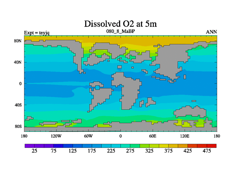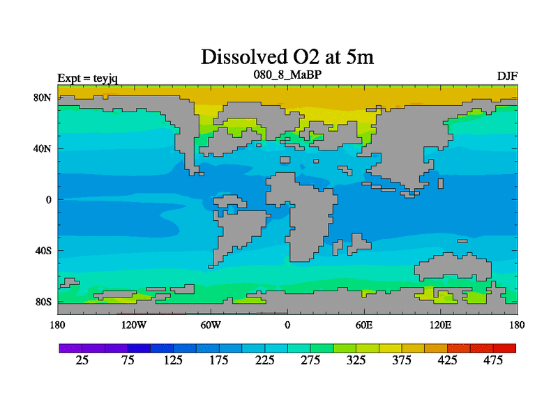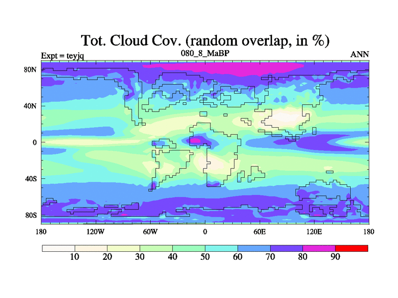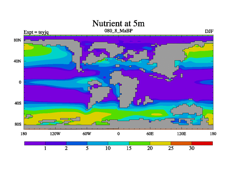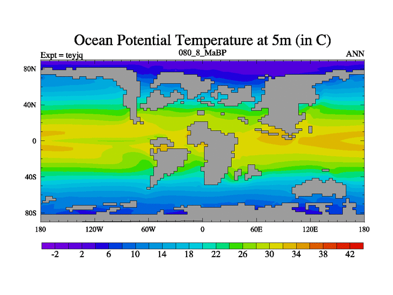 This is the 80.8 Ma simulation using the Scotese palaeogeographies and revised CCN etc. As teyfa3 but corrected orography problem over Antartartica. Now includes ocean biogeochemistry