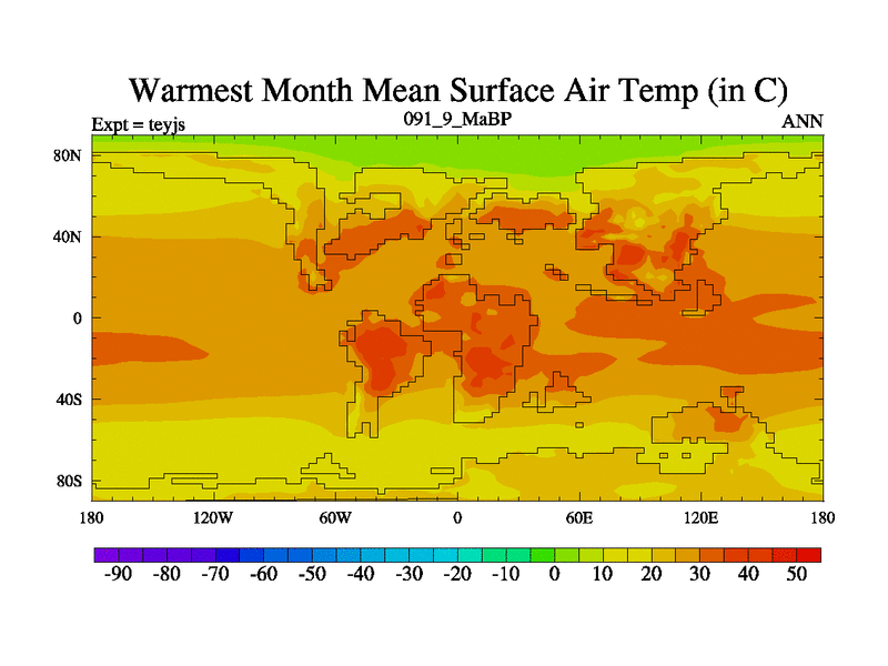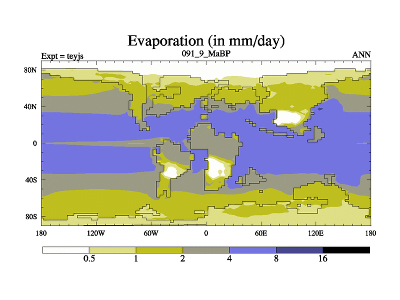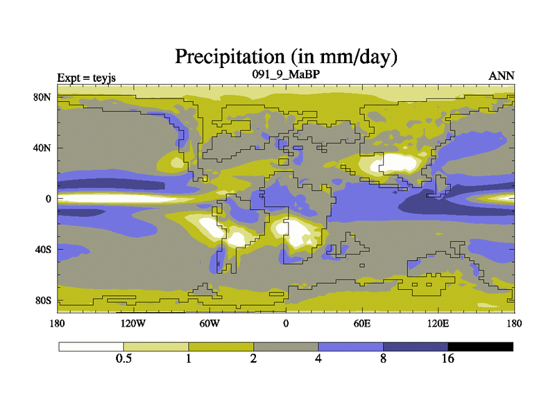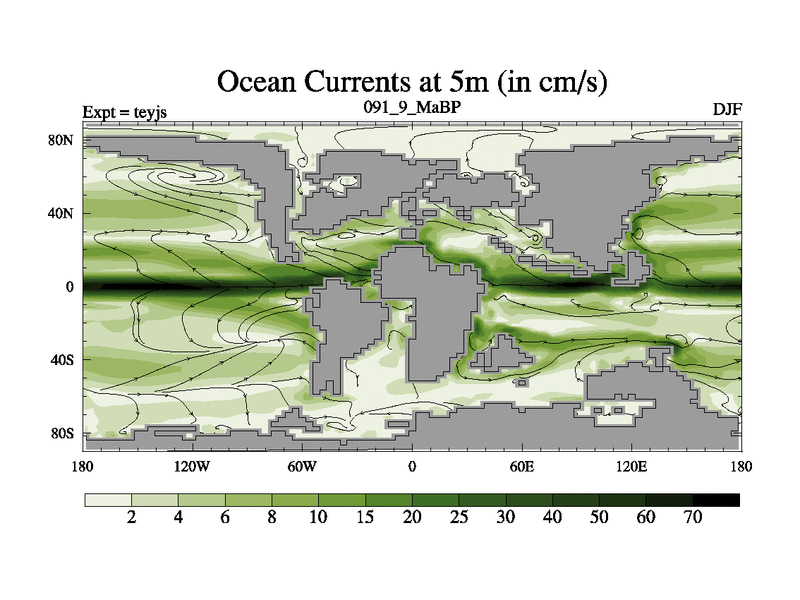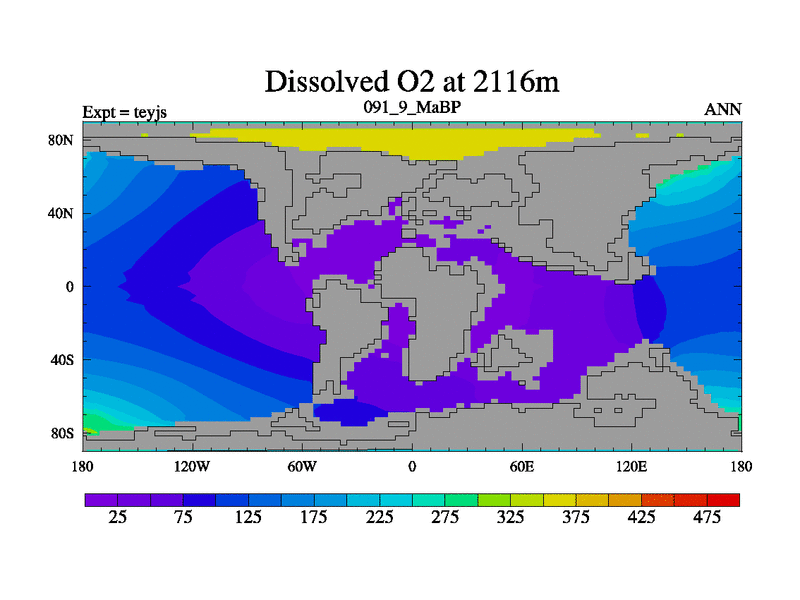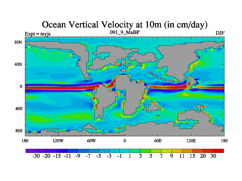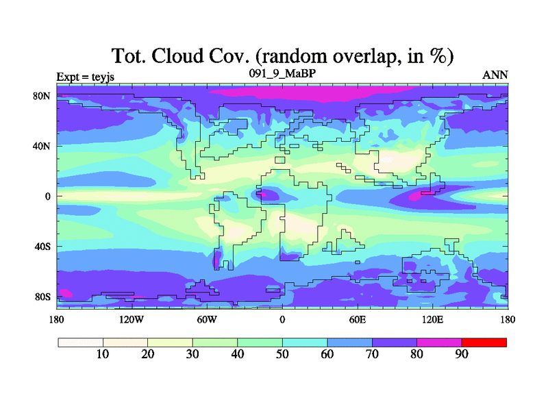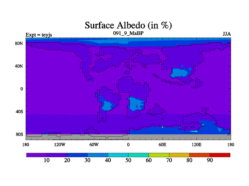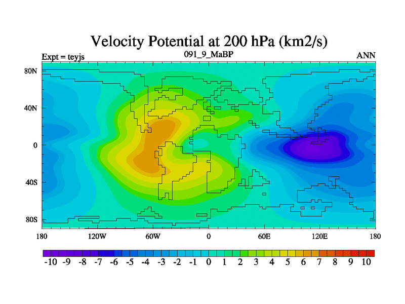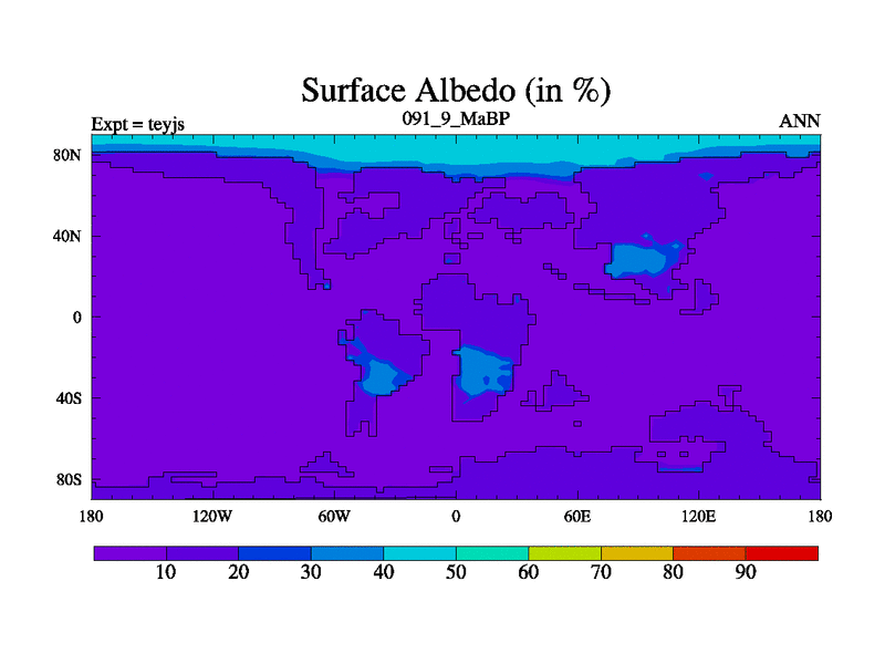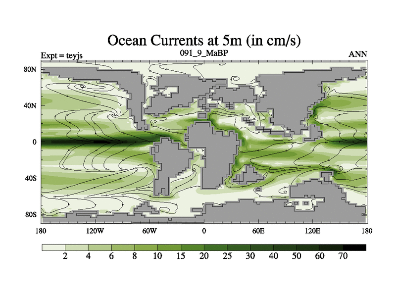 This is the 91.9 Ma simulation using the Scotese palaeogeographies and revised CCN etc. As teyfa3 but corrected orography problem over Antartartica. Now includes ocean biogeochemistry