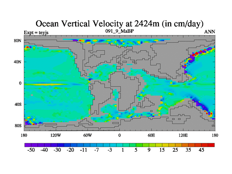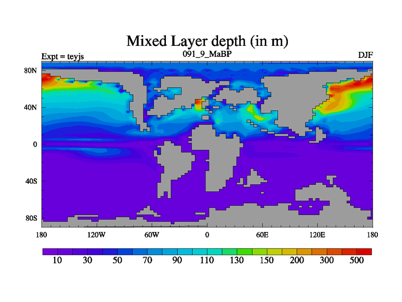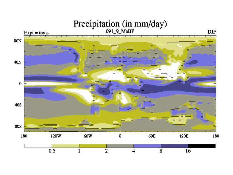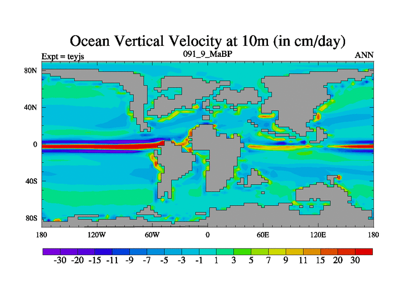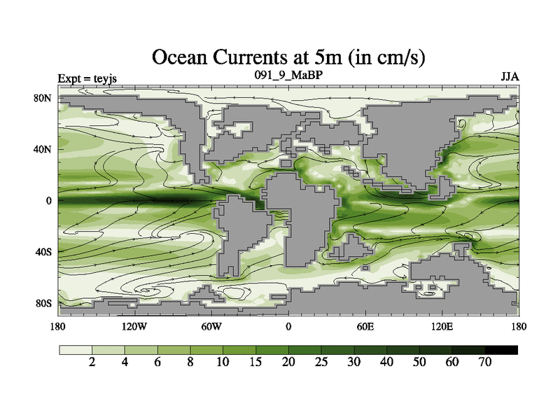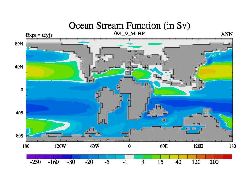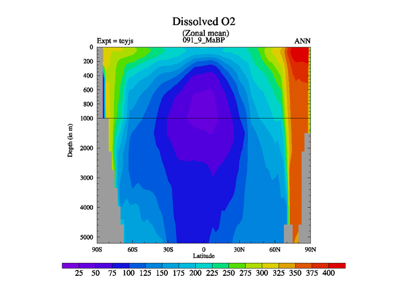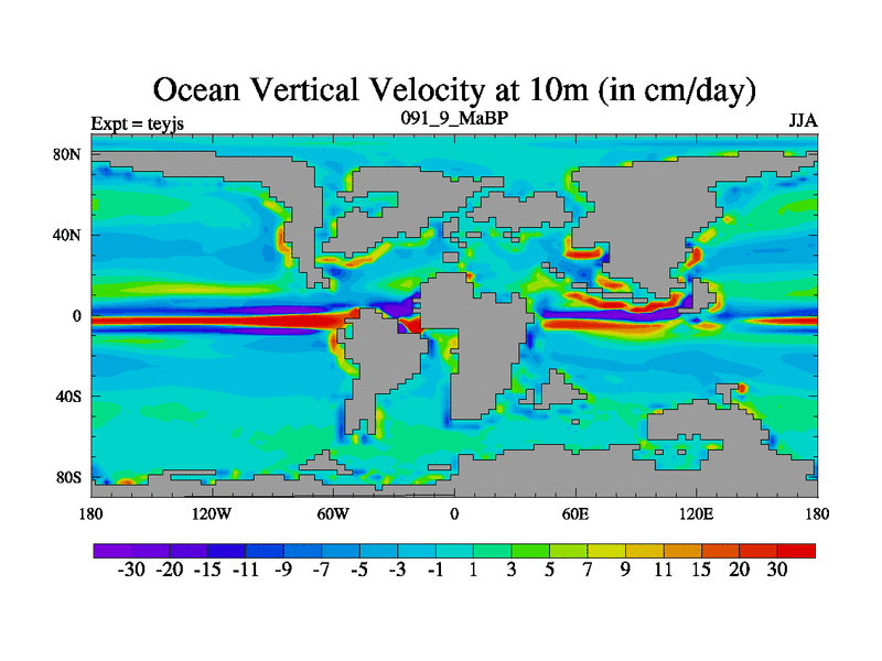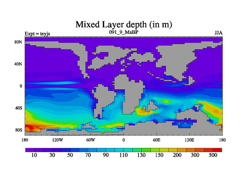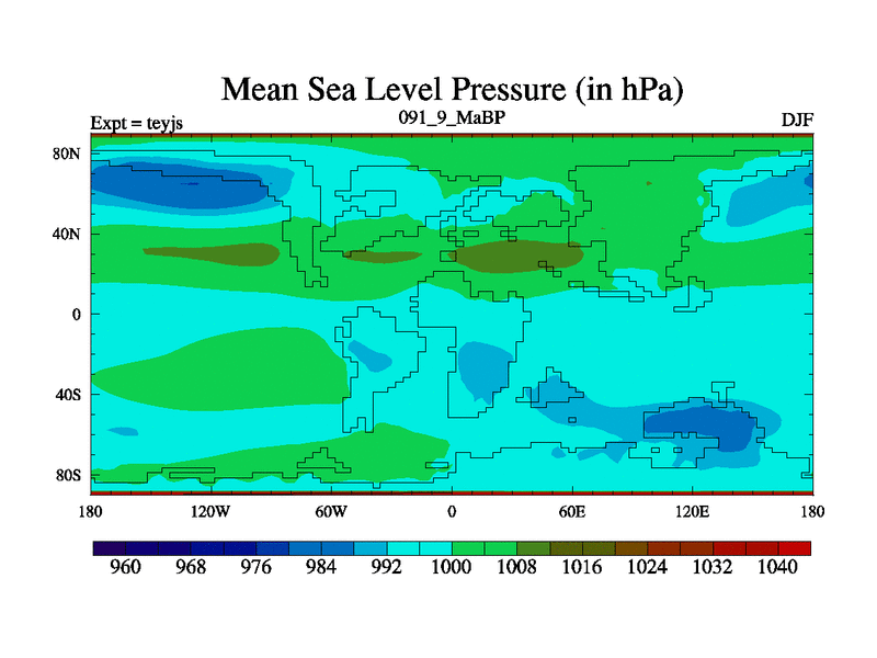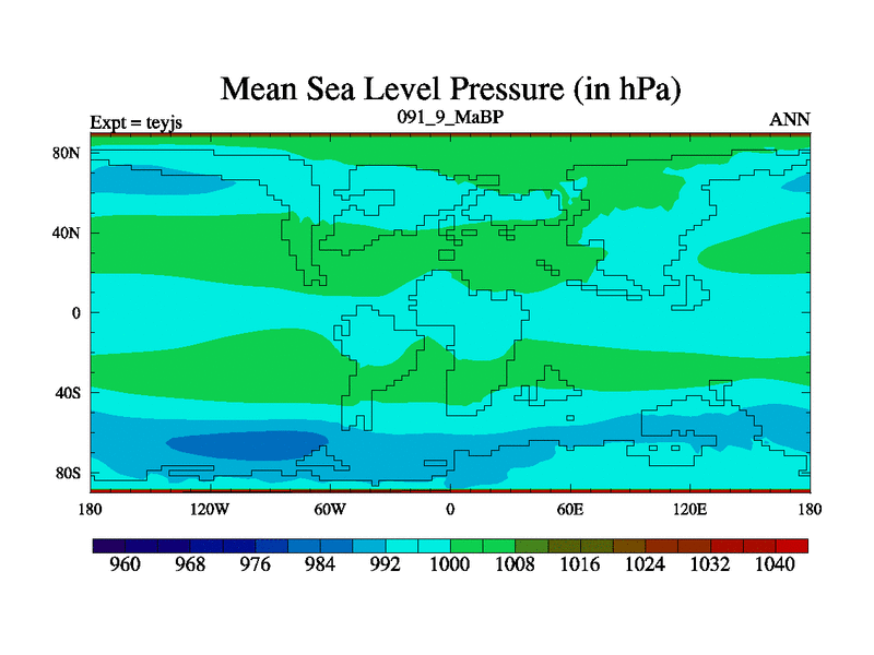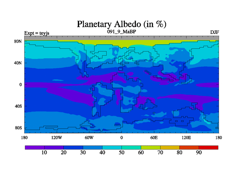 This is the 91.9 Ma simulation using the Scotese palaeogeographies and revised CCN etc. As teyfa3 but corrected orography problem over Antartartica. Now includes ocean biogeochemistry