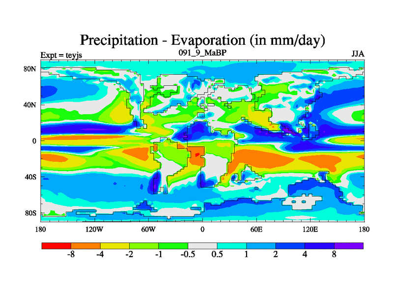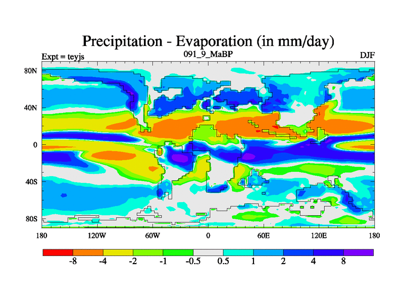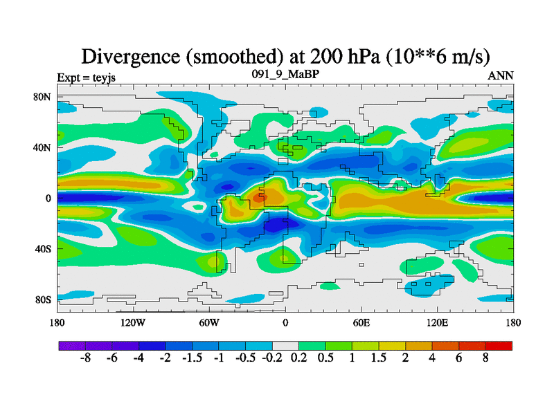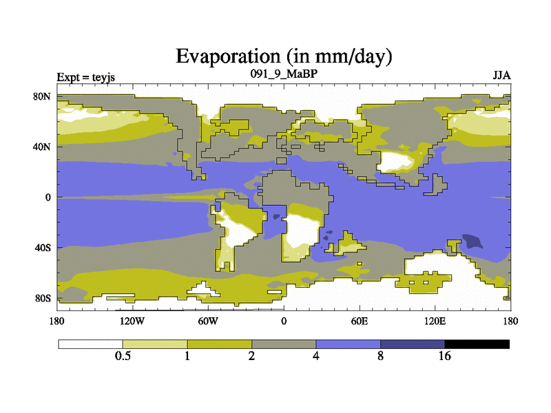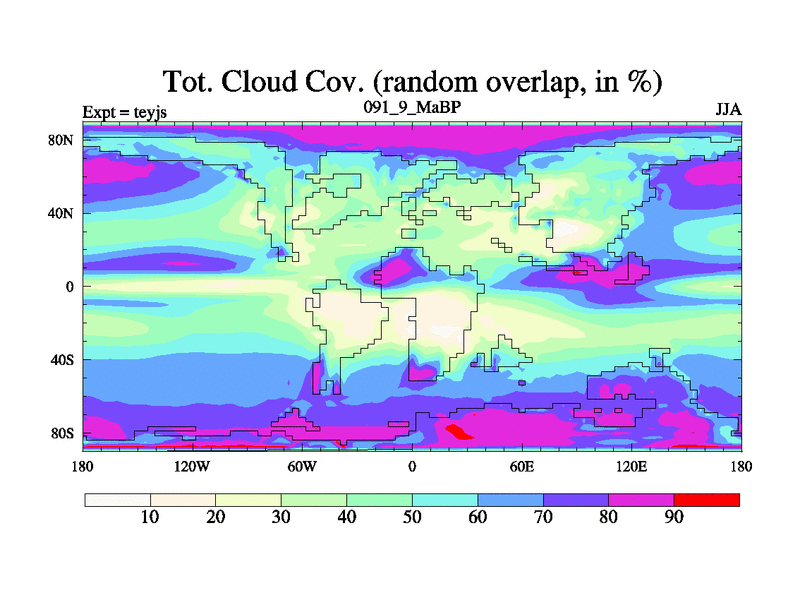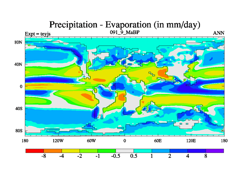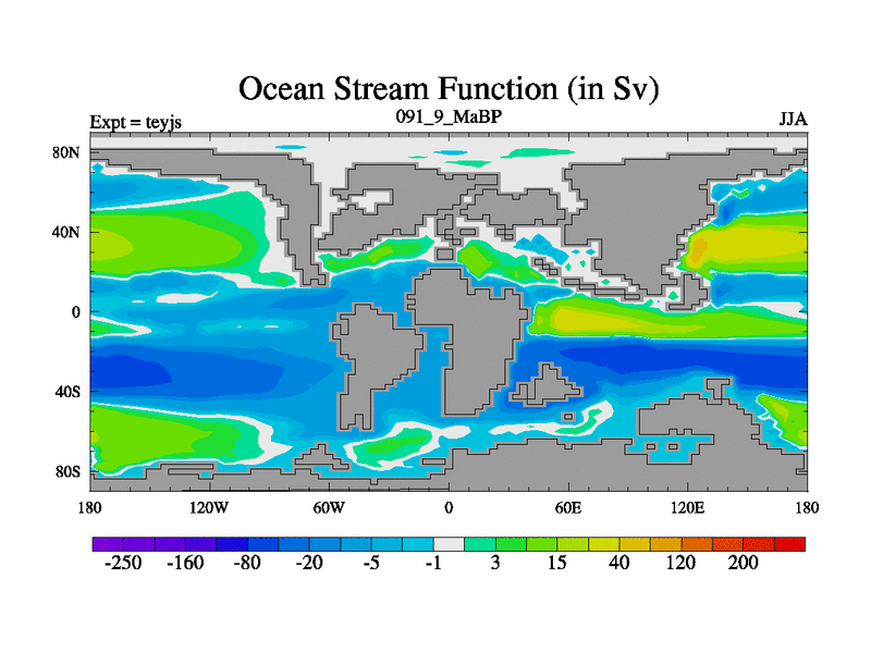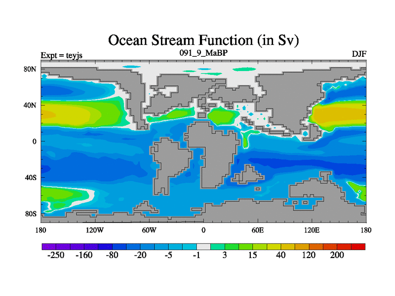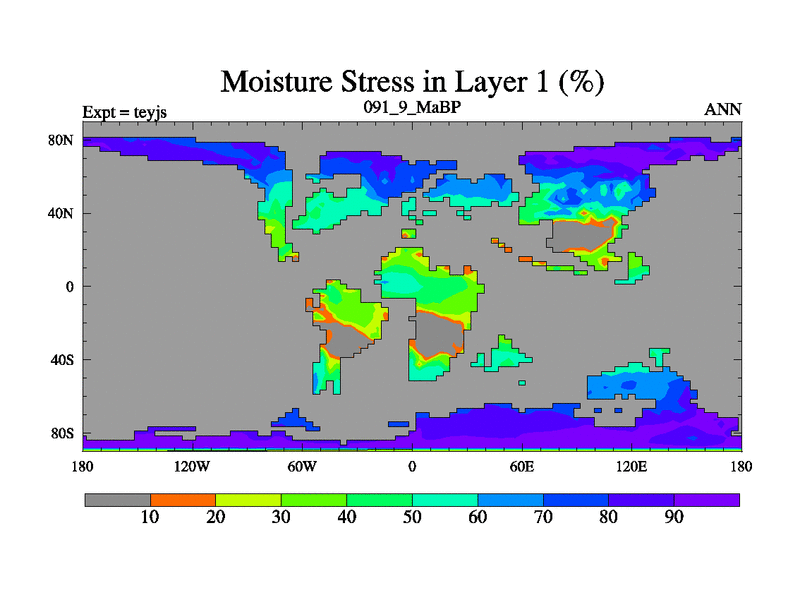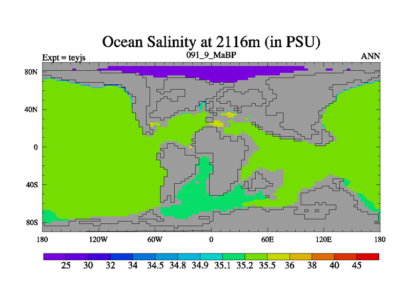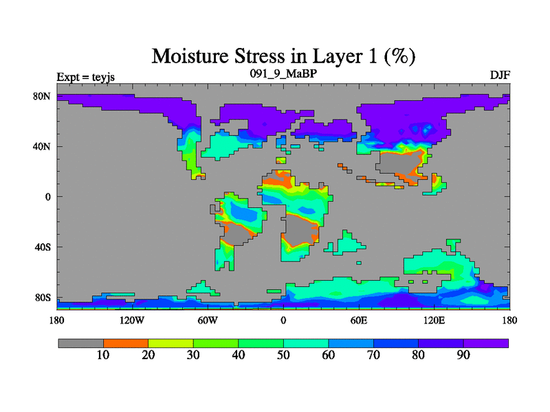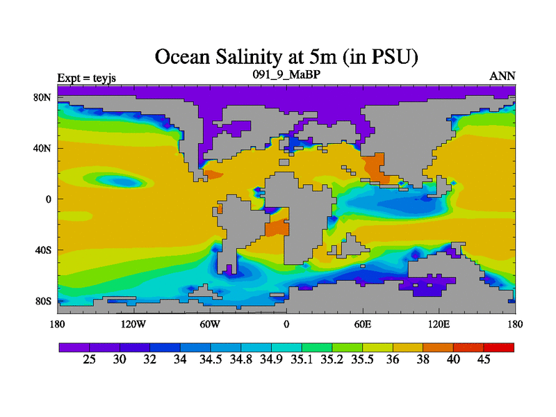 This is the 91.9 Ma simulation using the Scotese palaeogeographies and revised CCN etc. As teyfa3 but corrected orography problem over Antartartica. Now includes ocean biogeochemistry