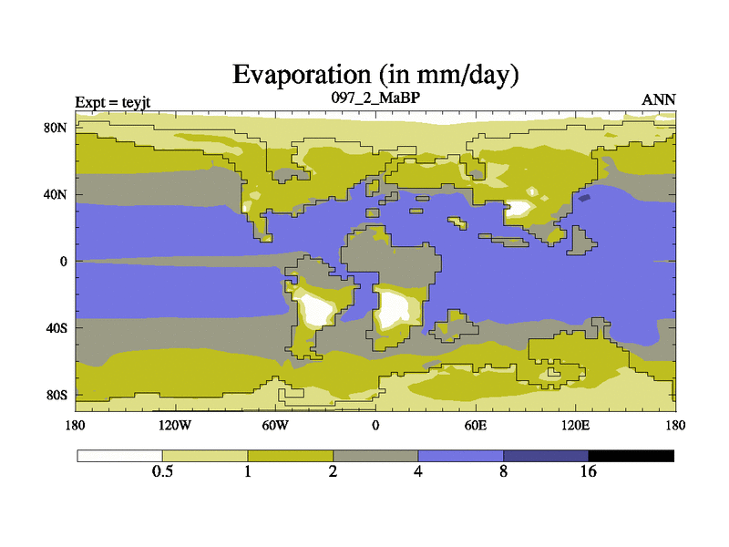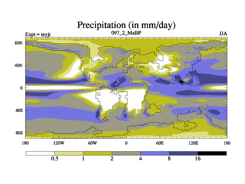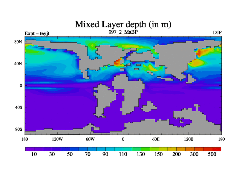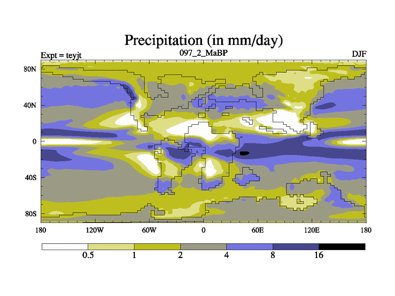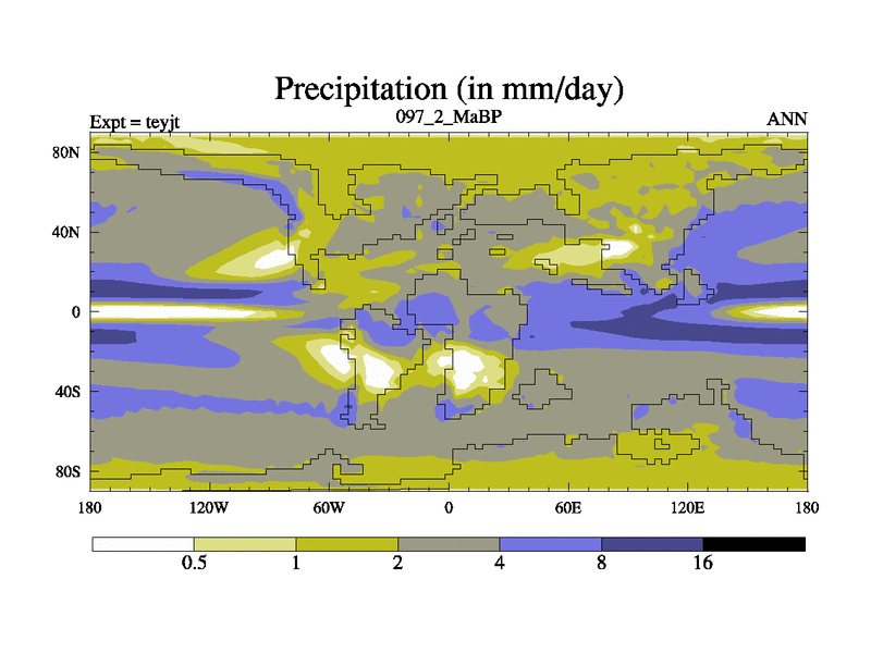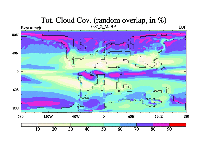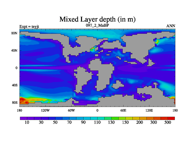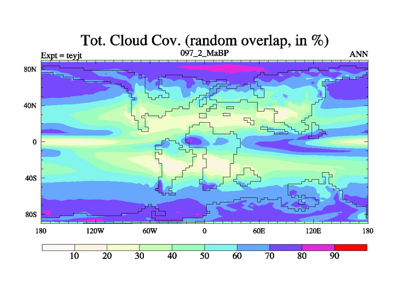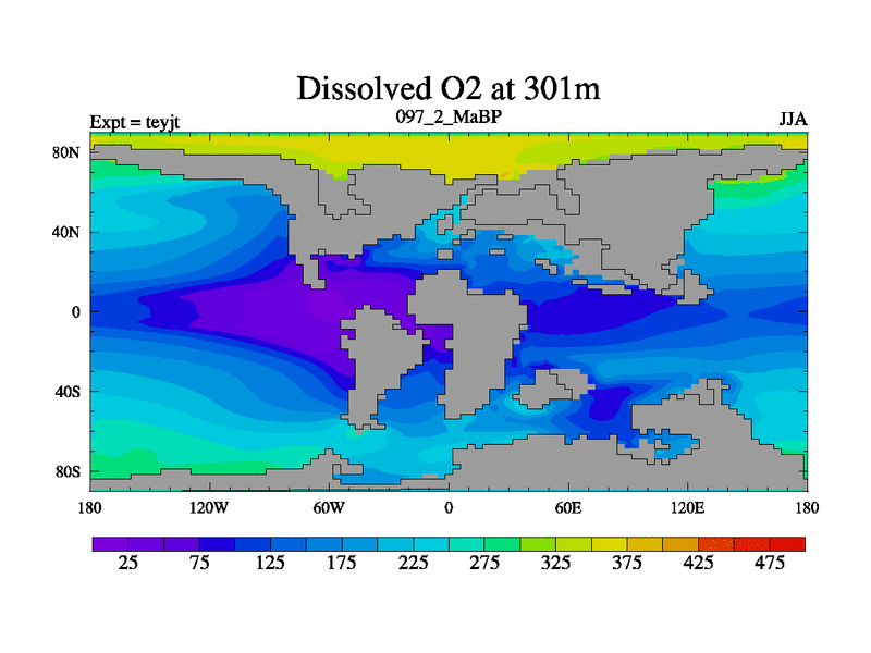 This is the 97.2 Ma simulation using the Scotese palaeogeographies and revised CCN etc. As teyfa3 but corrected orography problem over Antartartica. Now includes ocean biogeochemistry