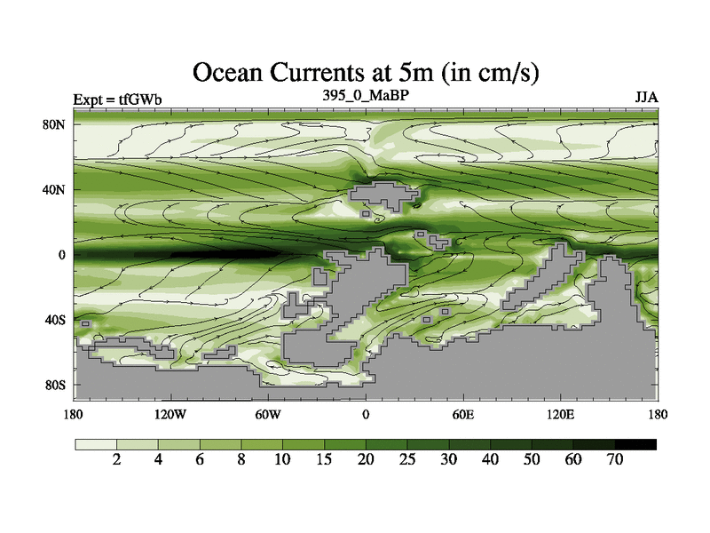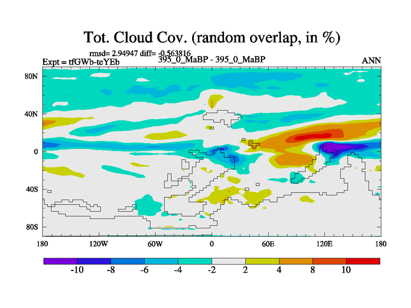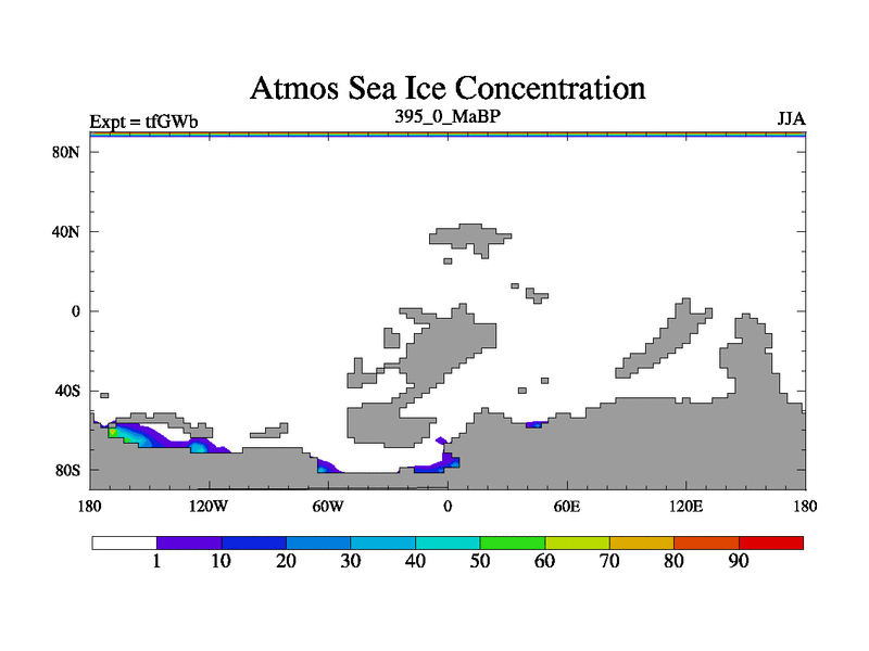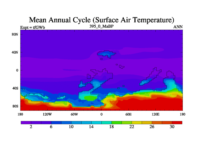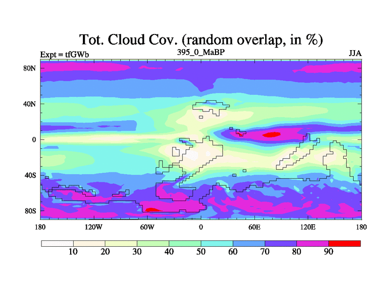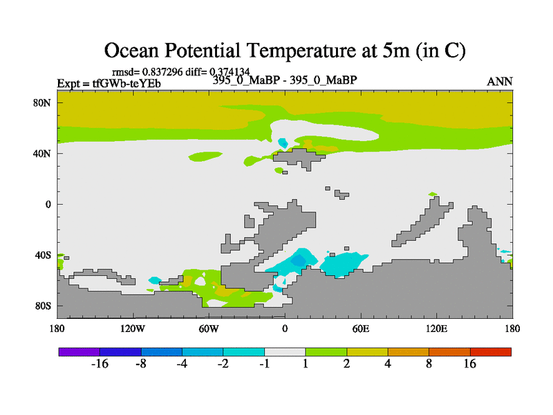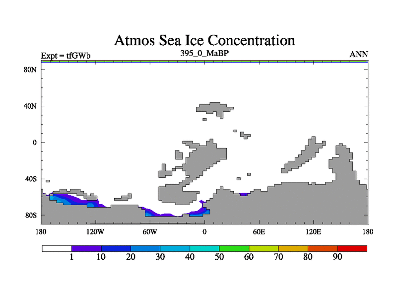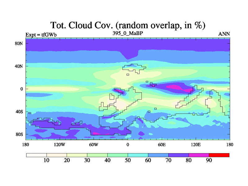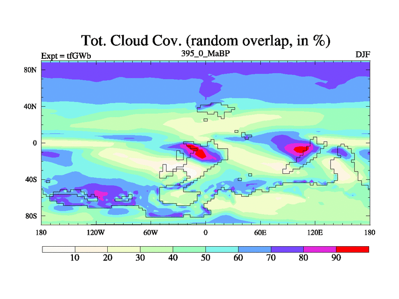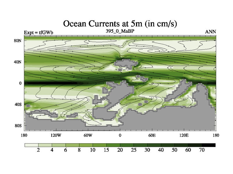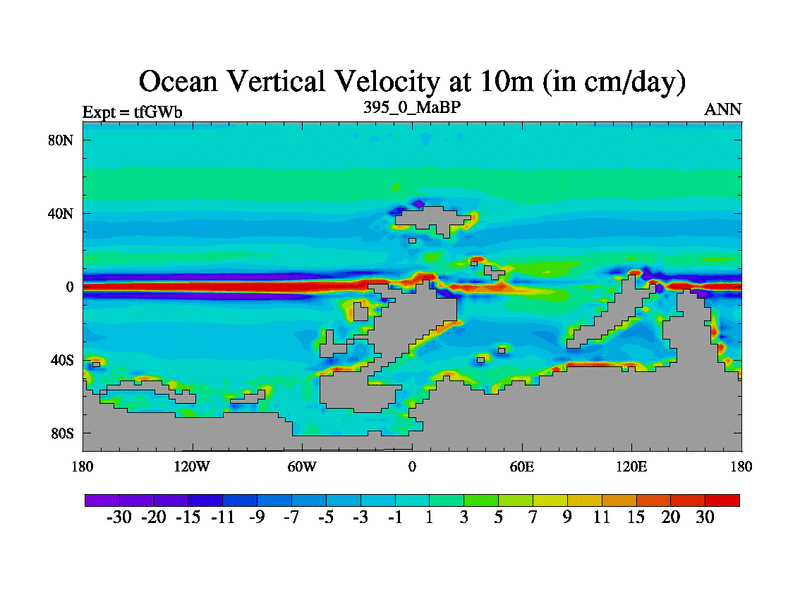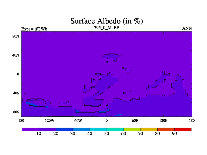 This is the 395.0 Ma simulation using the Scotese palaeogeographies and revised CCN etc. This version has islands included. Started from end of teYEb.