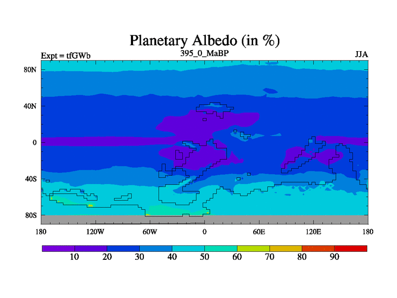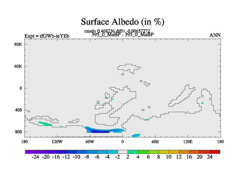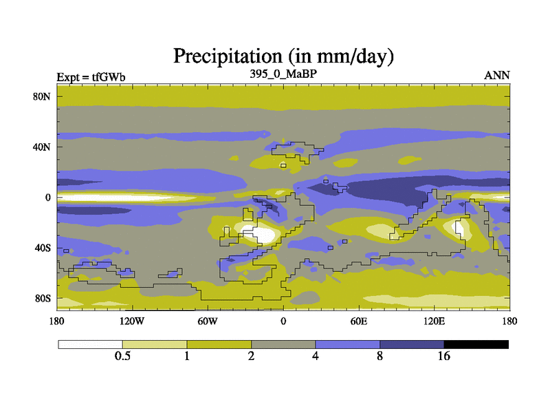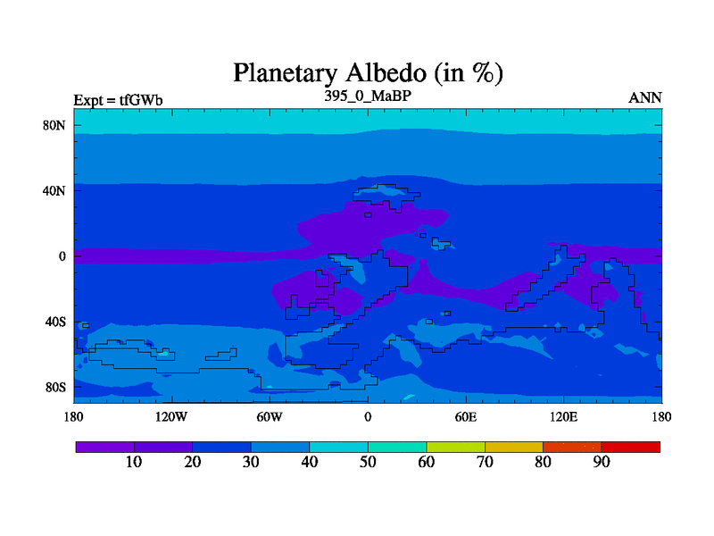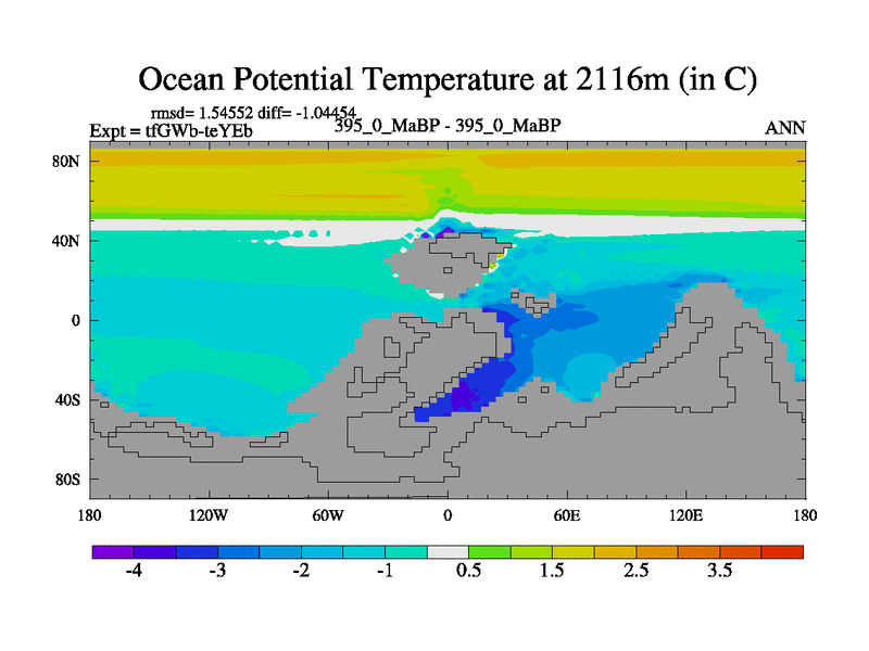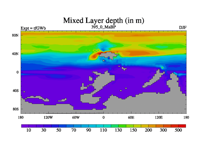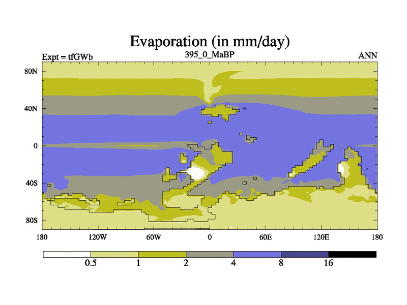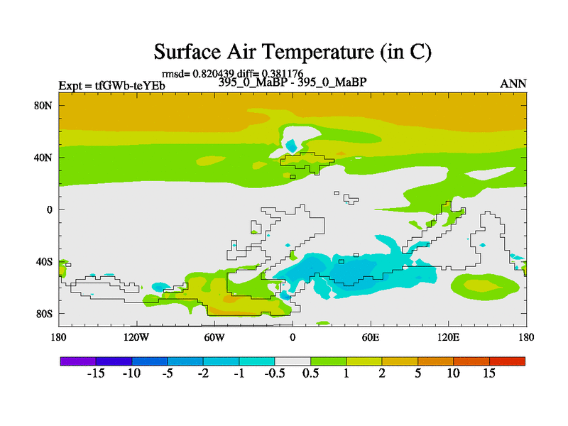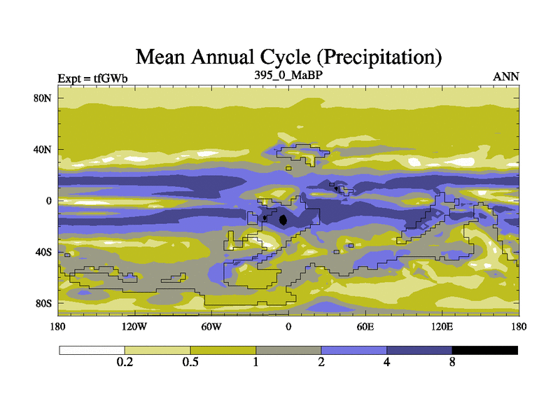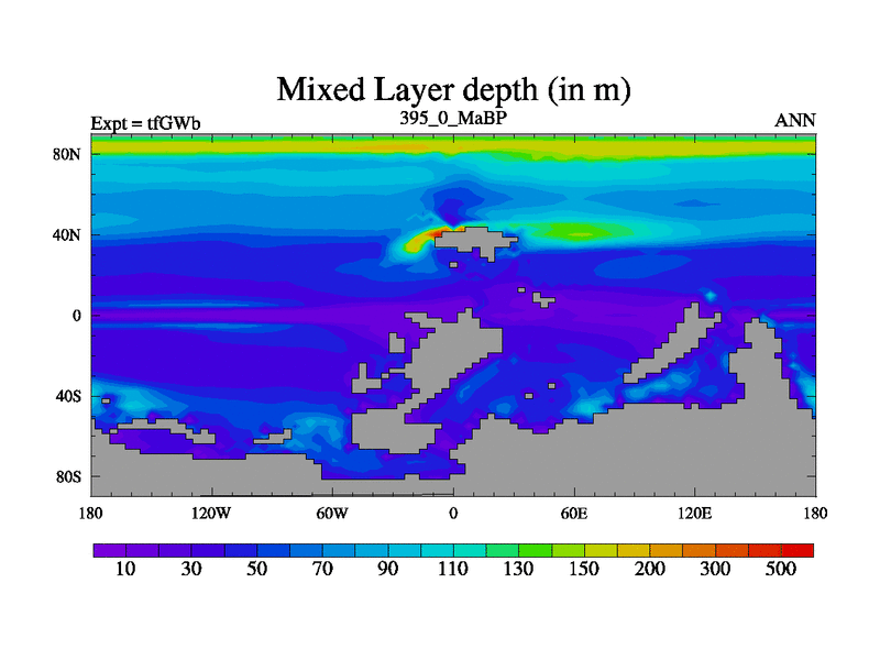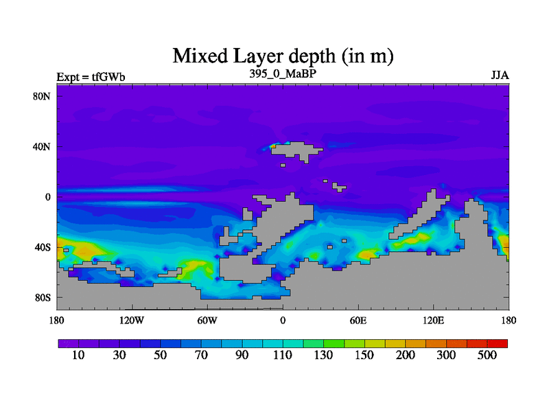This is the 395.0 Ma simulation using the Scotese palaeogeographies and revised CCN etc. This version has islands included. Started from end of teYEb.