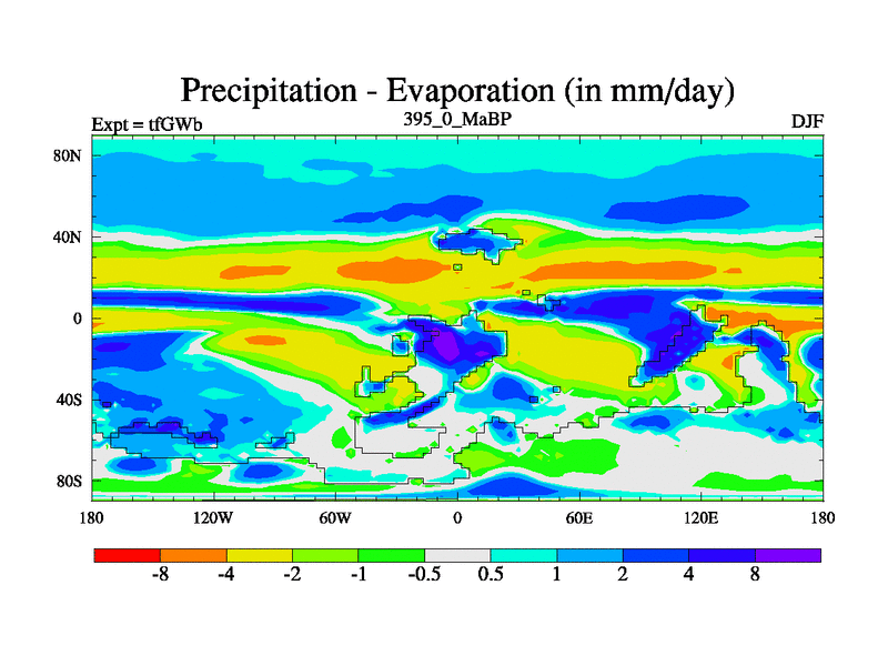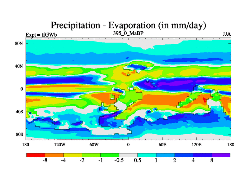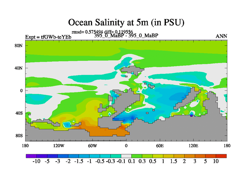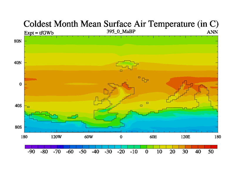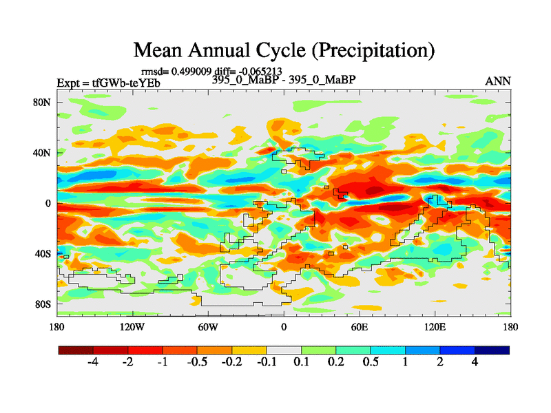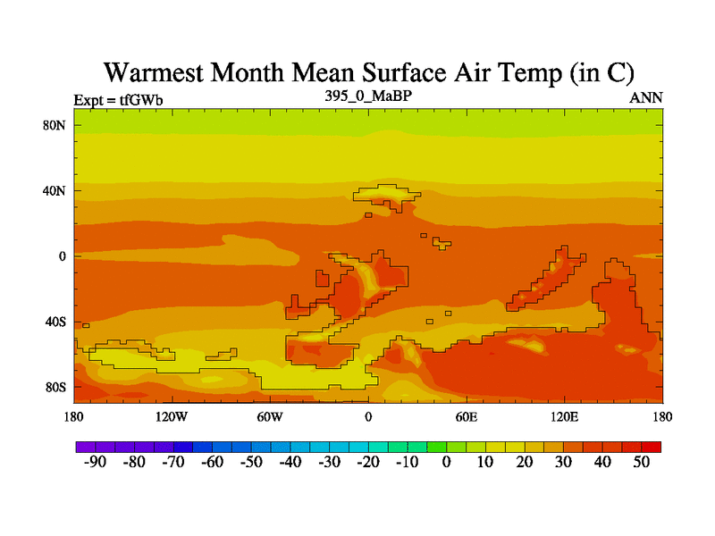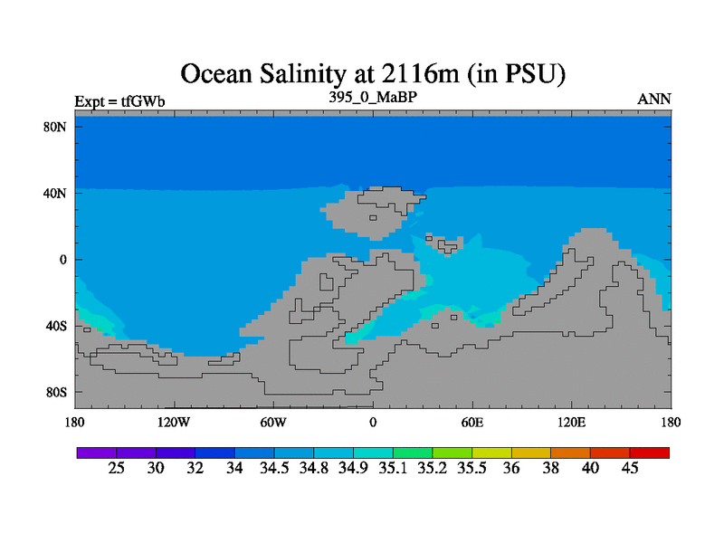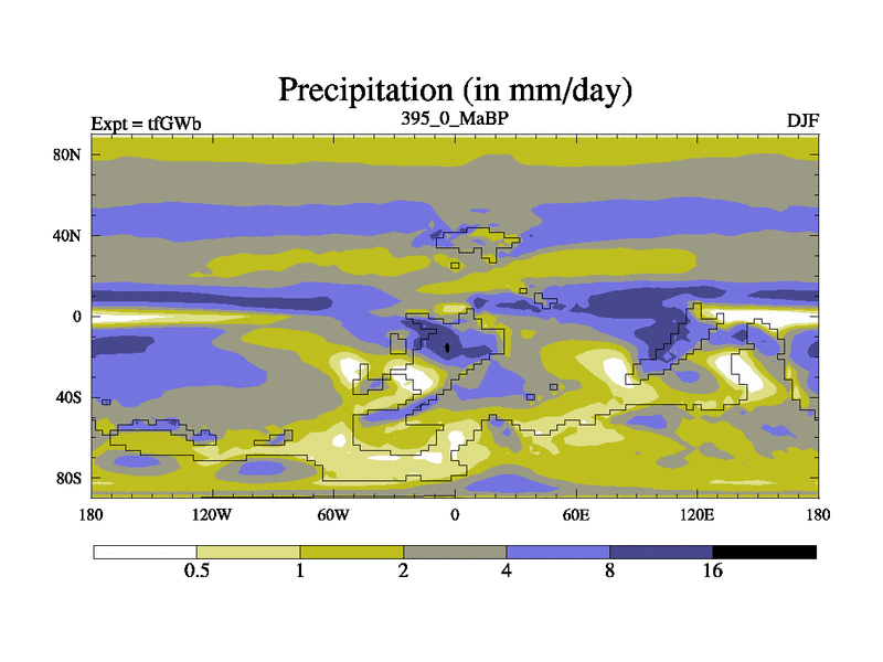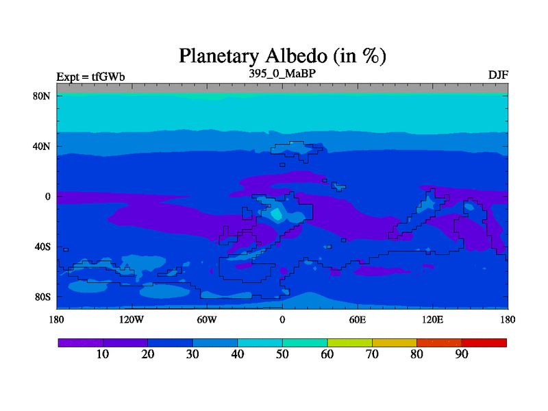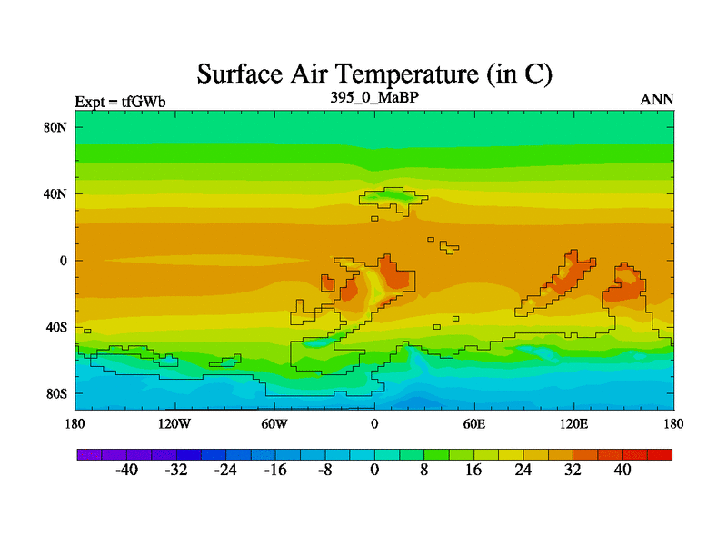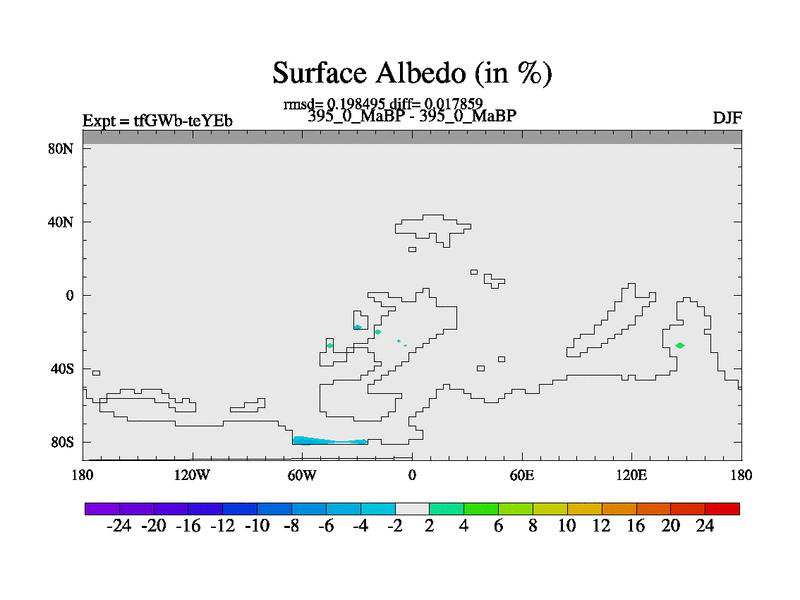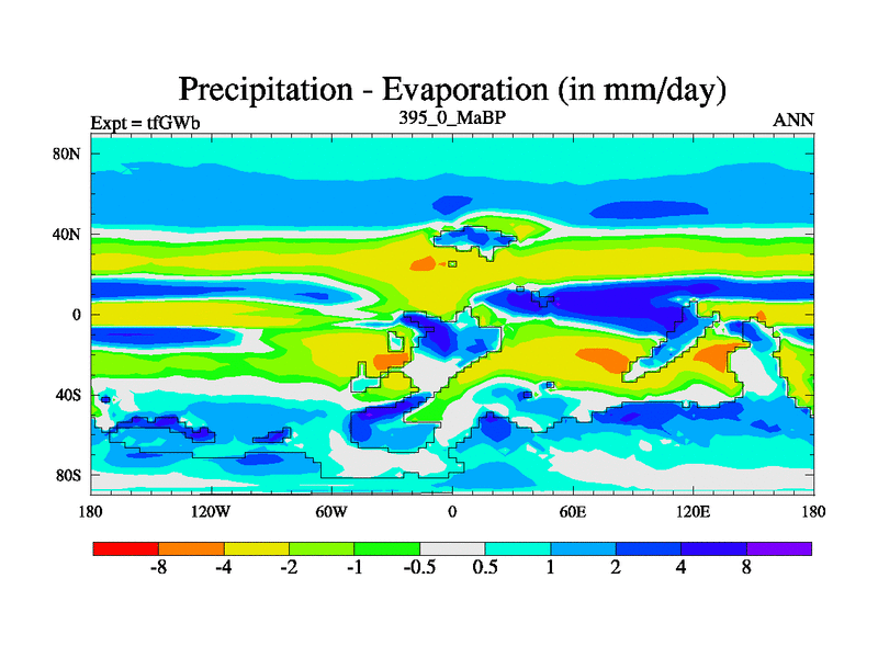 This is the 395.0 Ma simulation using the Scotese palaeogeographies and revised CCN etc. This version has islands included. Started from end of teYEb.