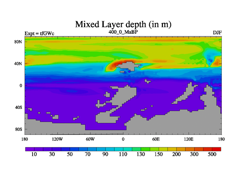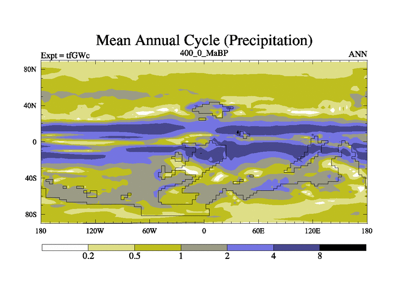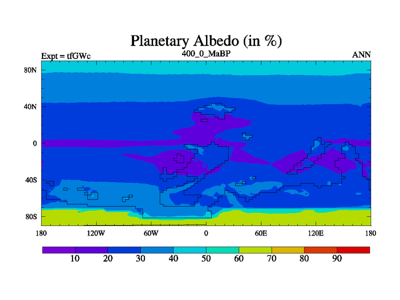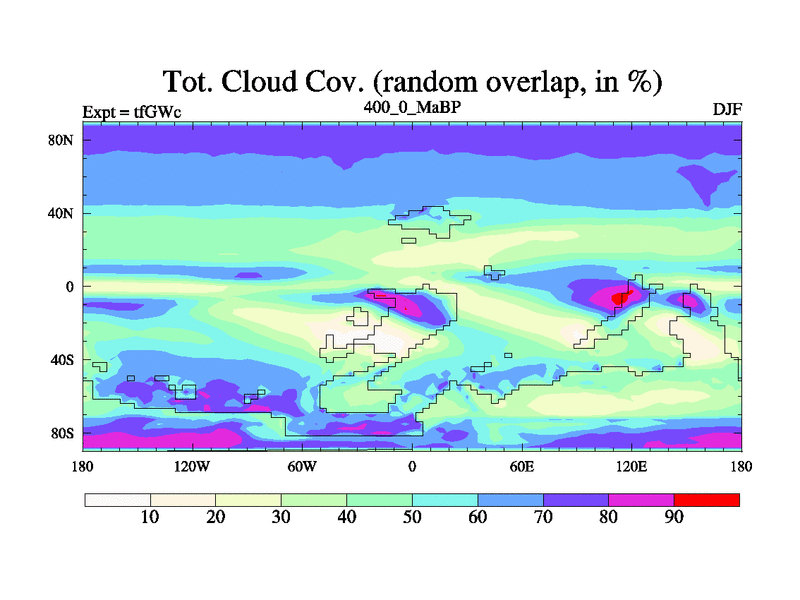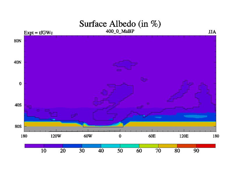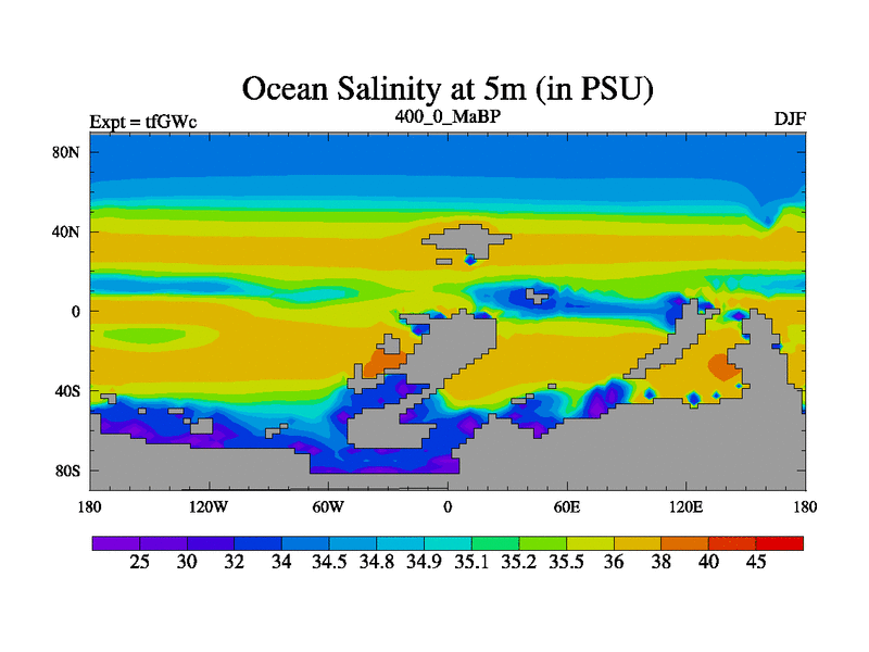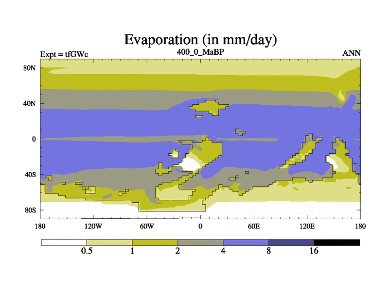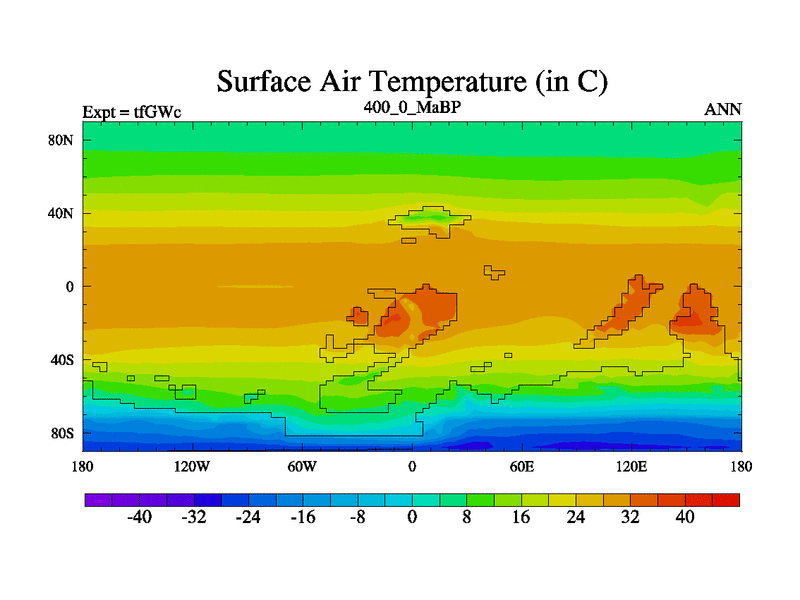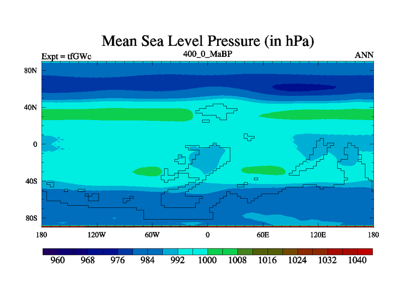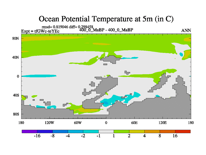 This is the 400.0 Ma simulation using the Scotese palaeogeographies and revised CCN etc. This version has islands included. Started from end of teYEc.
