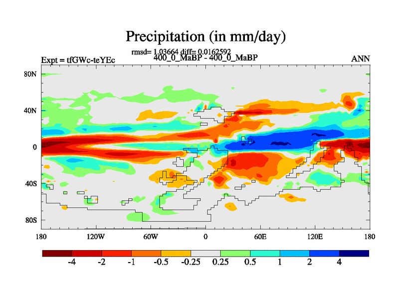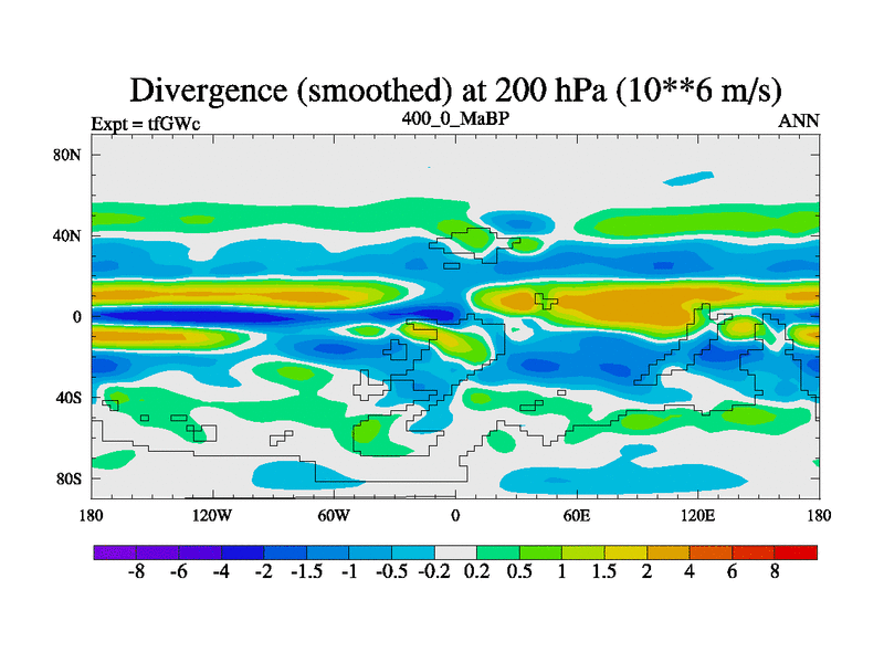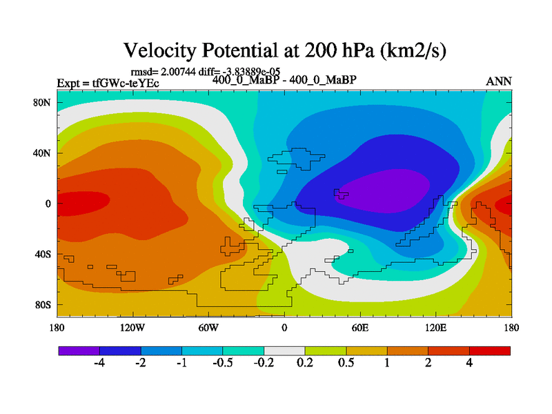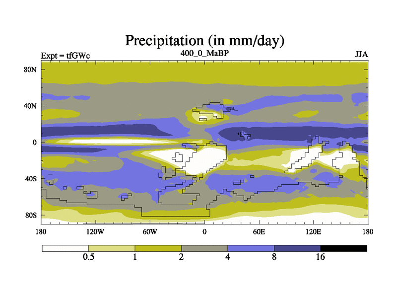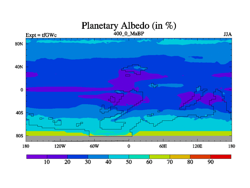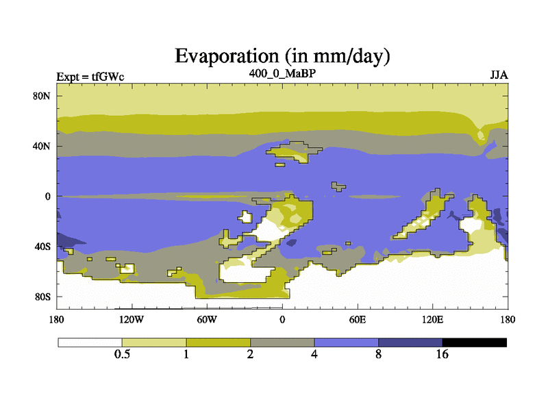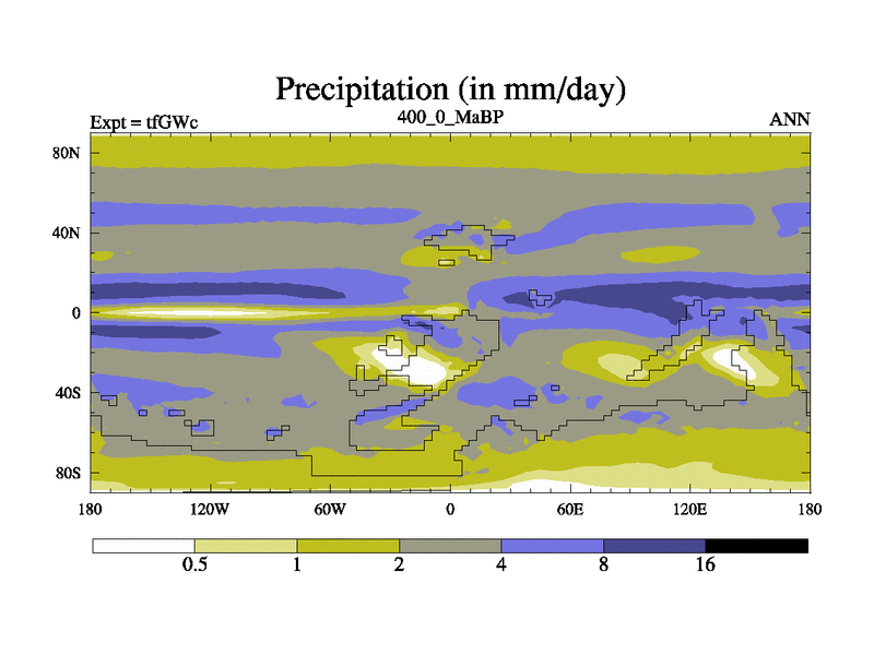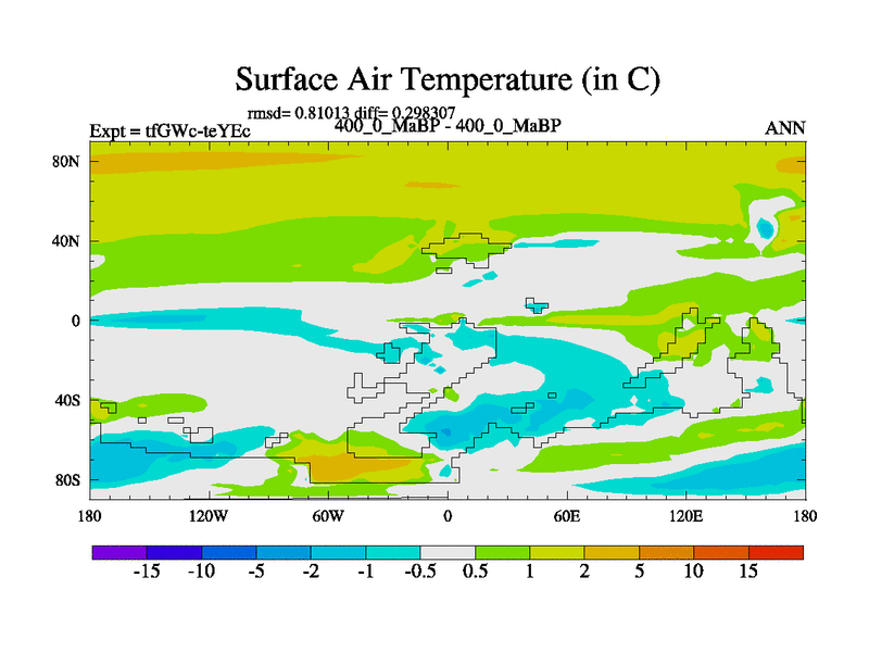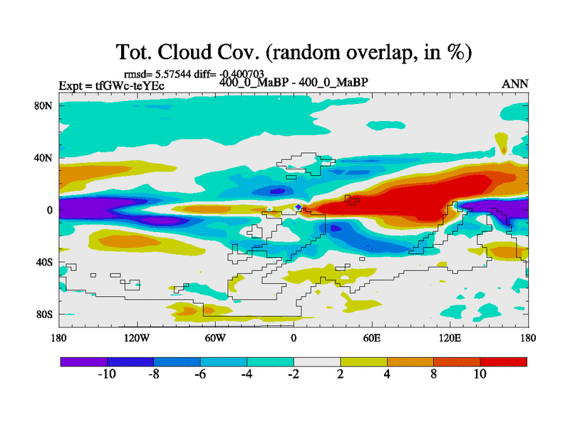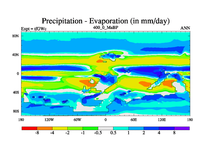 This is the 400.0 Ma simulation using the Scotese palaeogeographies and revised CCN etc. This version has islands included. Started from end of teYEc.