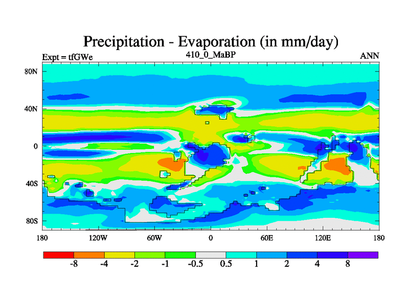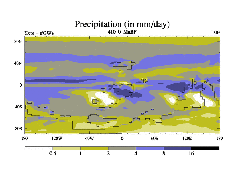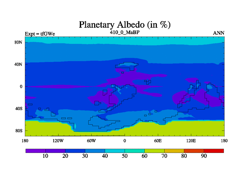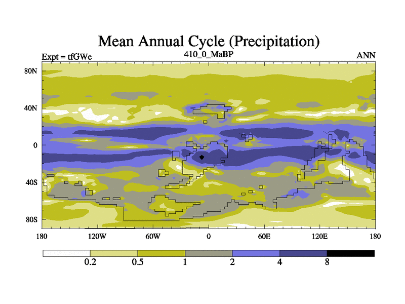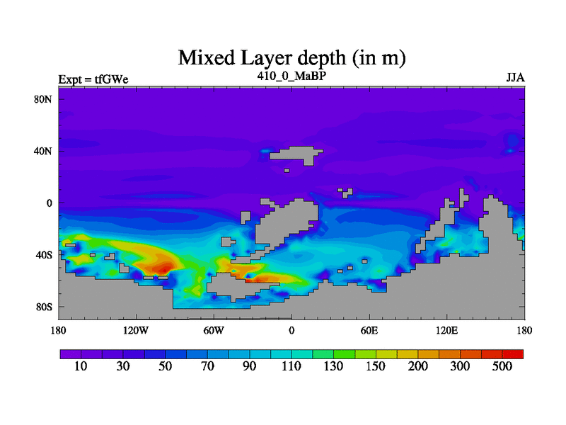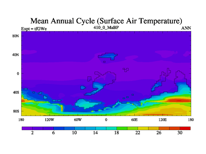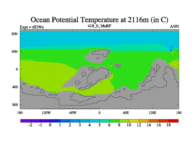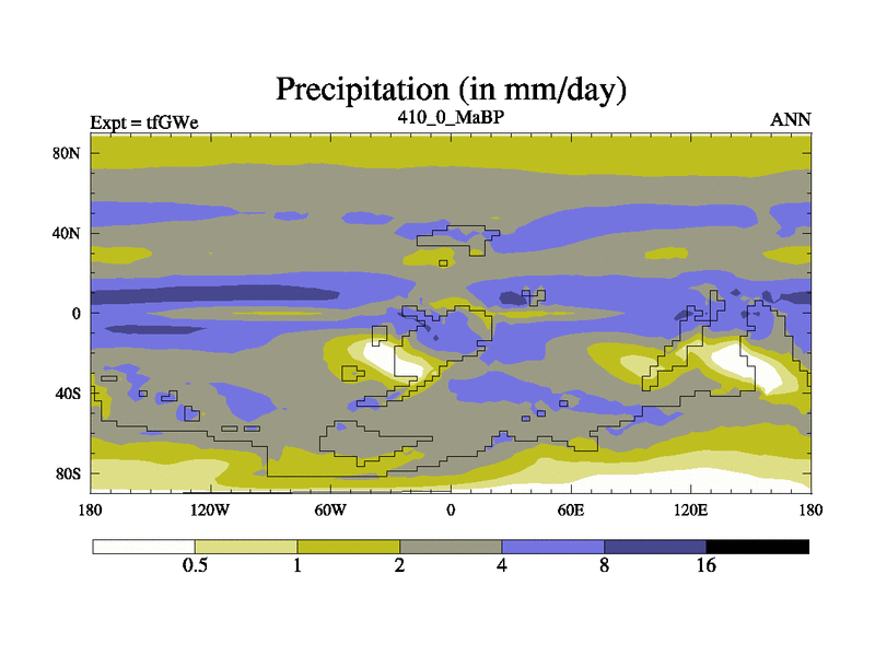 This is the 410.0 Ma simulation using the Scotese palaeogeographies and revised CCN etc. This version has islands included. Started from end of teYEe.