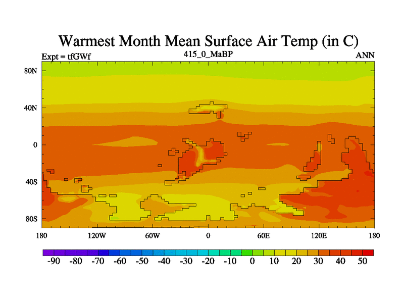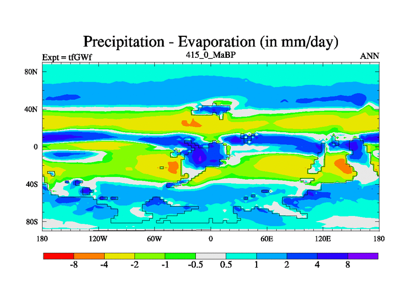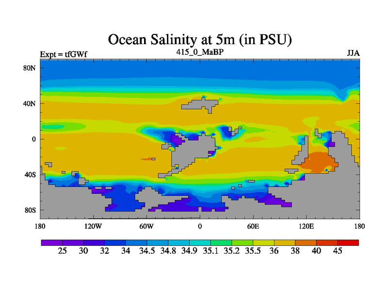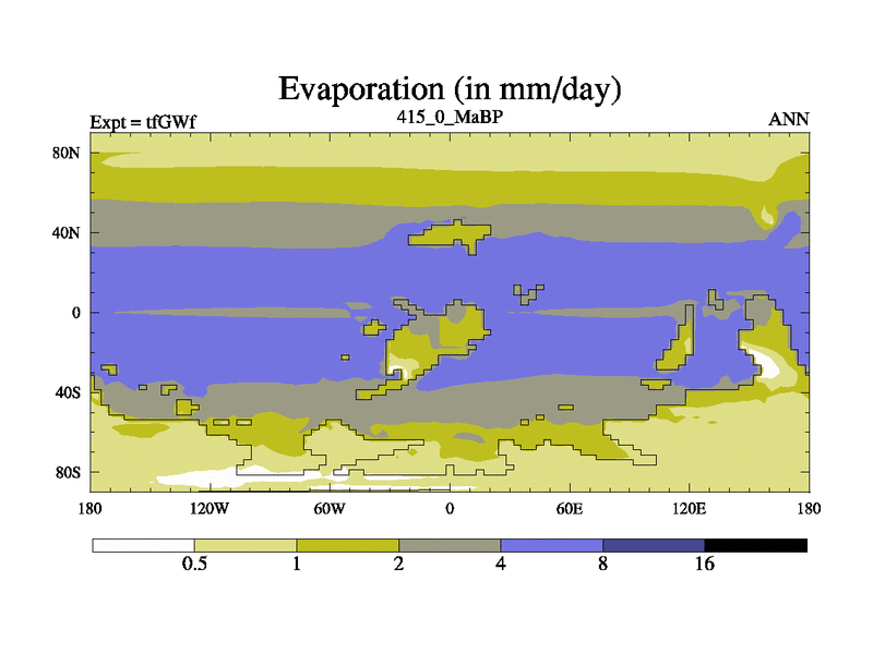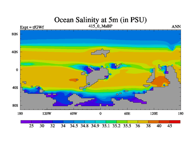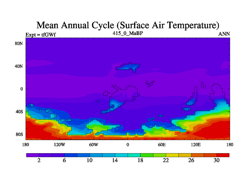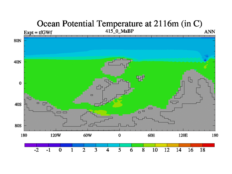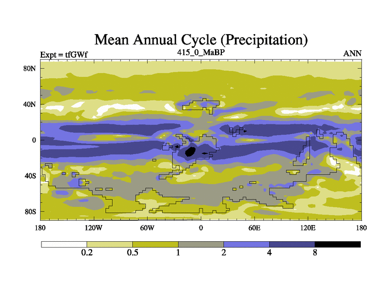 This is the 415.0 Ma simulation using the Scotese palaeogeographies and revised CCN etc. This version has islands included. Started from end of teYEf.