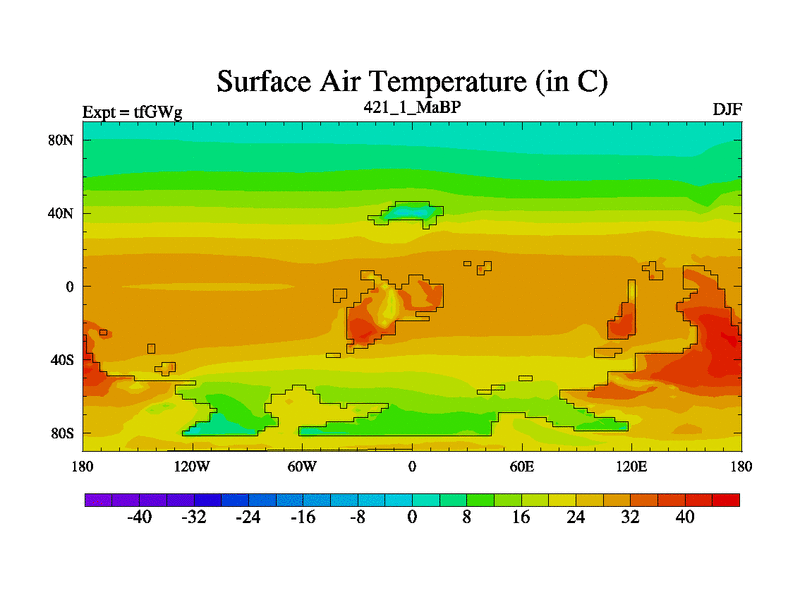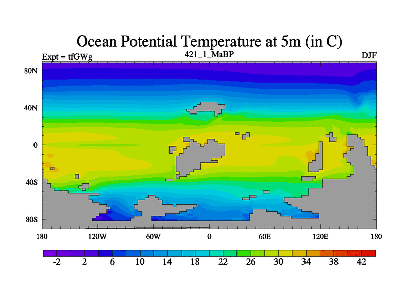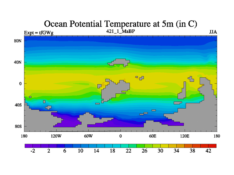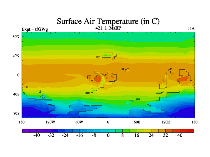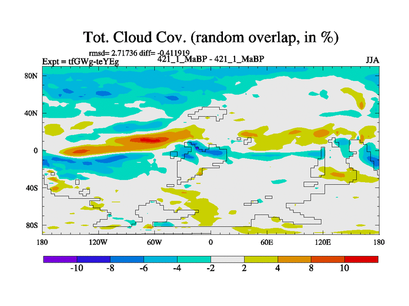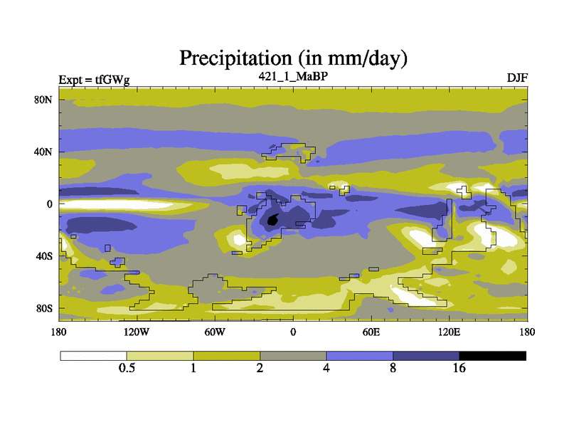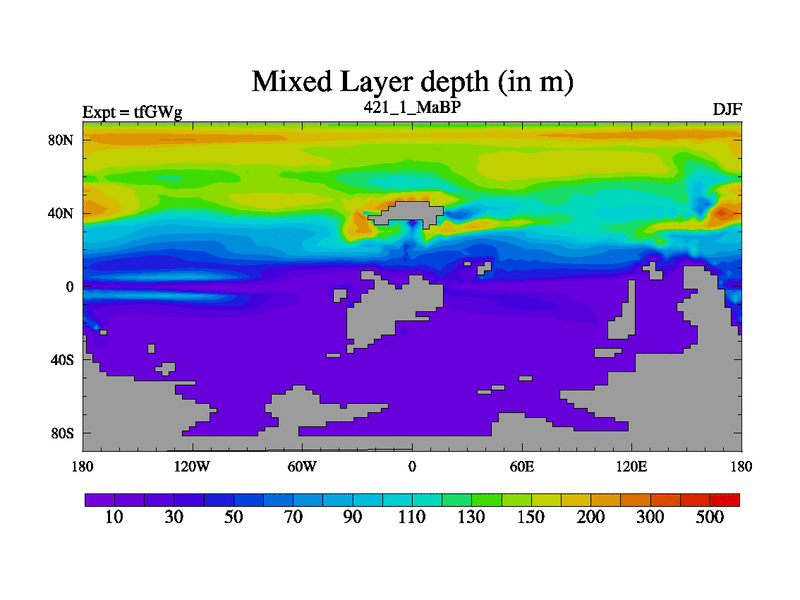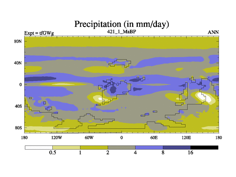 This is the 421.1 Ma simulation using the Scotese palaeogeographies and revised CCN etc. This version has islands included. Started from end of teYEg.