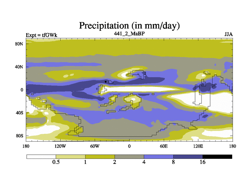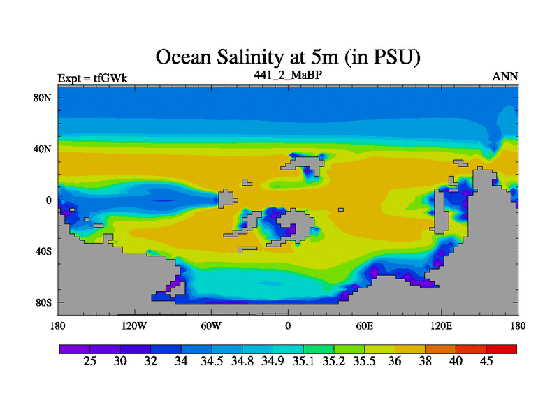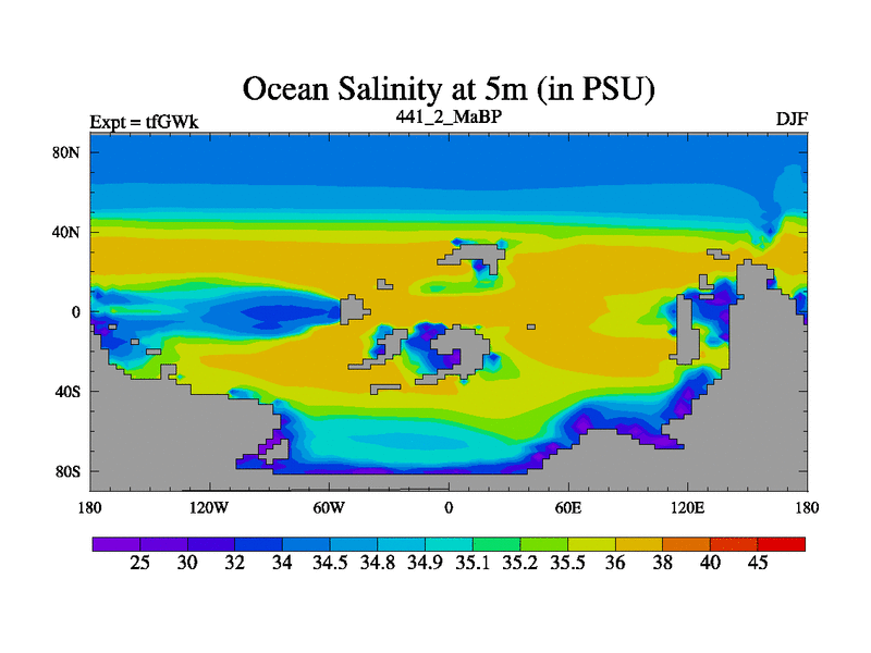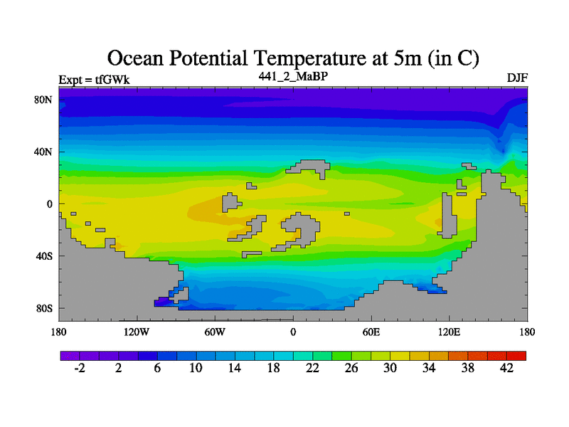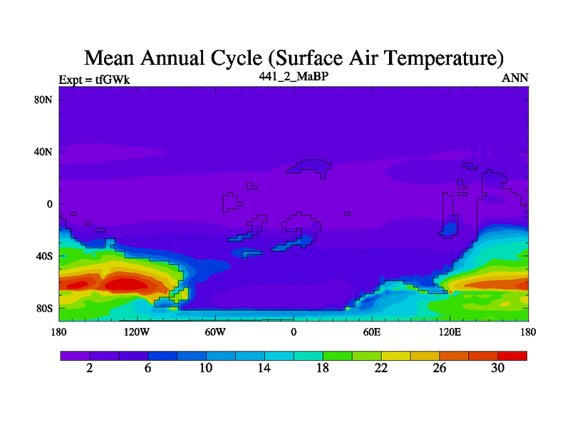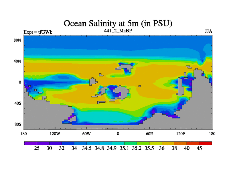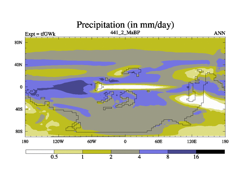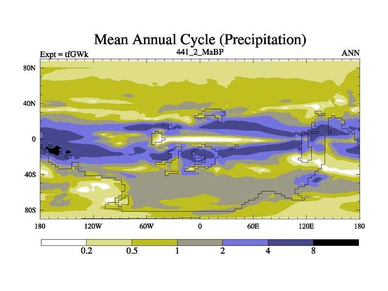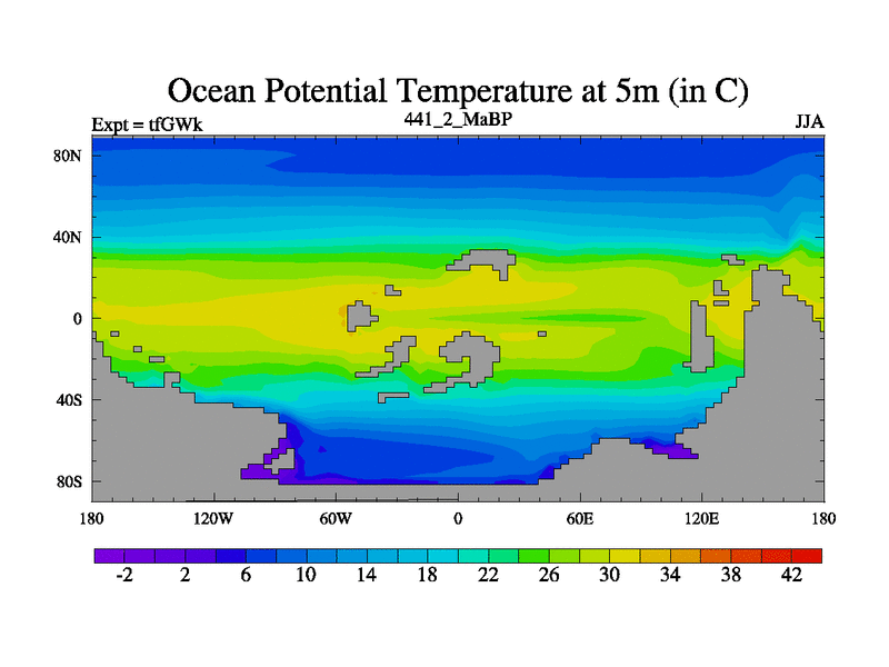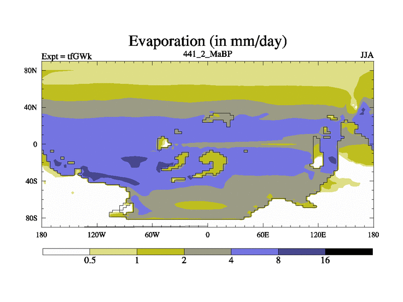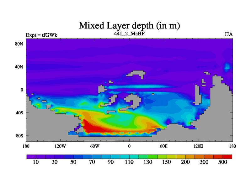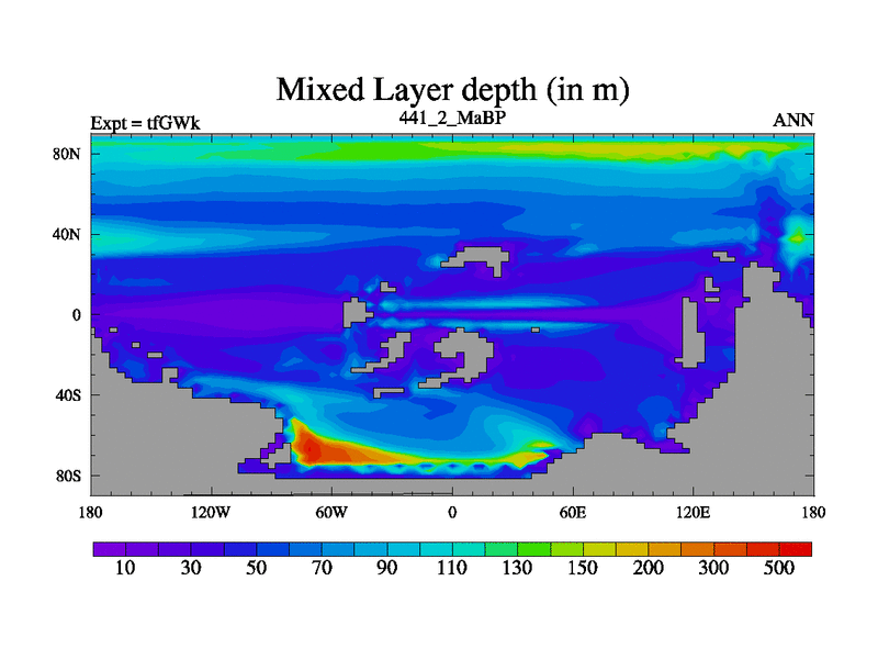 This is the 441.2 Ma simulation using the Scotese palaeogeographies and revised CCN etc. This version has islands included. Started from end of teYEk.