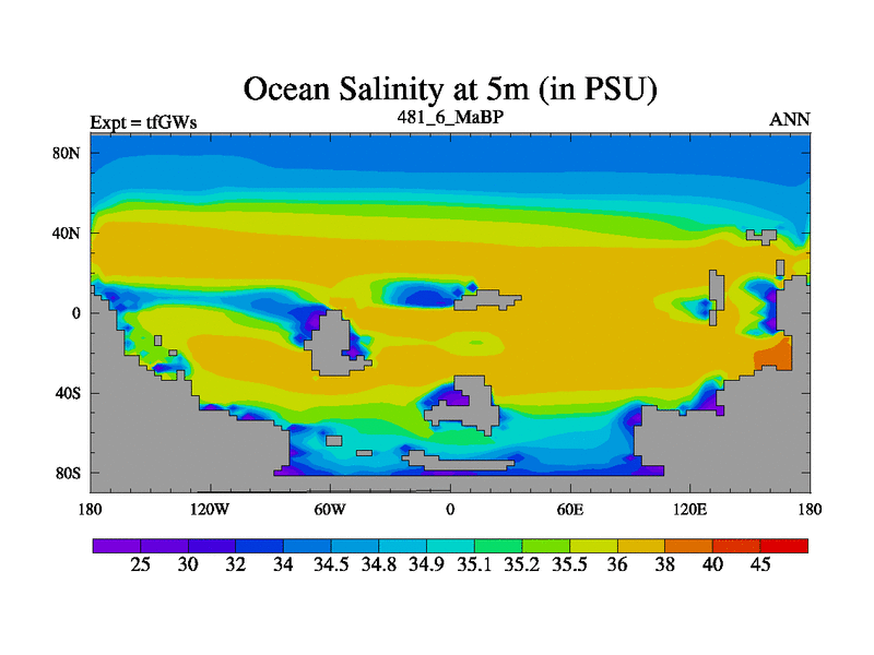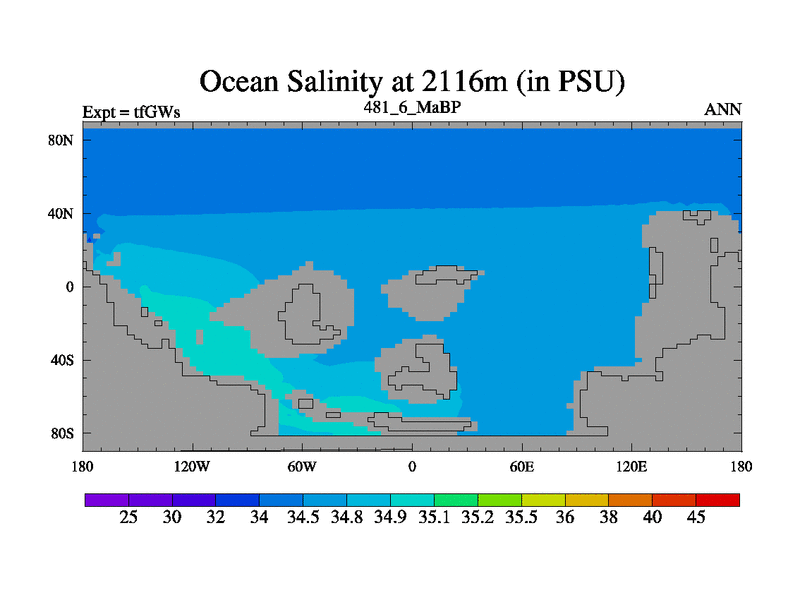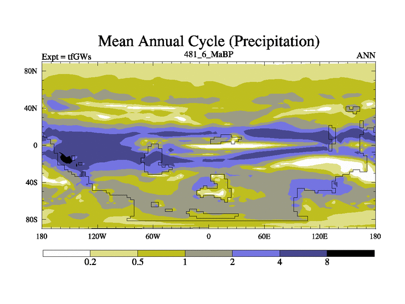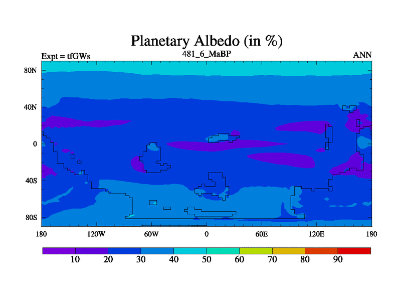 This is the 481.6 Ma simulation using the Scotese palaeogeographies and revised CCN etc. This version has islands included. Started from end of teYEs.