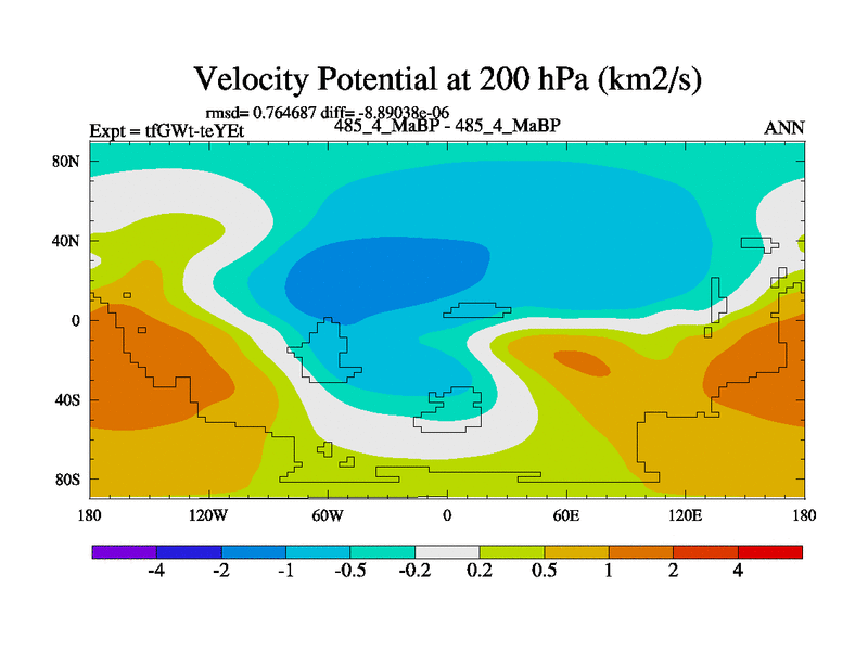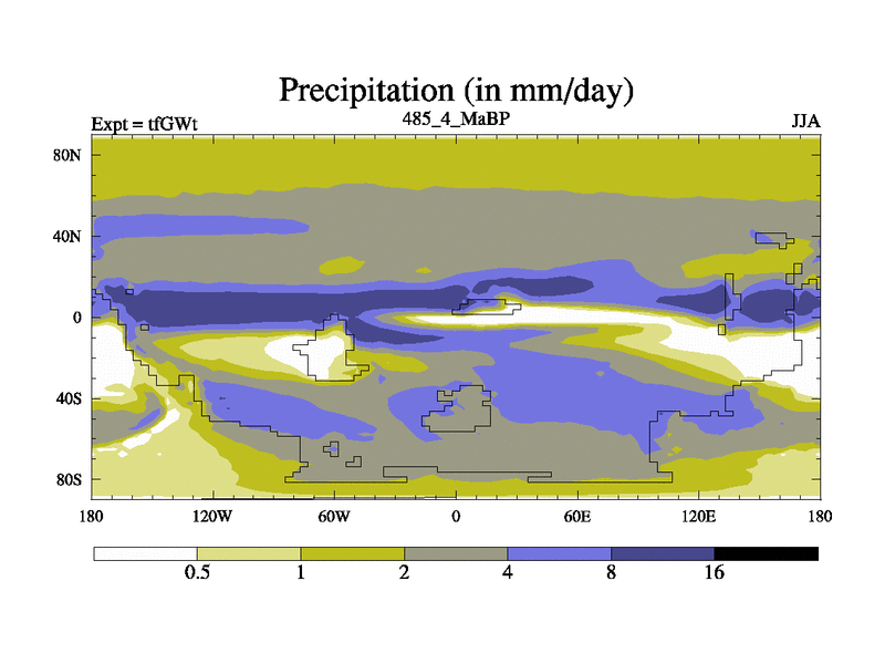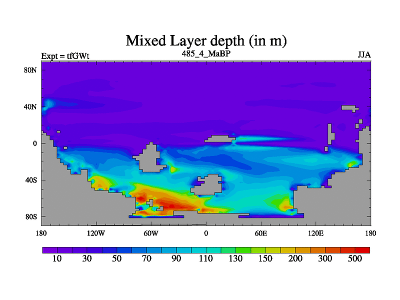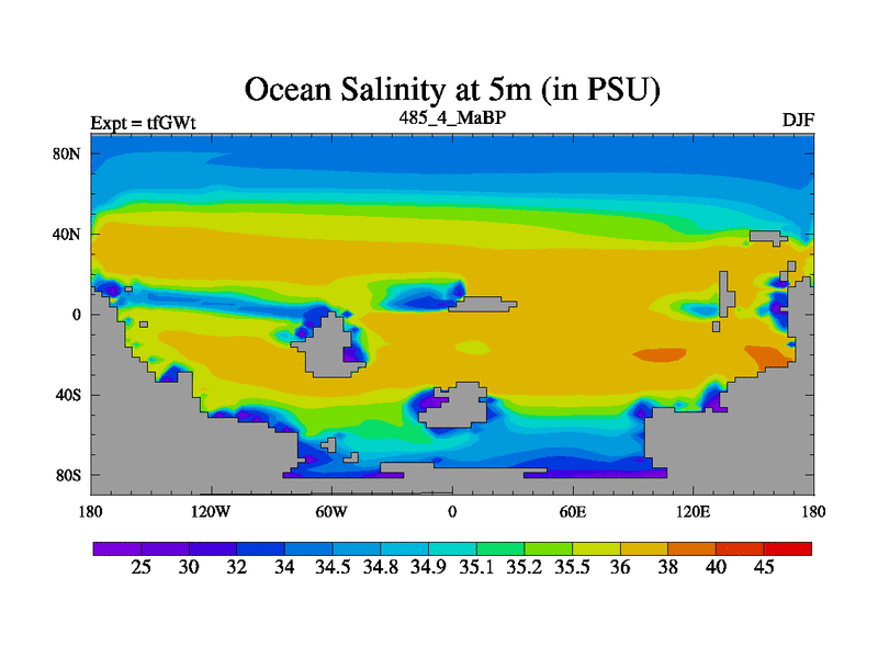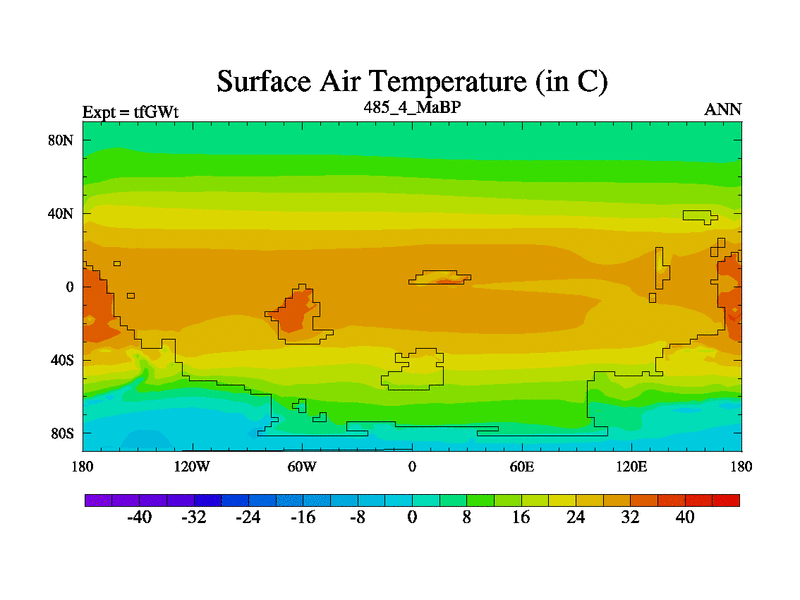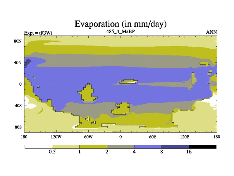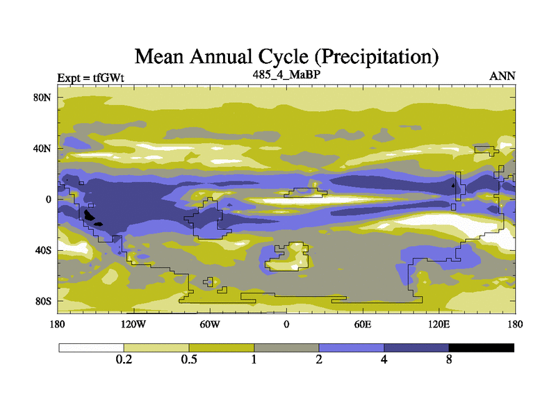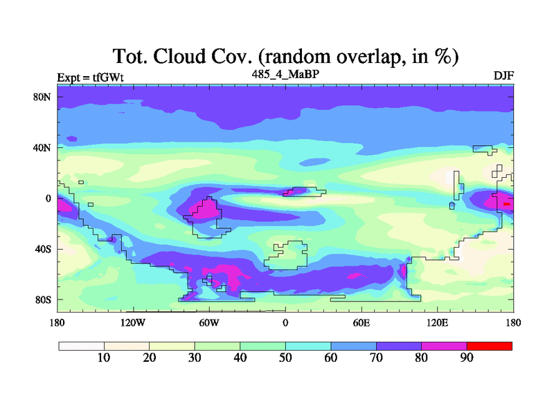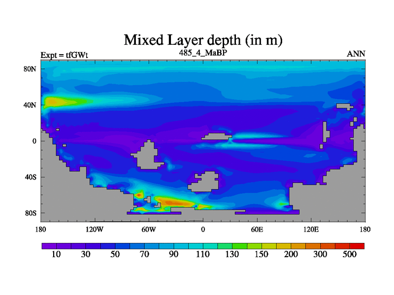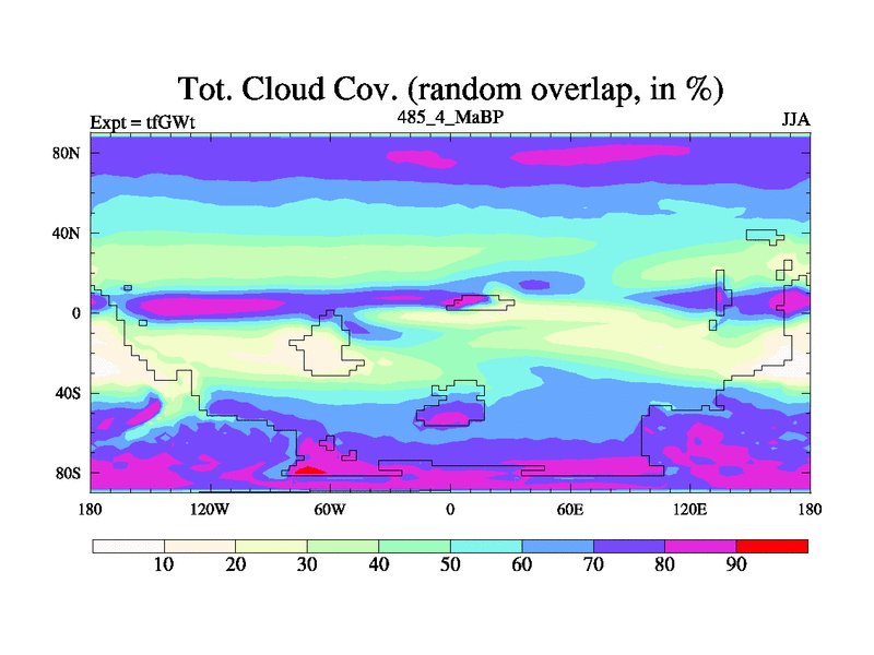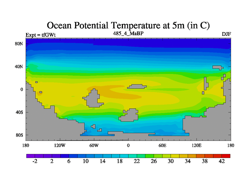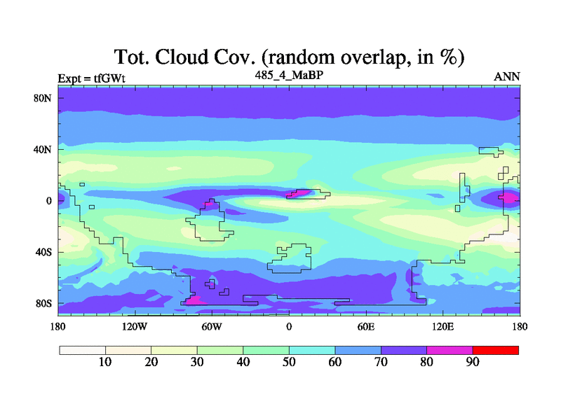 This is the 485.4 Ma simulation using the Scotese palaeogeographies and revised CCN etc. This version has islands included. Started from end of teYEt.