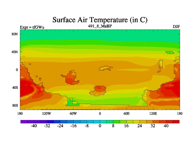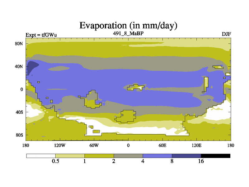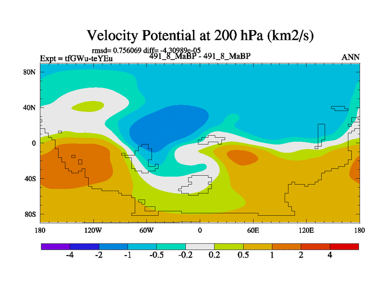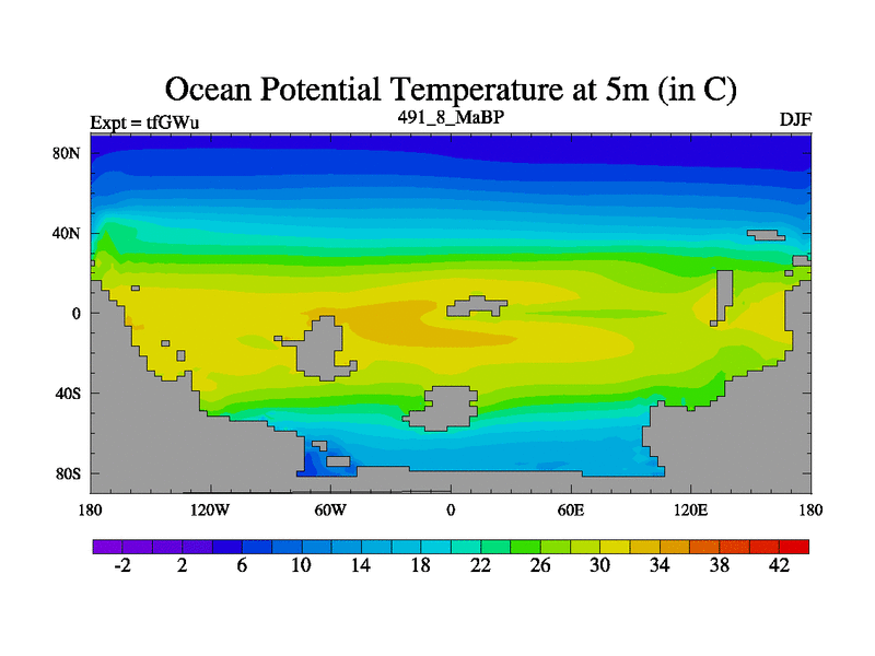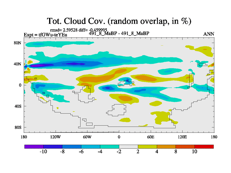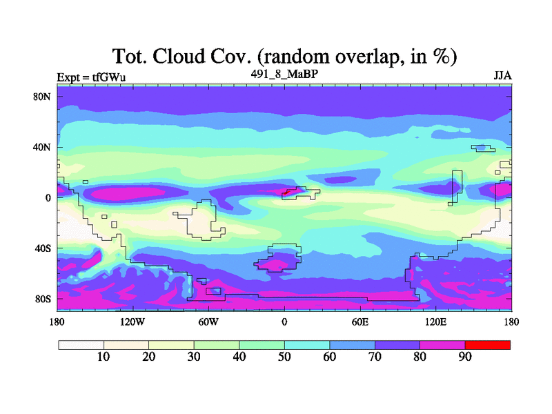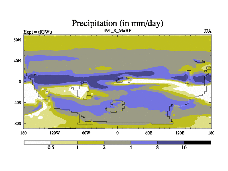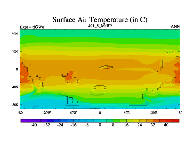 This is the 491.8 Ma simulation using the Scotese palaeogeographies and revised CCN etc. This version has islands included. Started from end of teYEu.