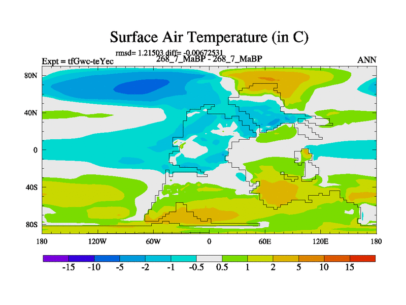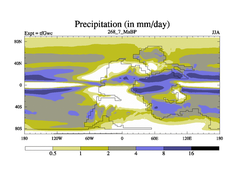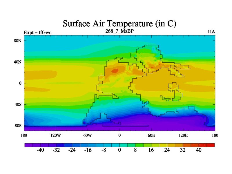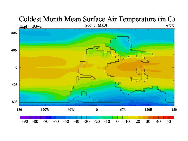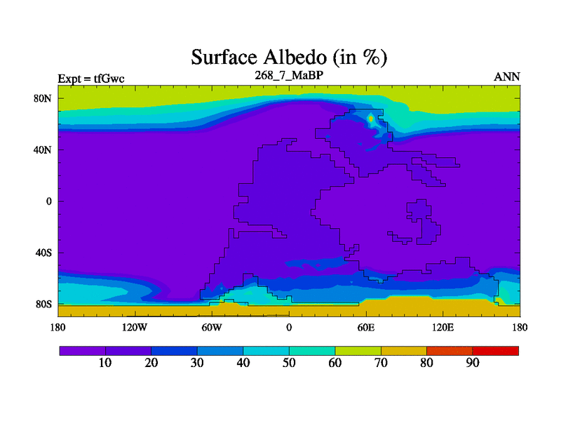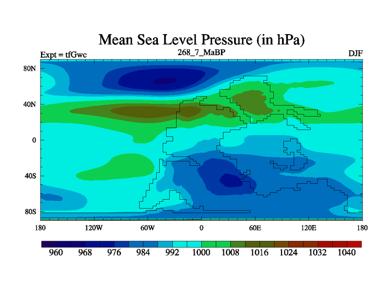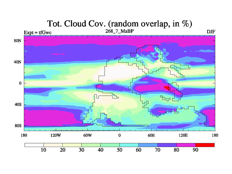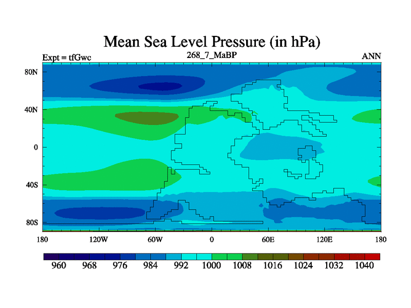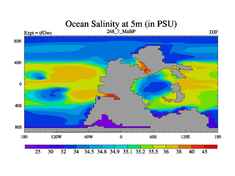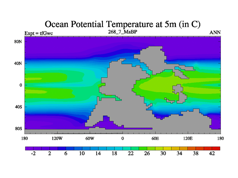 This is the 268.7 Ma simulation using the Scotese palaeogeographies and revised CCN etc. This version has islands included. Started from end of teYec.
