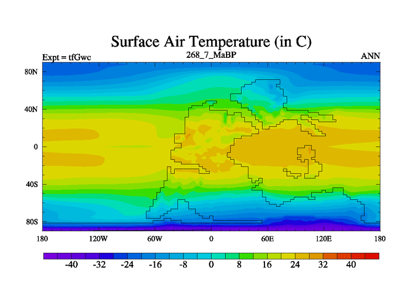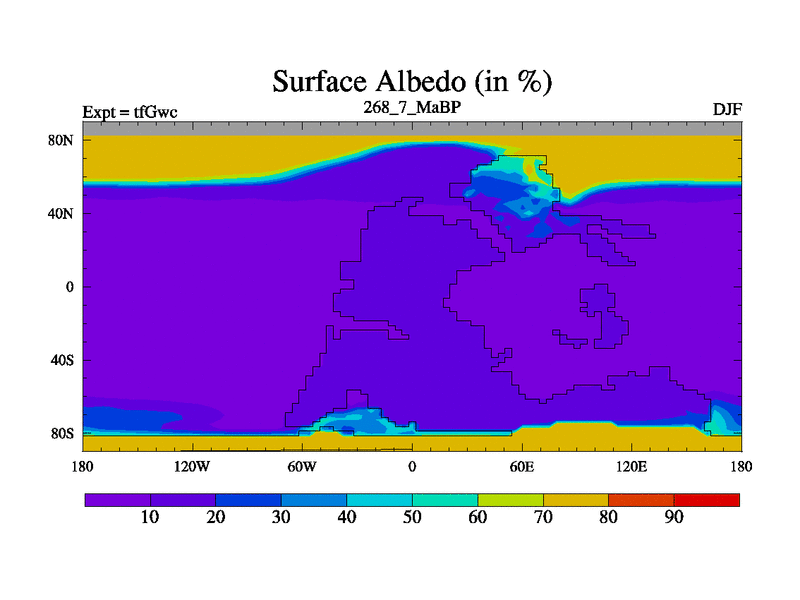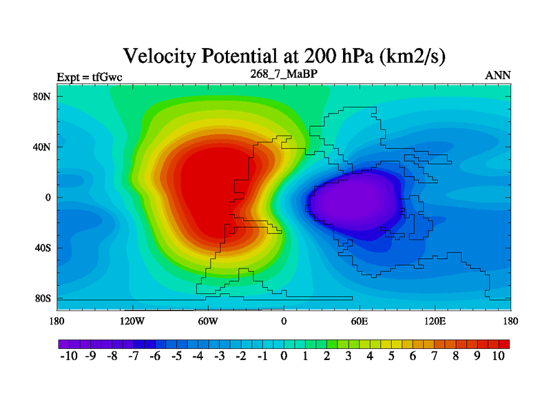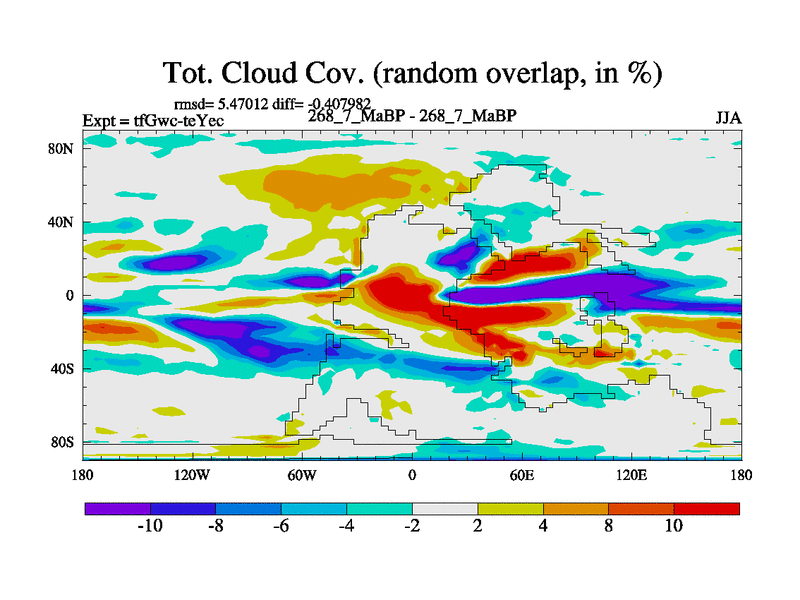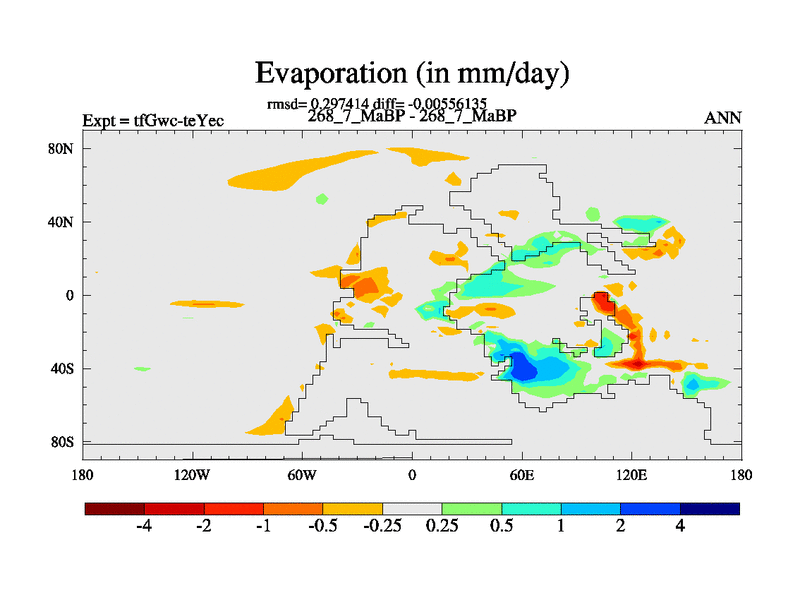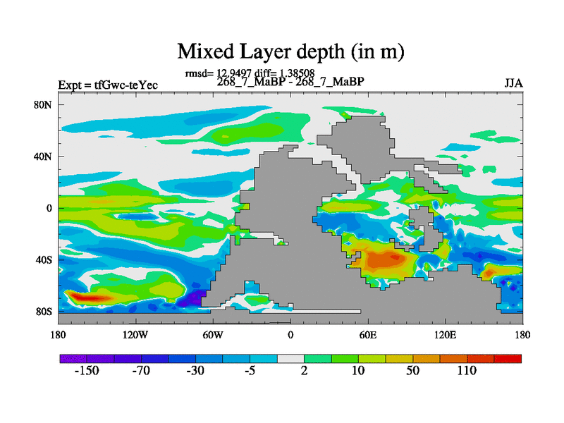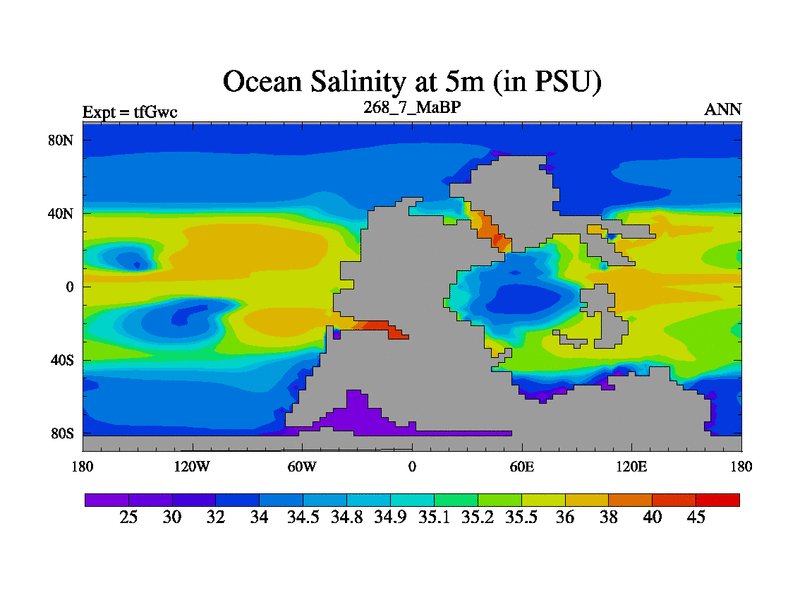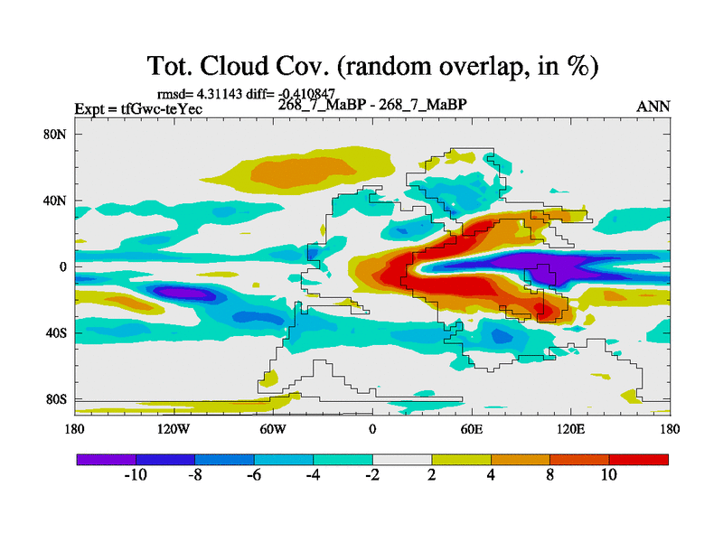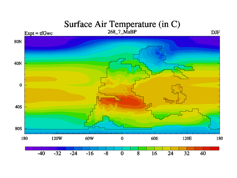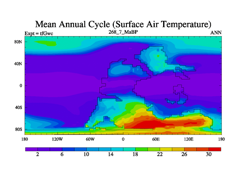This is the 268.7 Ma simulation using the Scotese palaeogeographies and revised CCN etc. This version has islands included. Started from end of teYec.