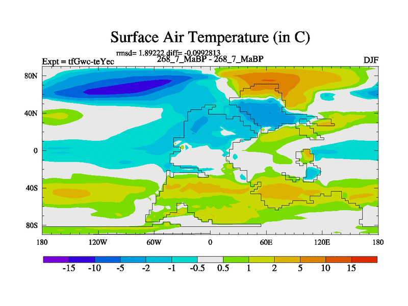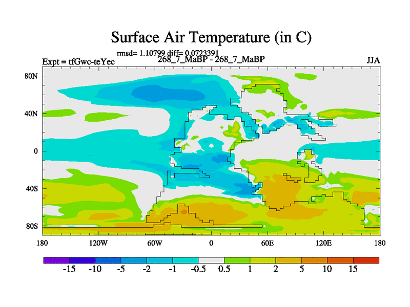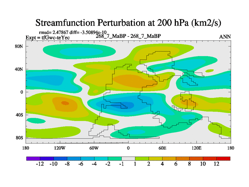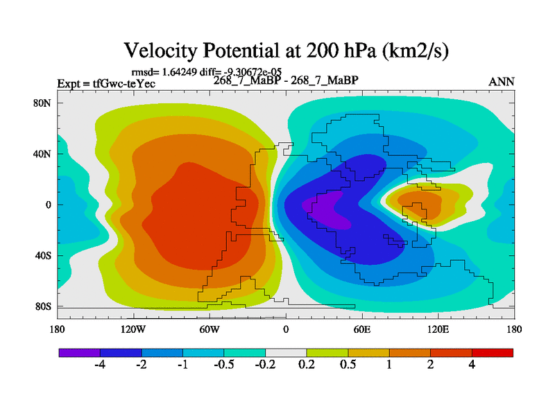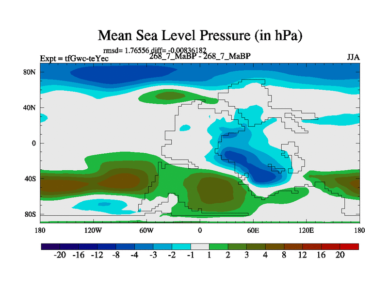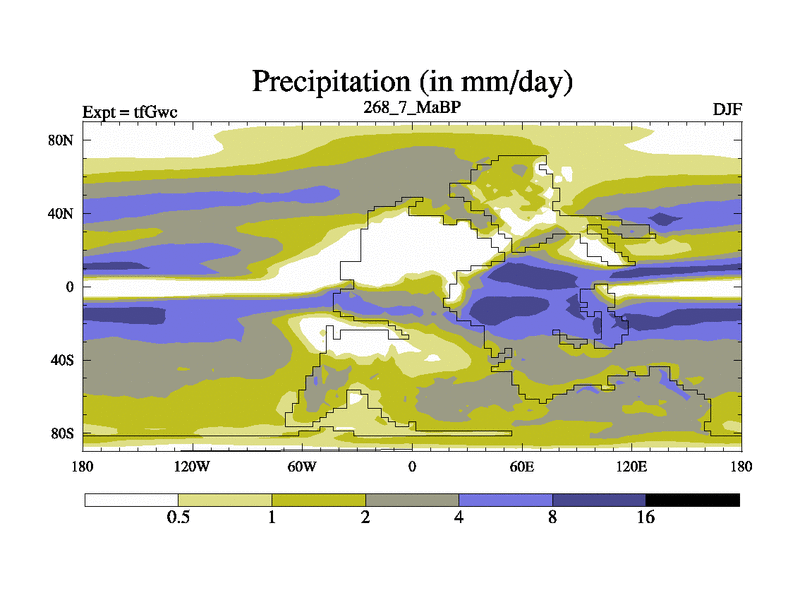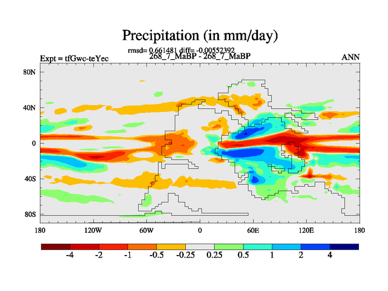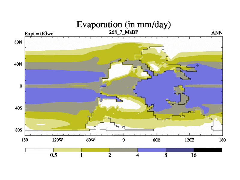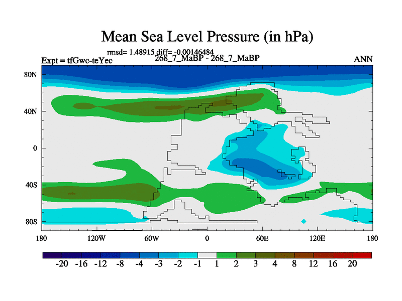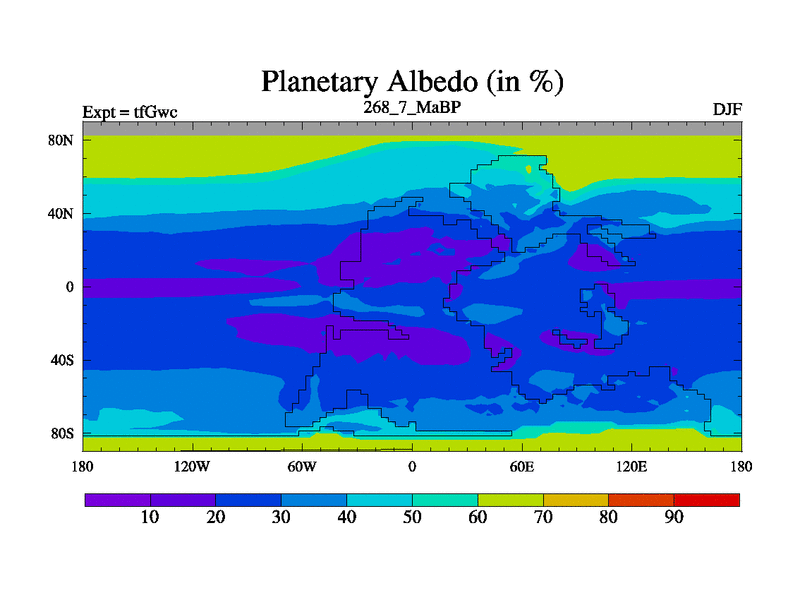 This is the 268.7 Ma simulation using the Scotese palaeogeographies and revised CCN etc. This version has islands included. Started from end of teYec.