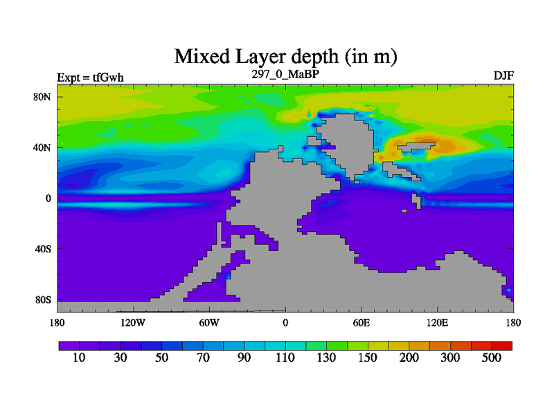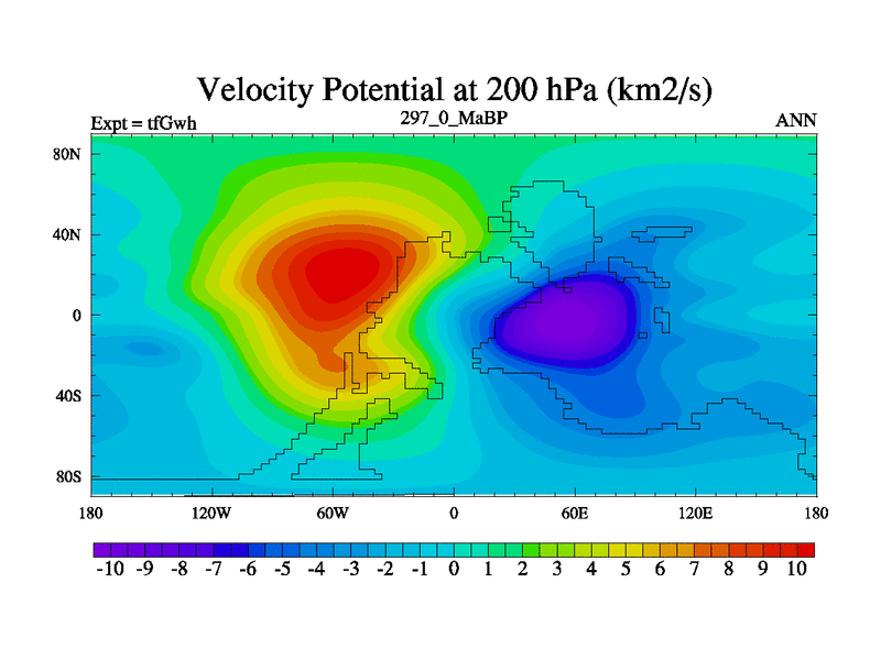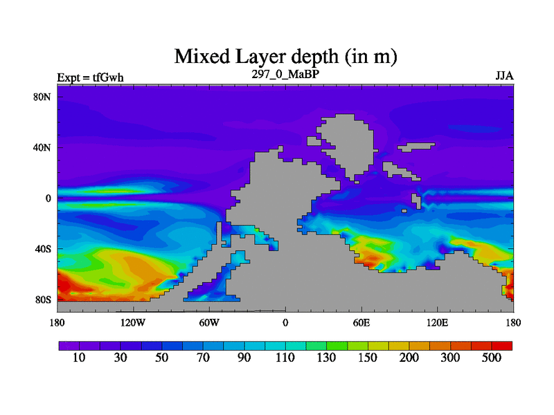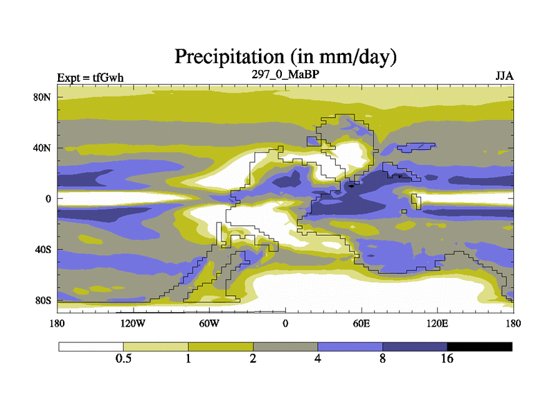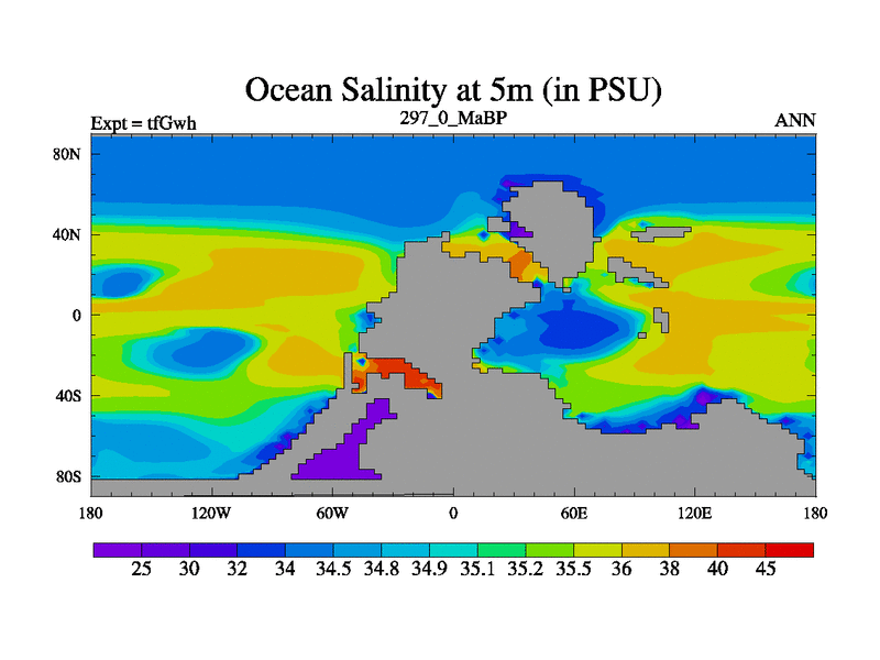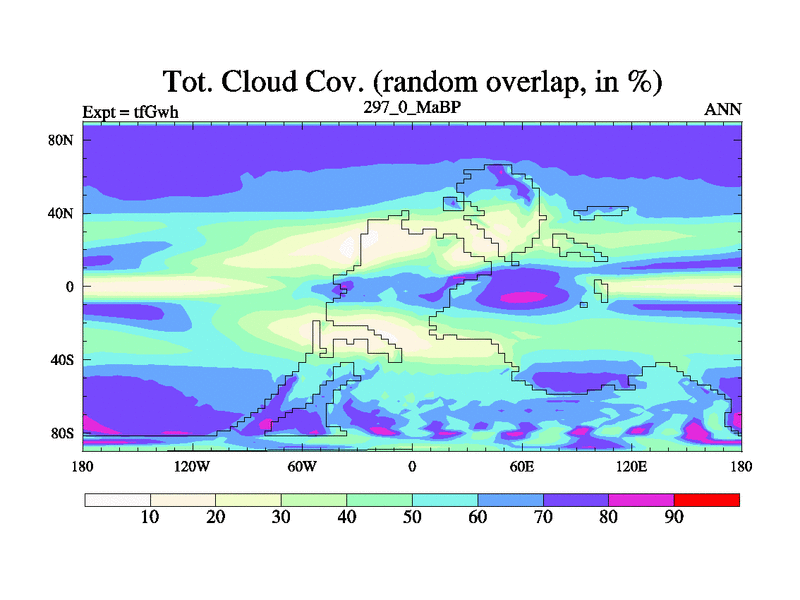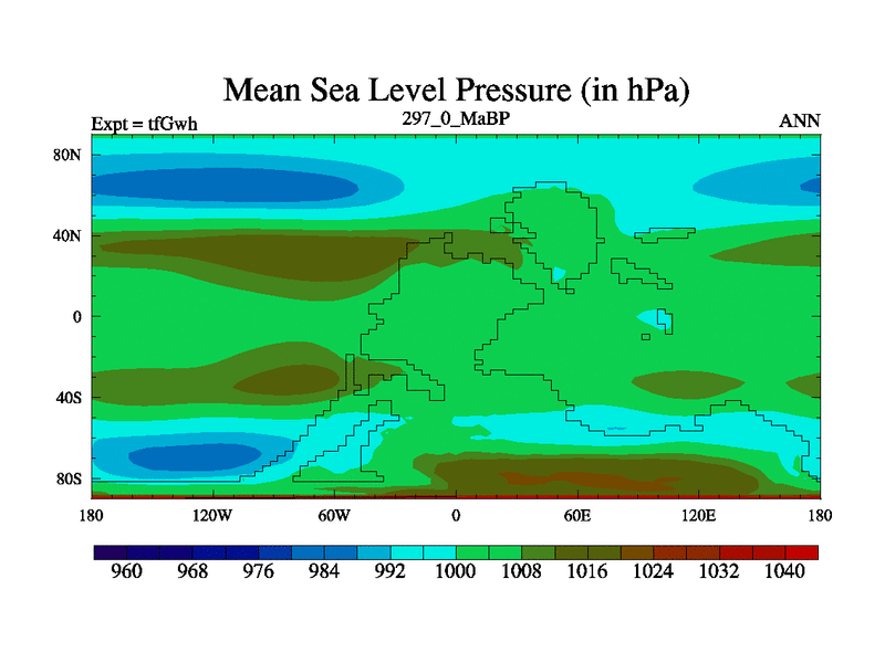 This is the 297.0 Ma simulation using the Scotese palaeogeographies and revised CCN etc. This version has islands included. Started from end of teYeh.