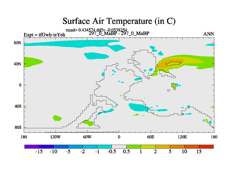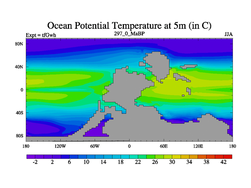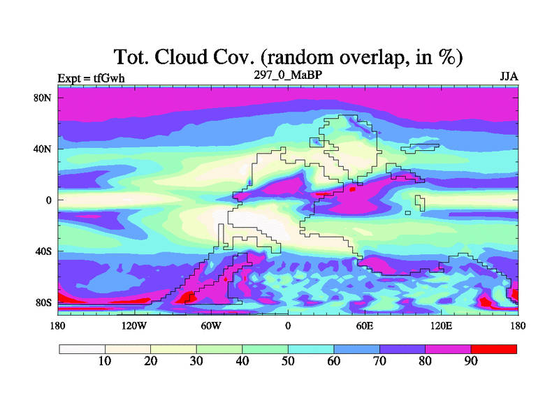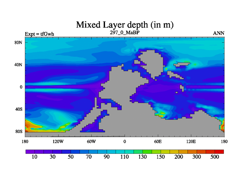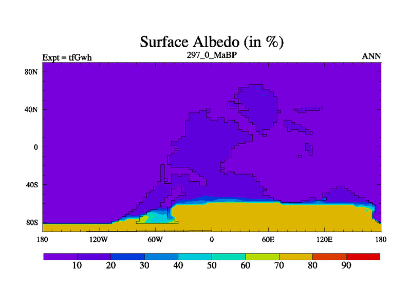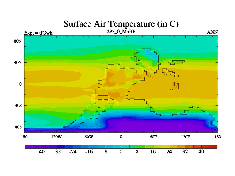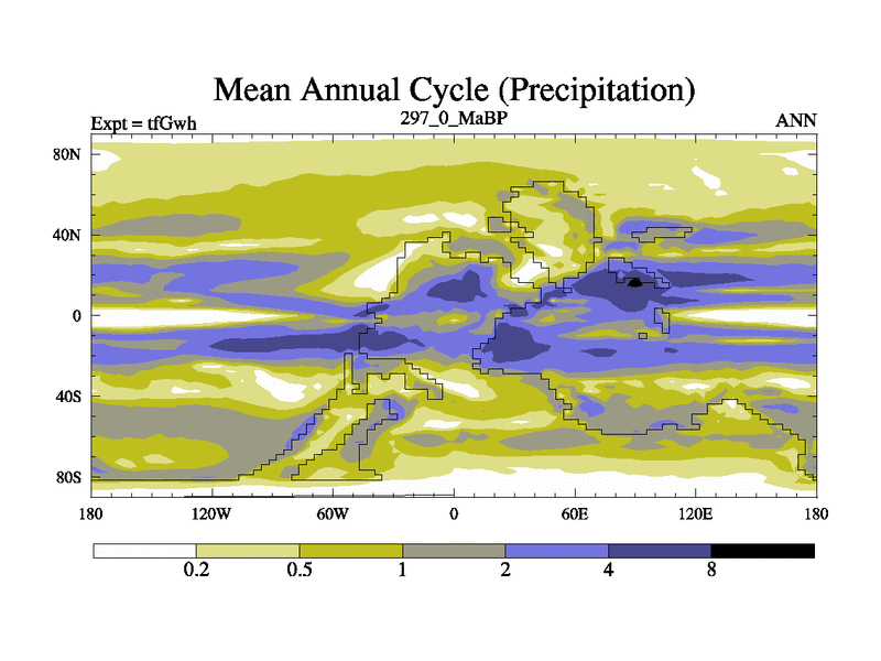 This is the 297.0 Ma simulation using the Scotese palaeogeographies and revised CCN etc. This version has islands included. Started from end of teYeh.