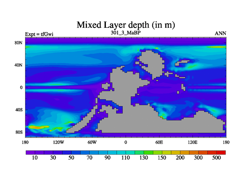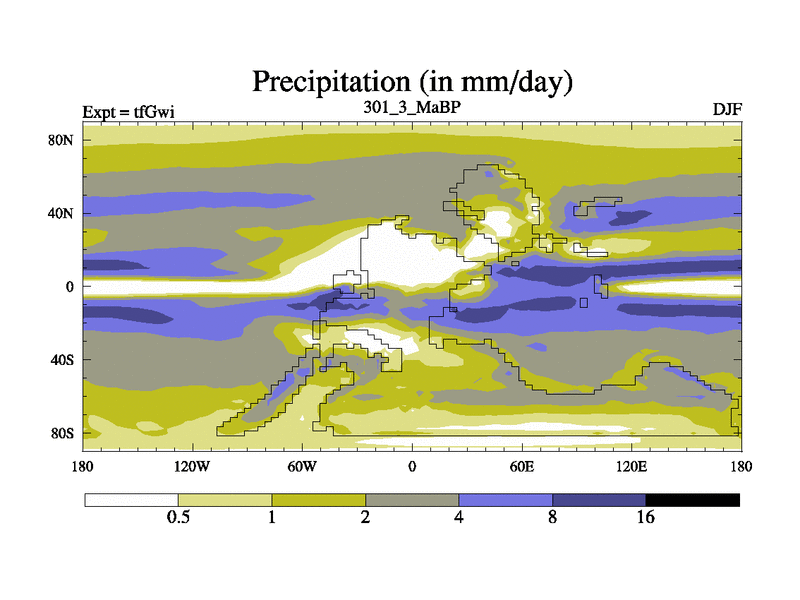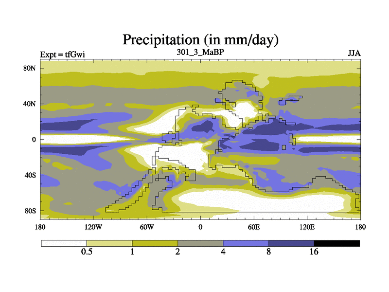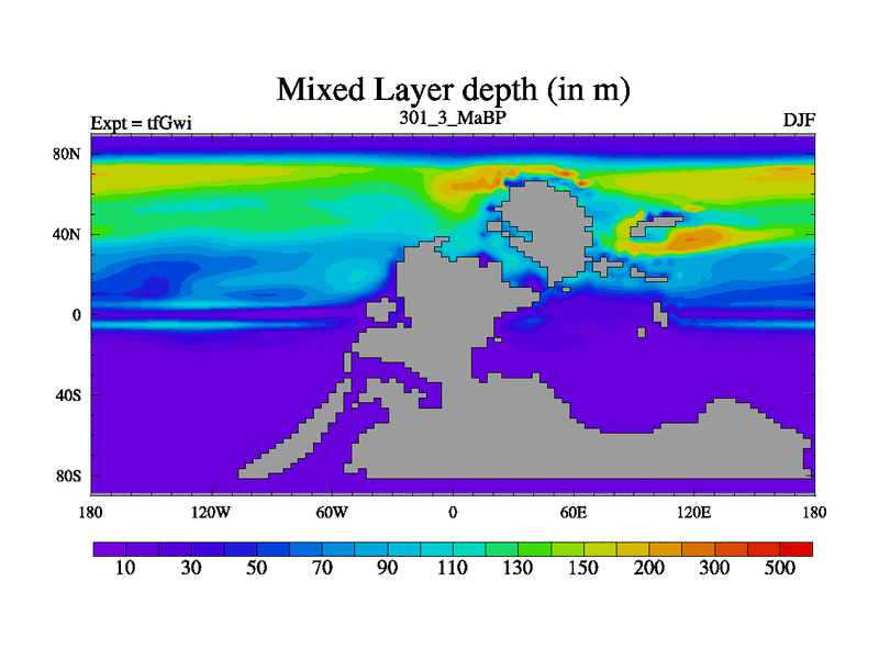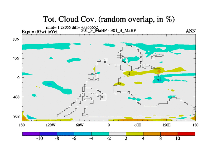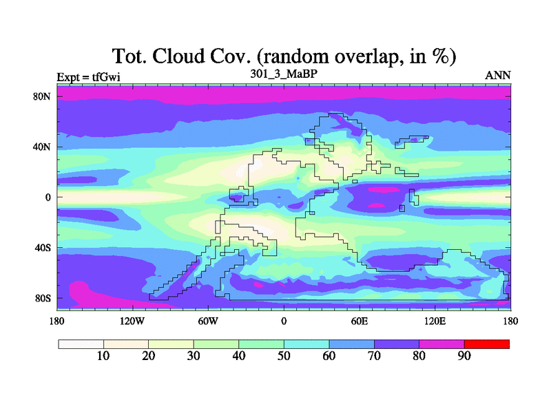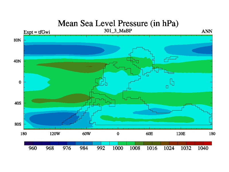 This is the 301.3 Ma simulation using the Scotese palaeogeographies and revised CCN etc. This version has islands included. Started from end of teYei.