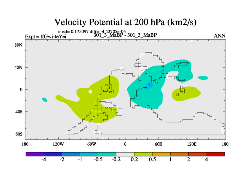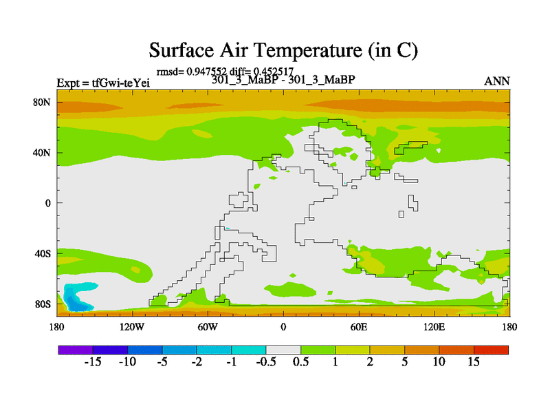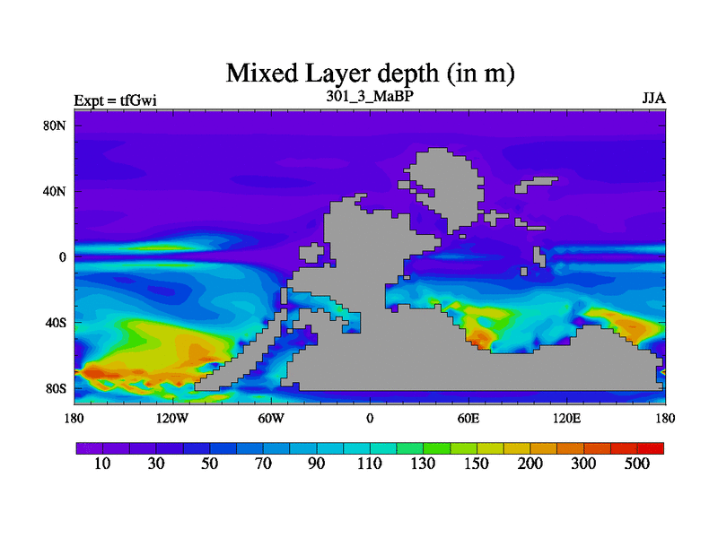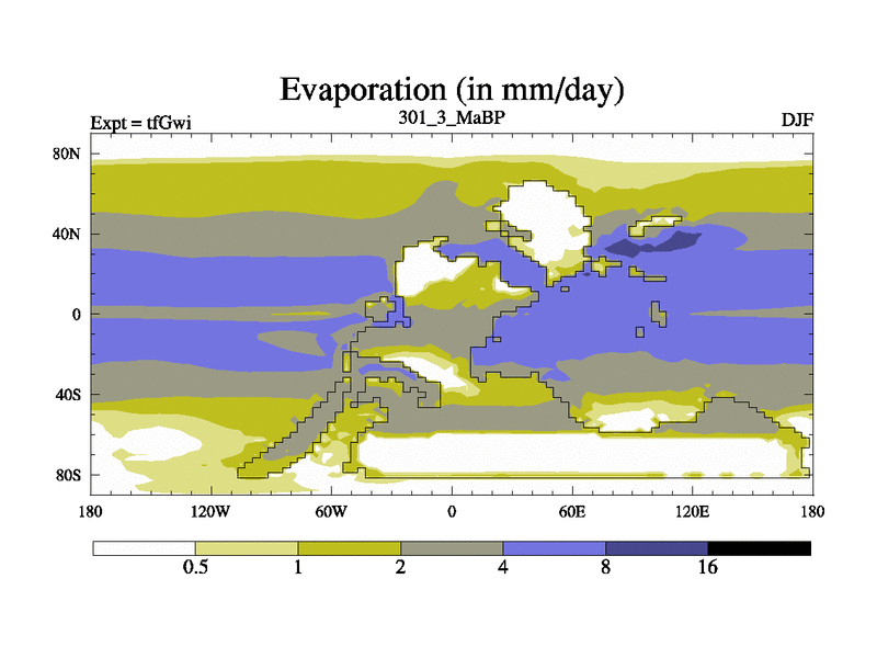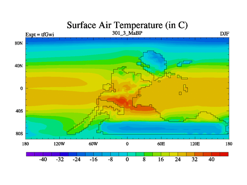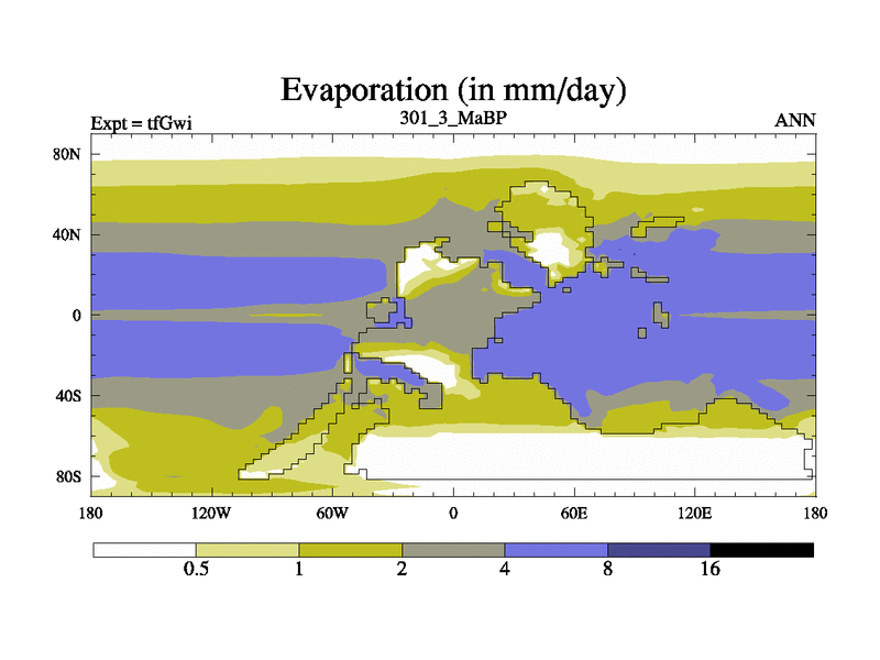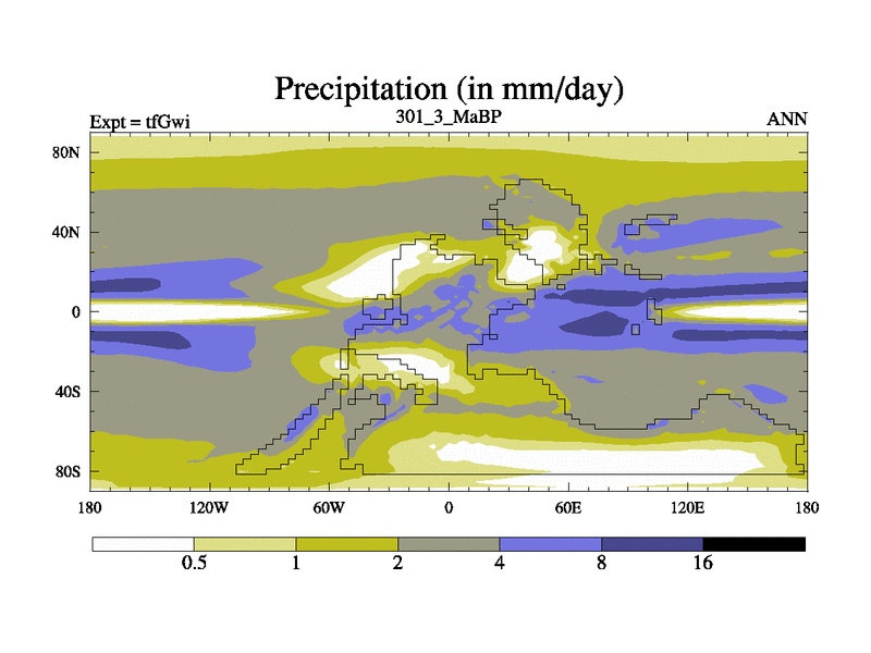 This is the 301.3 Ma simulation using the Scotese palaeogeographies and revised CCN etc. This version has islands included. Started from end of teYei.