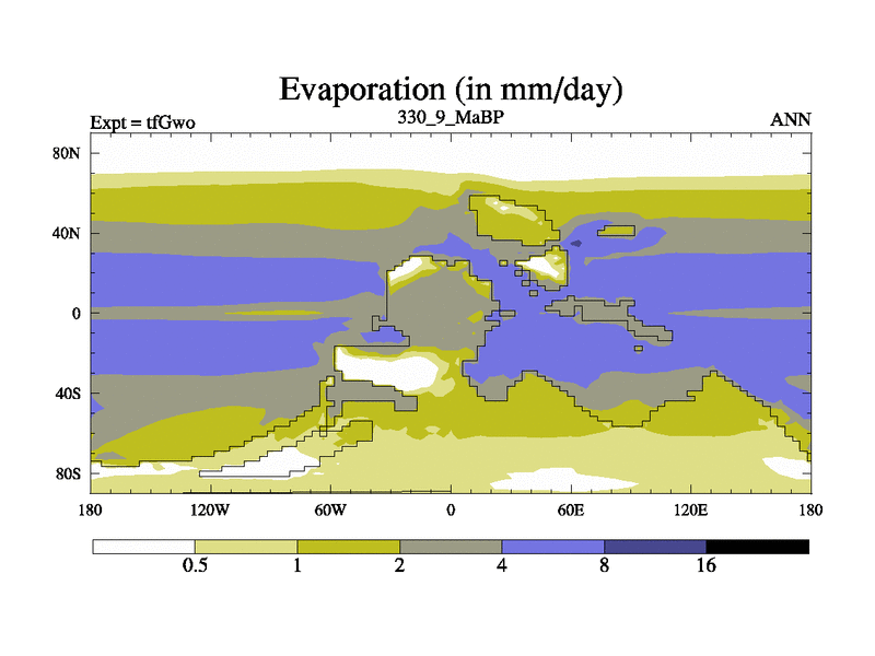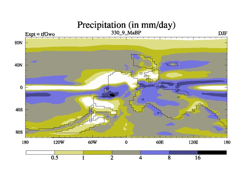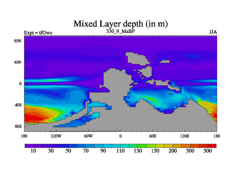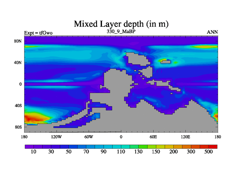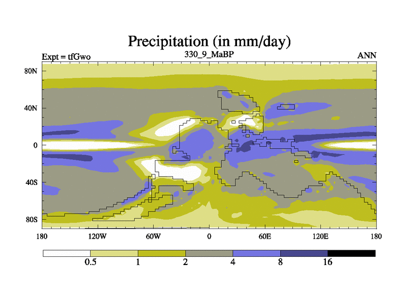 This is the 330.9 Ma simulation using the Scotese palaeogeographies and revised CCN etc. This version has islands included. Started from end of teYeo.