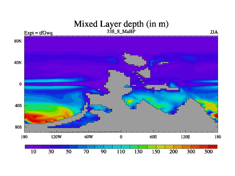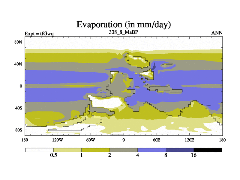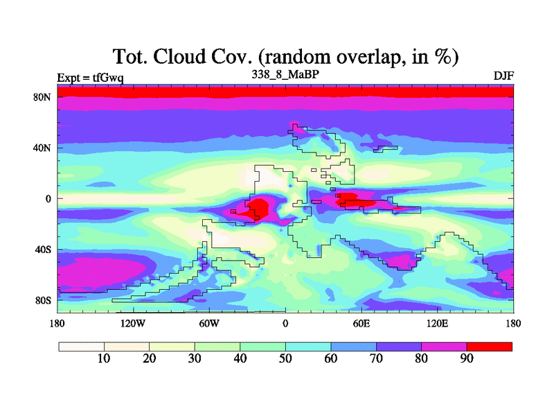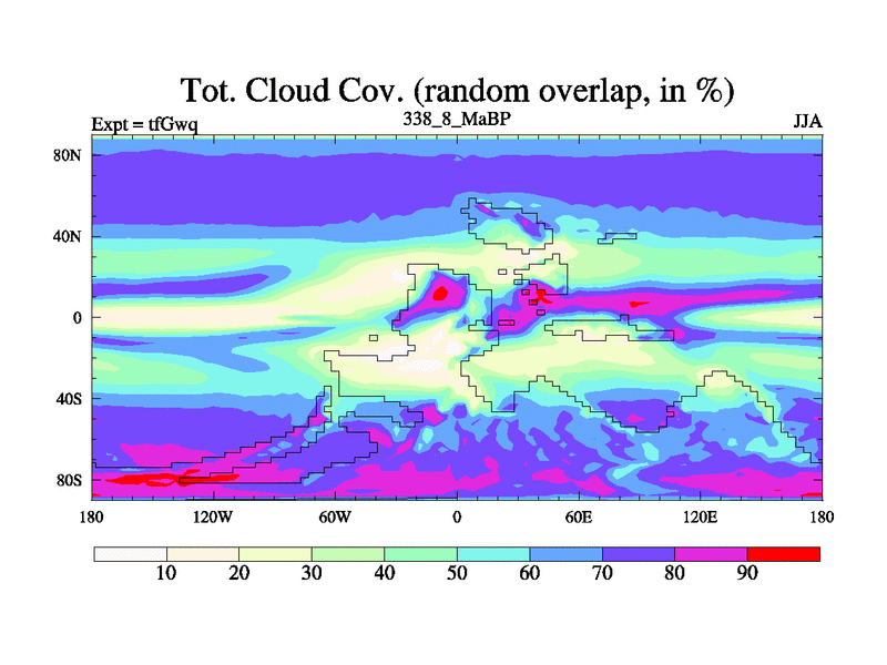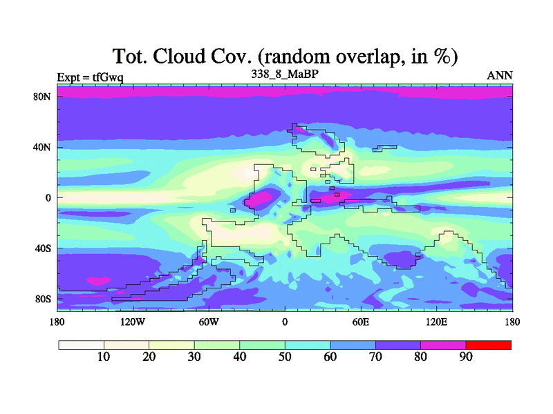 This is the 338.8 Ma simulation using the Scotese palaeogeographies and revised CCN etc. This version has islands included. Started from end of teYeq.