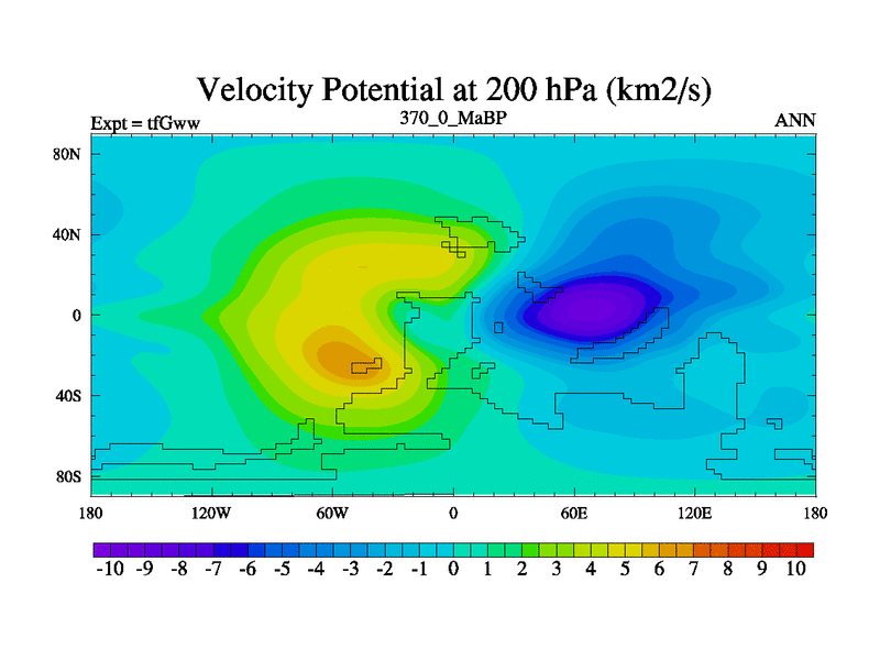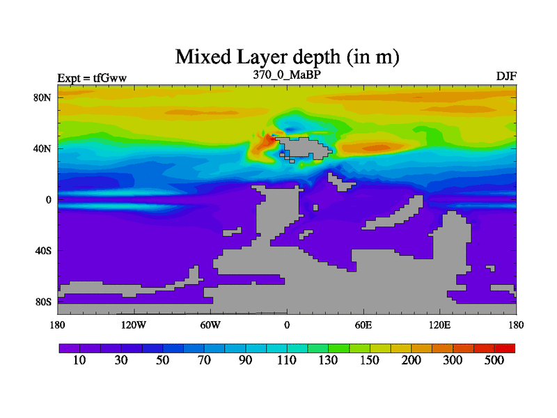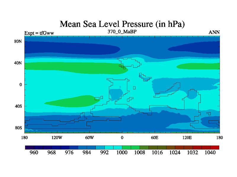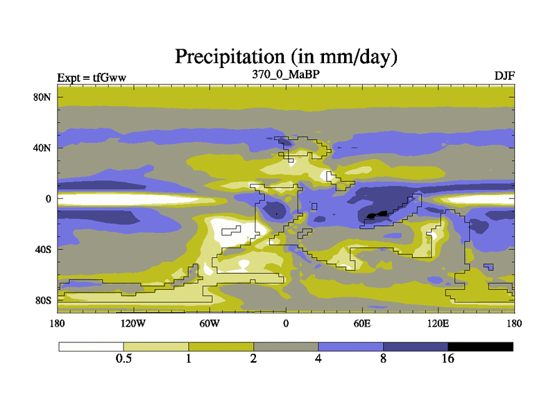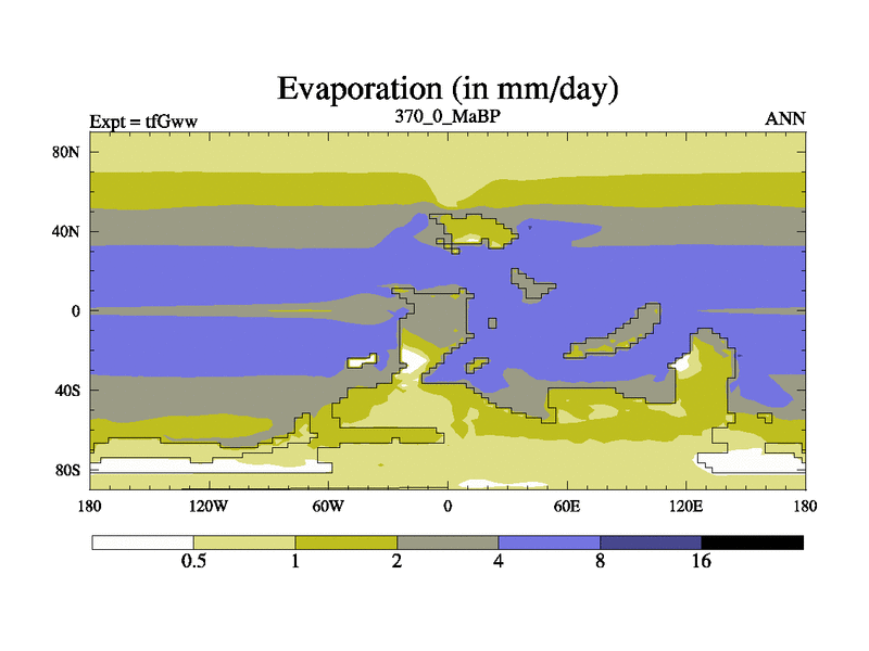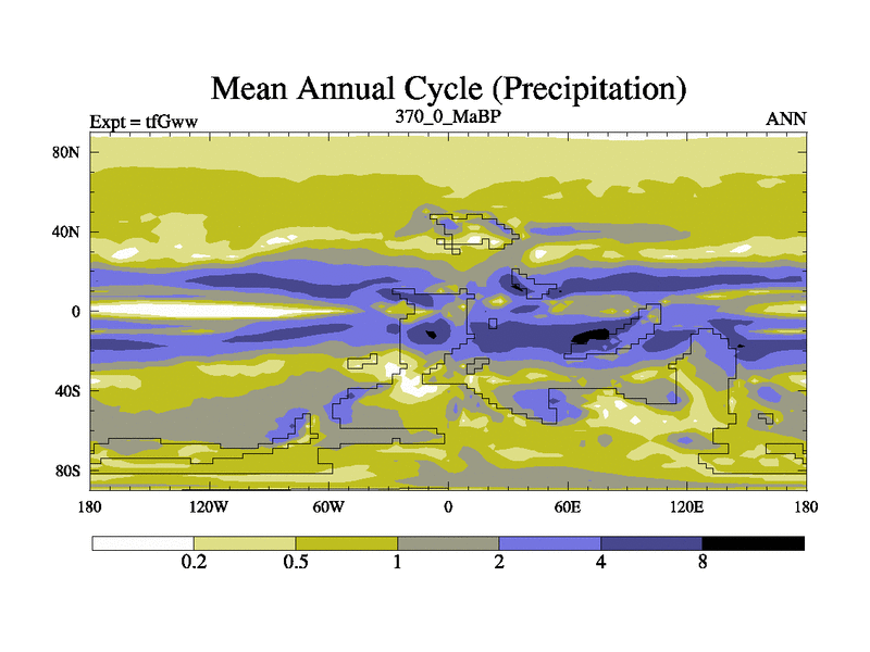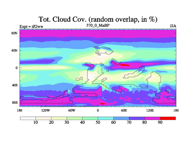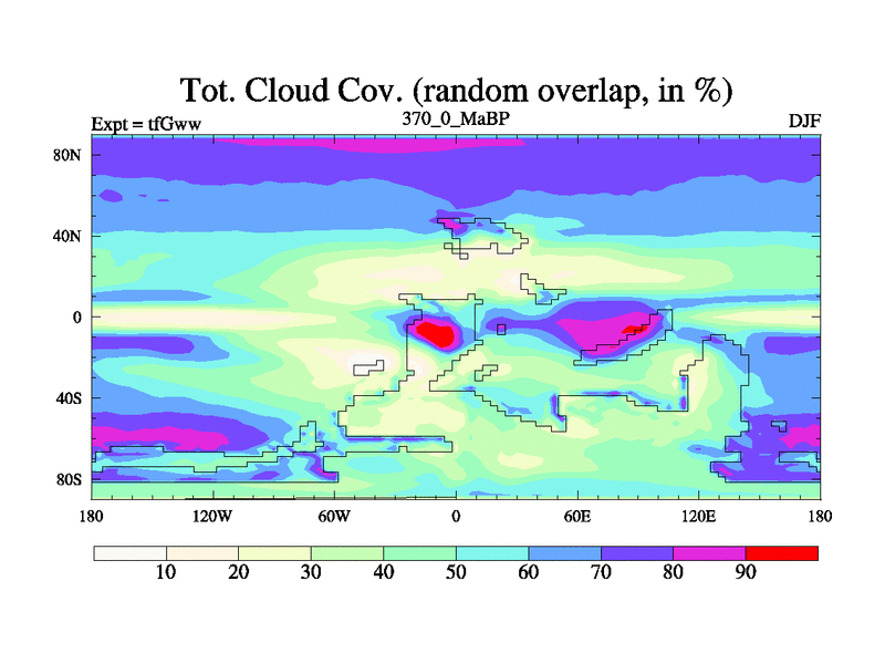 This is the 370.0 Ma simulation using the Scotese palaeogeographies and revised CCN etc. This version has islands included. Started from end of teYew.