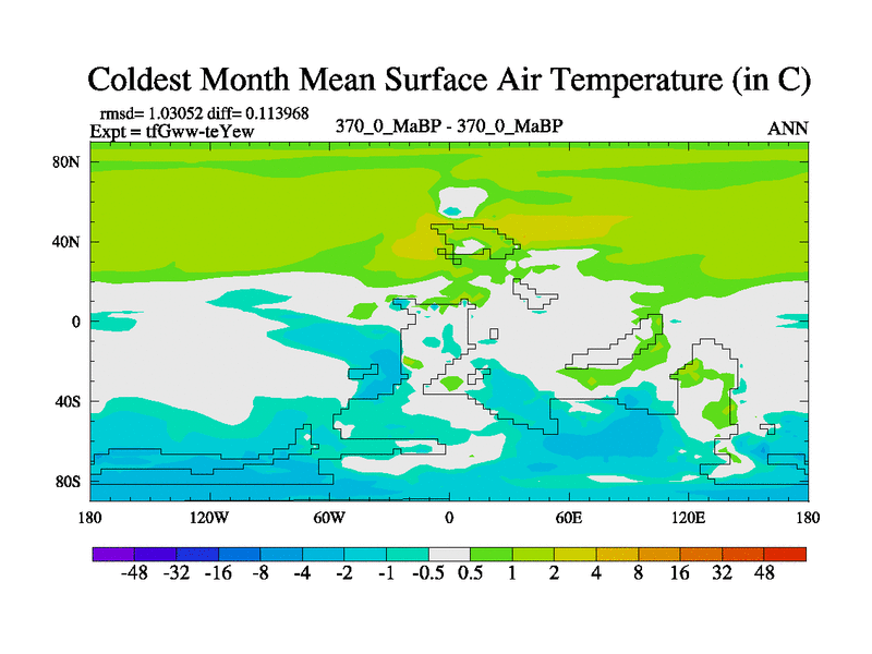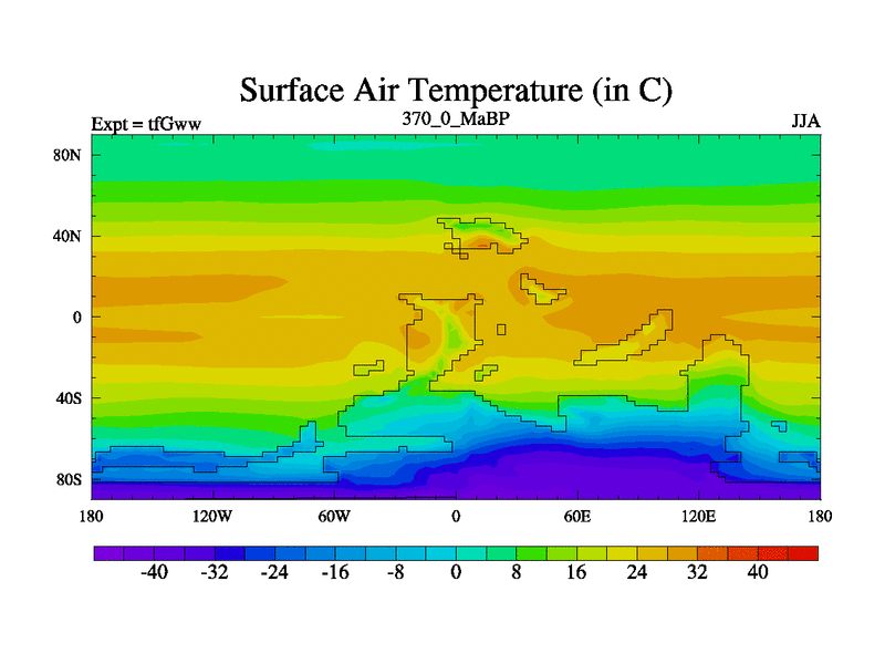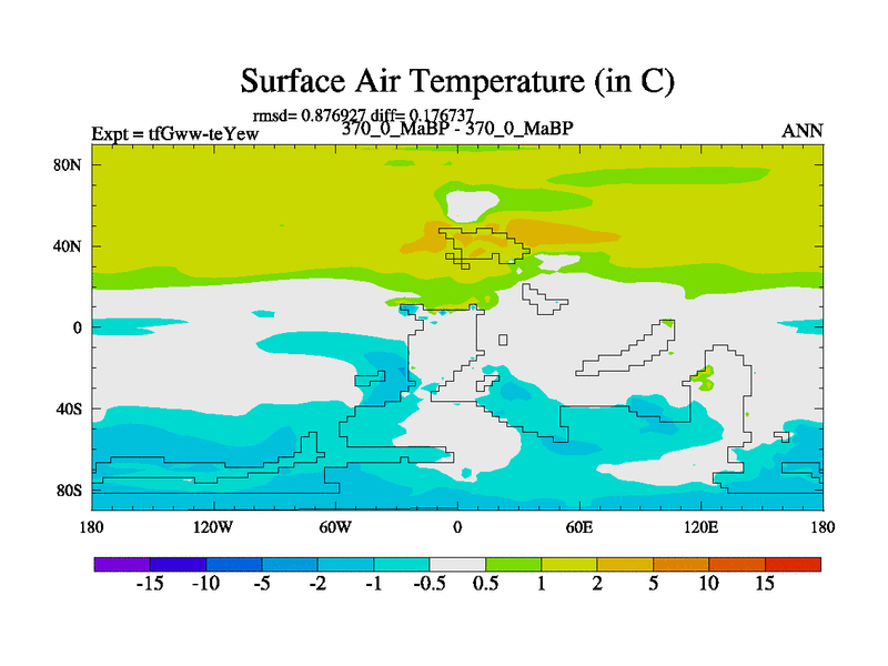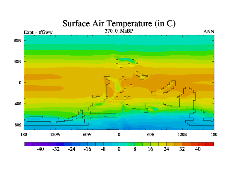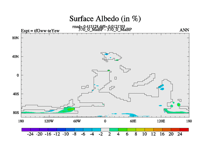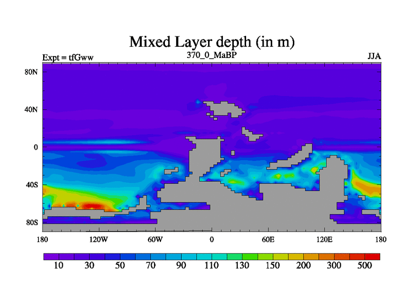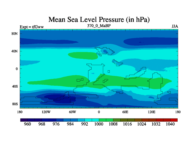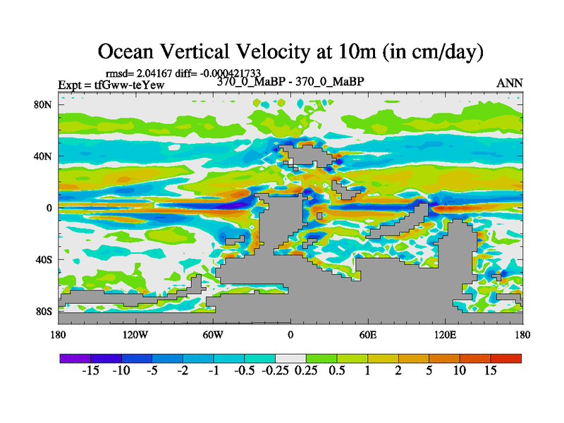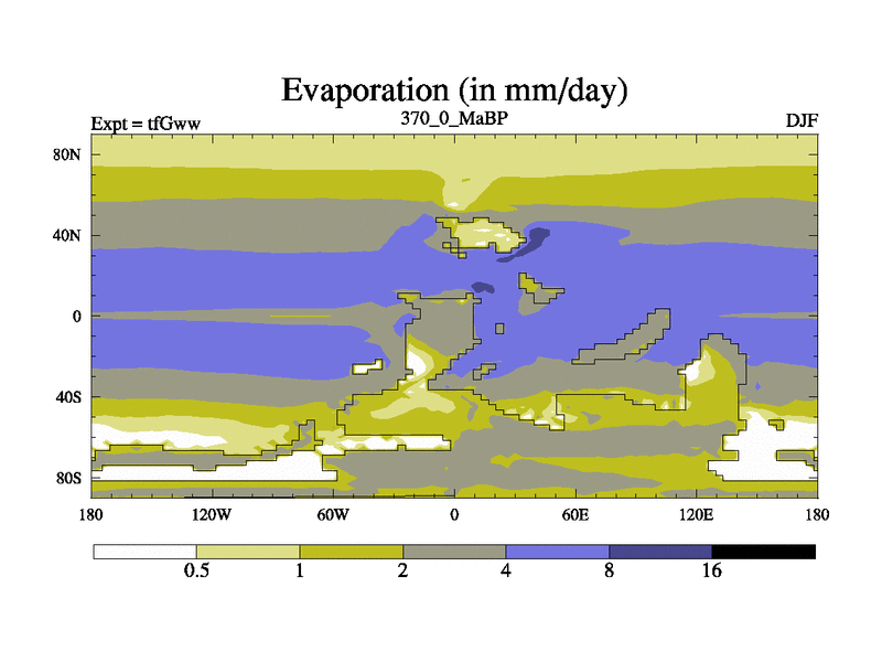 This is the 370.0 Ma simulation using the Scotese palaeogeographies and revised CCN etc. This version has islands included. Started from end of teYew.