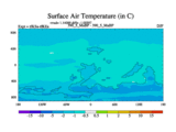 Scientifically as benchmark except using water age update, dark respiration, salinity conservation and revised ozone. Also using new orbital and solar update, and outputting leaf CO2. This version has islands included and atmospheric smoothing and desert albedo. Tuned CO2 to give Scotese temperatures. Started from end of tfKEa.