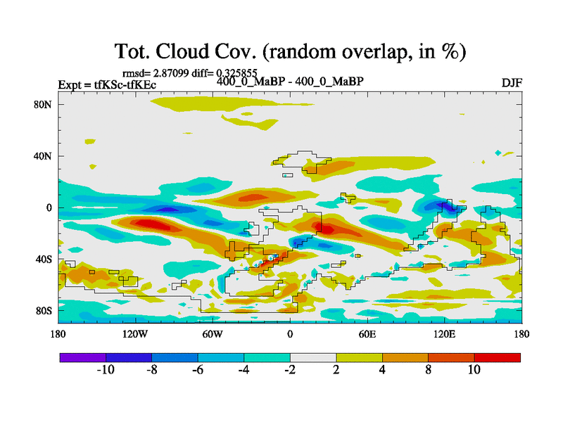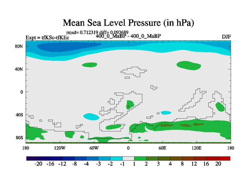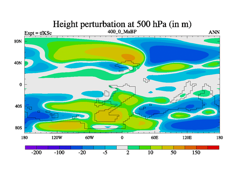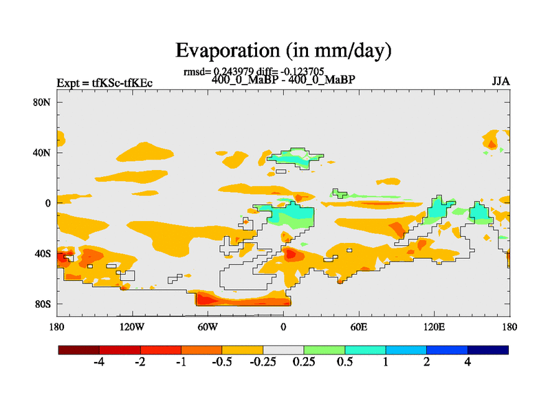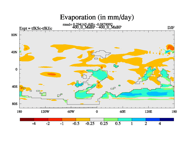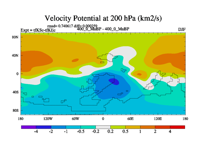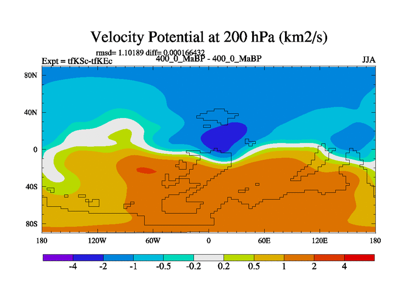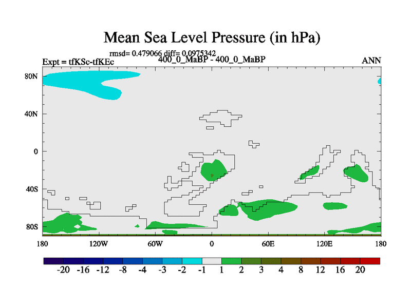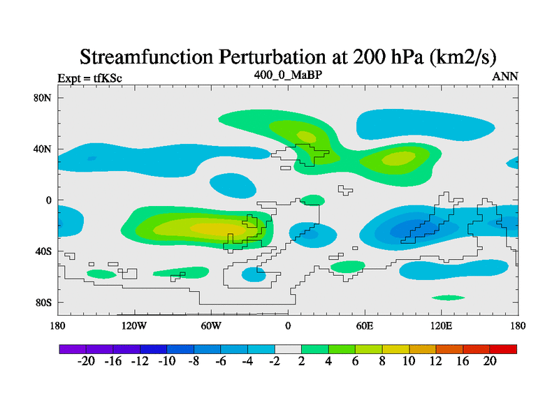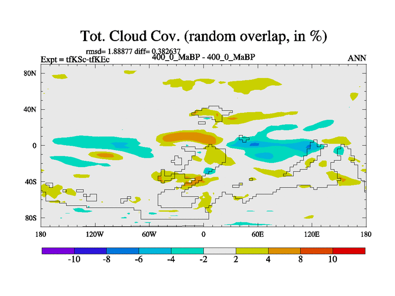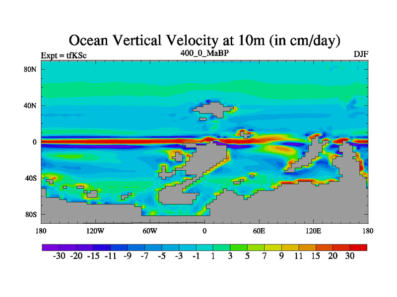 This is the 400.0 Ma simulation using the Scotese palaeogeographies and revised CCN etc. This version has islands and smoothing and desert albedo included. Tuned CO2 to give Scotese temperatures. Started from end of tfKEc.