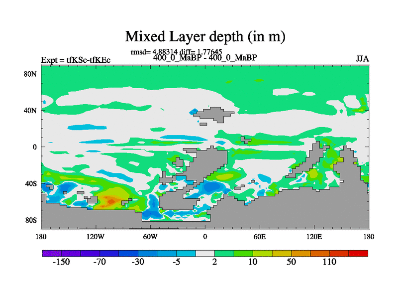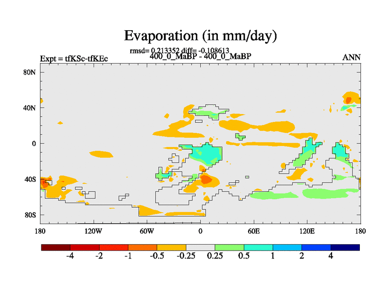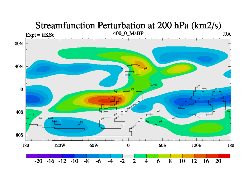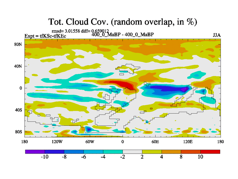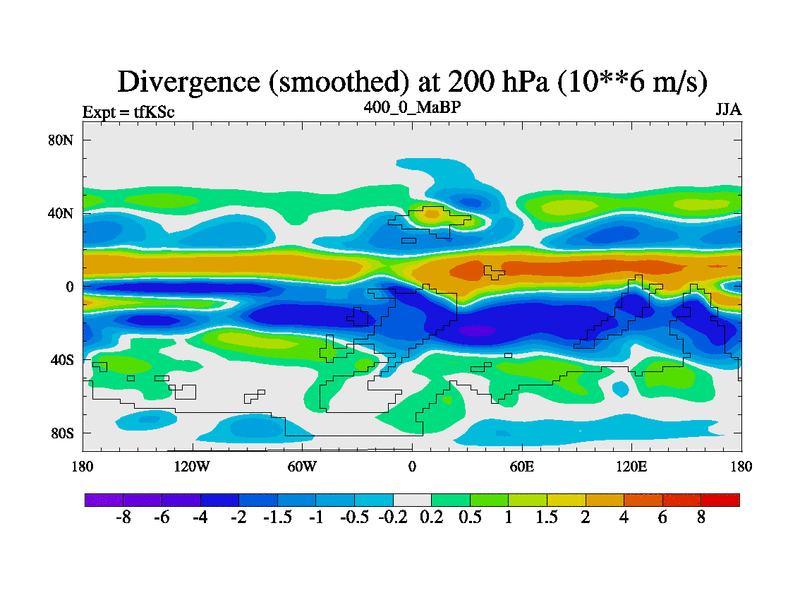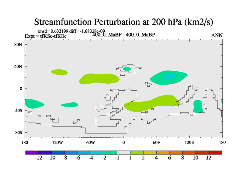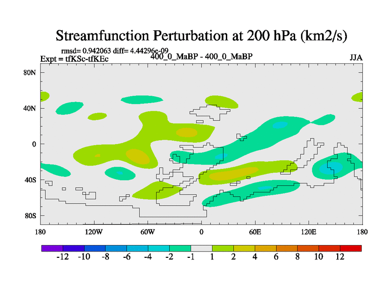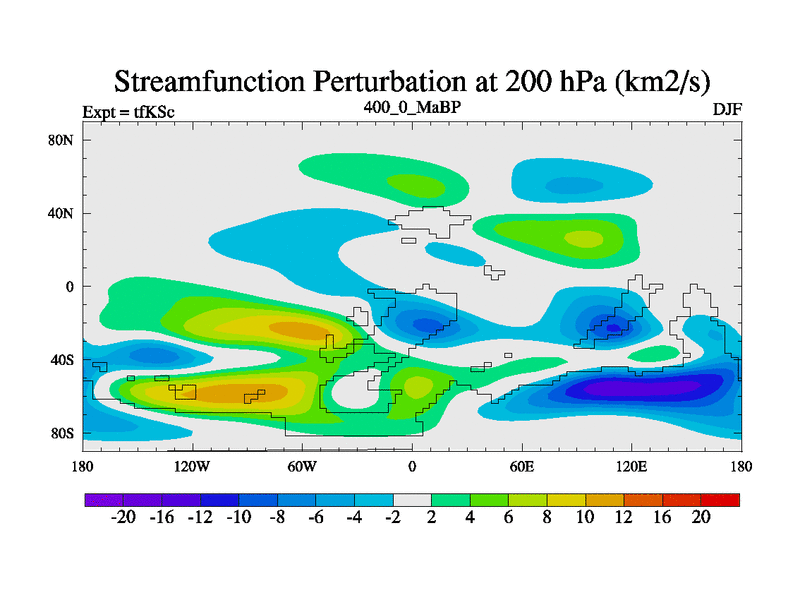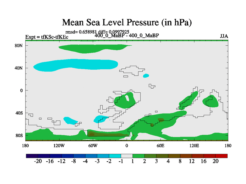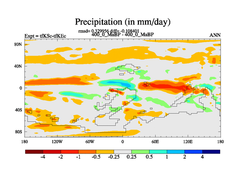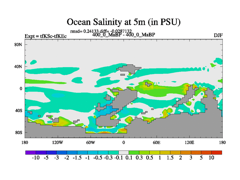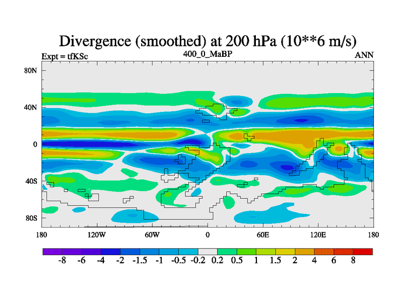 This is the 400.0 Ma simulation using the Scotese palaeogeographies and revised CCN etc. This version has islands and smoothing and desert albedo included. Tuned CO2 to give Scotese temperatures. Started from end of tfKEc.