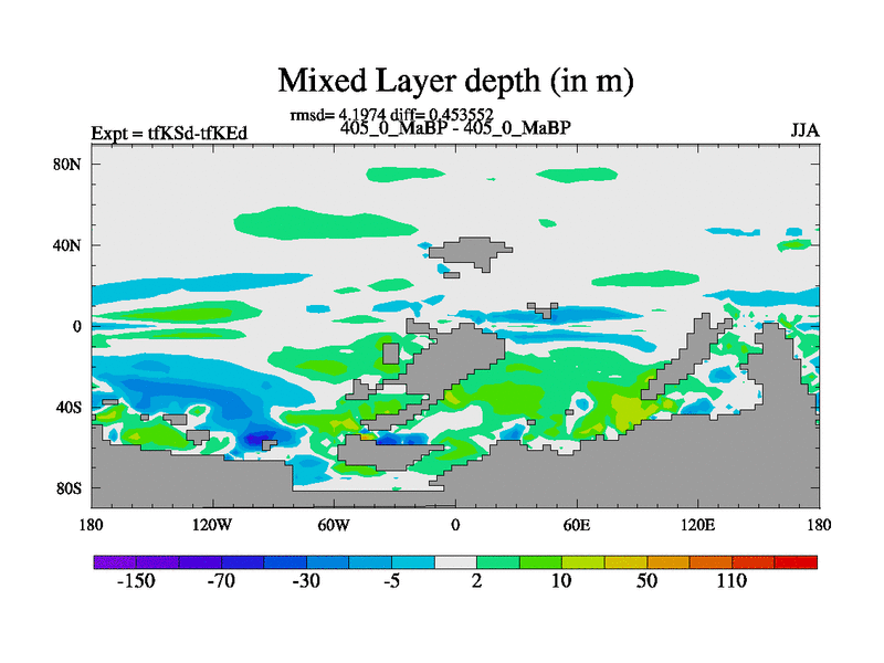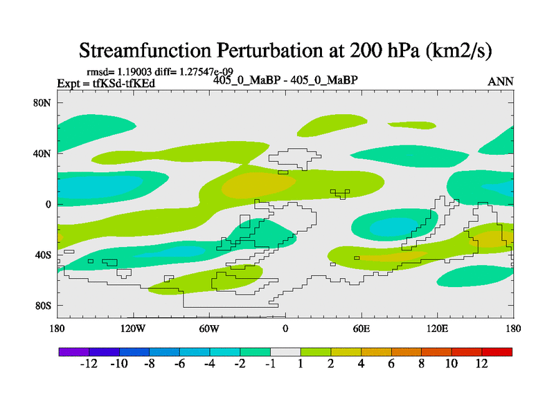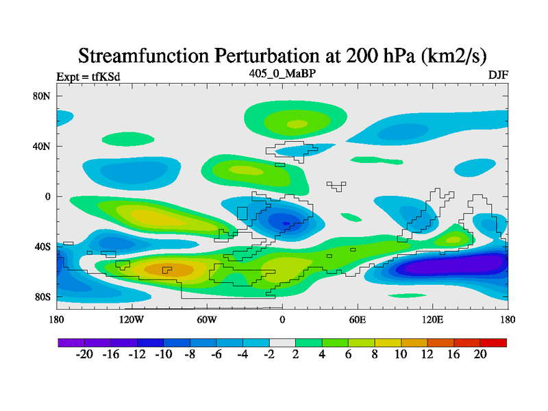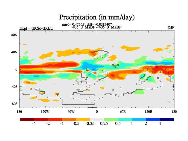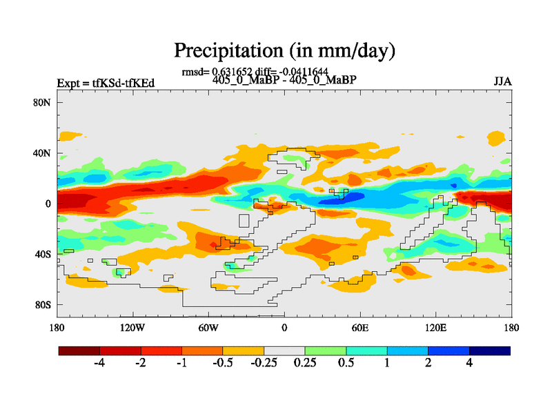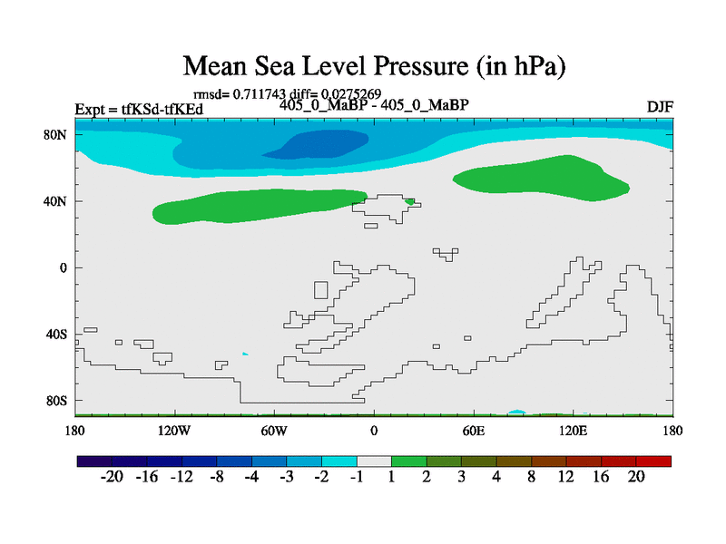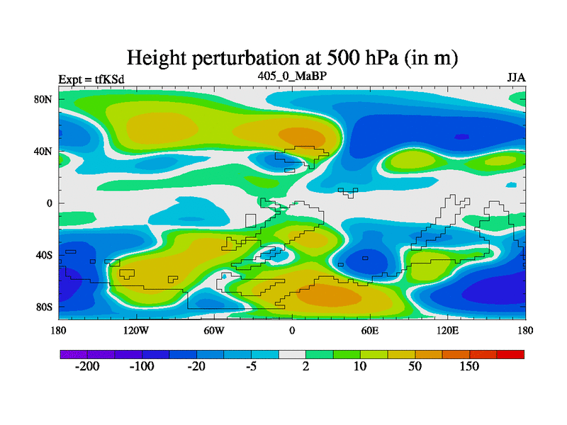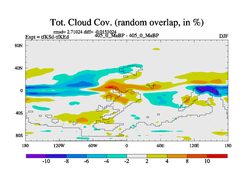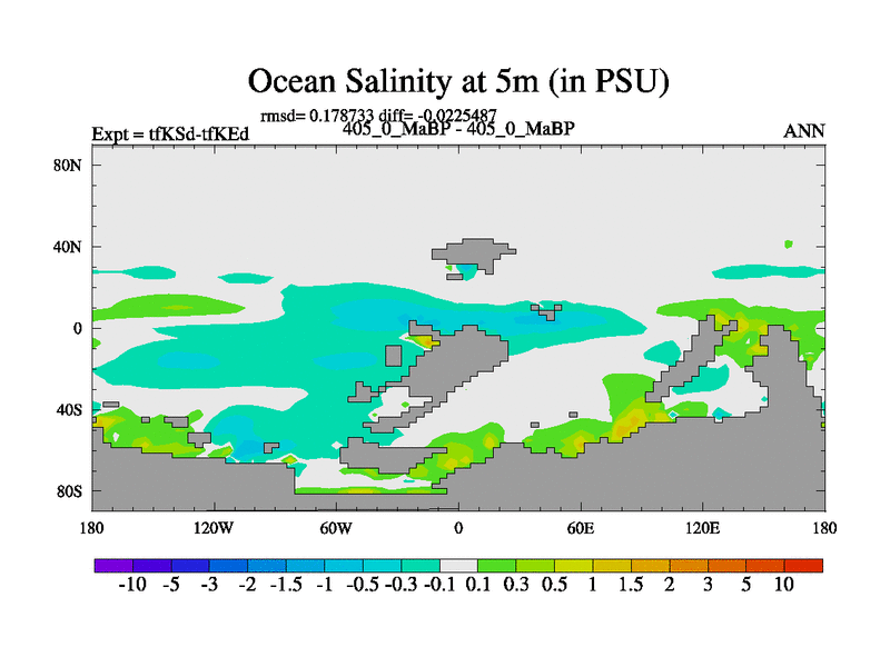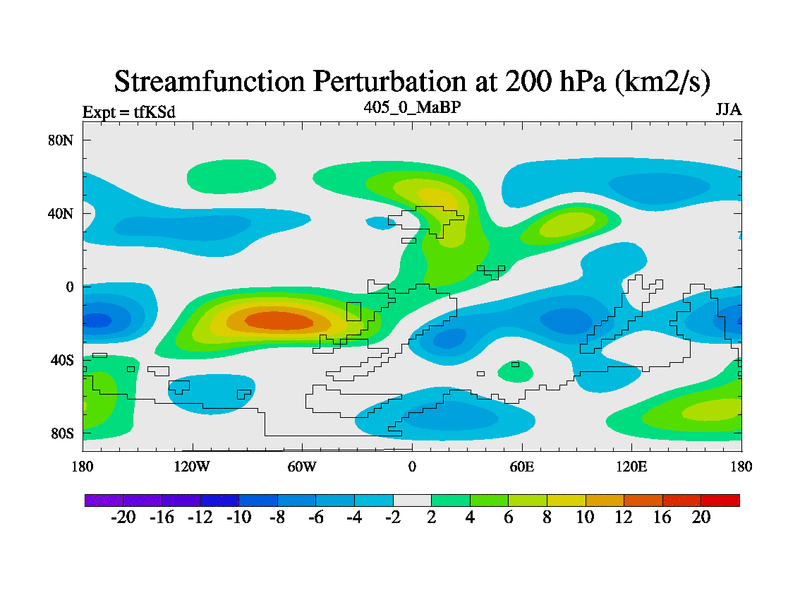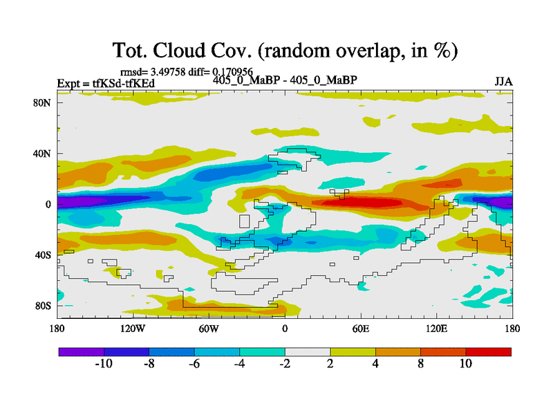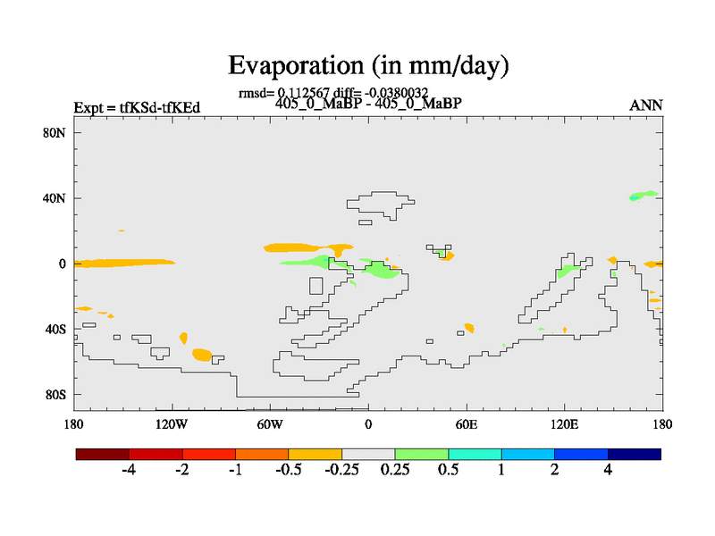 This is the 405.0 Ma simulation using the Scotese palaeogeographies and revised CCN etc. This version has islands and smoothing and desert albedo included. Tuned CO2 to give Scotese temperatures. Started from end of tfKEd.