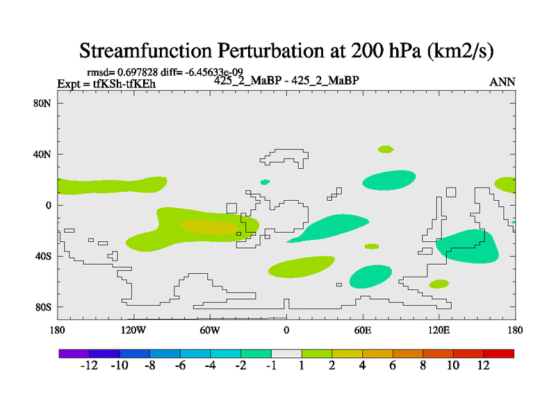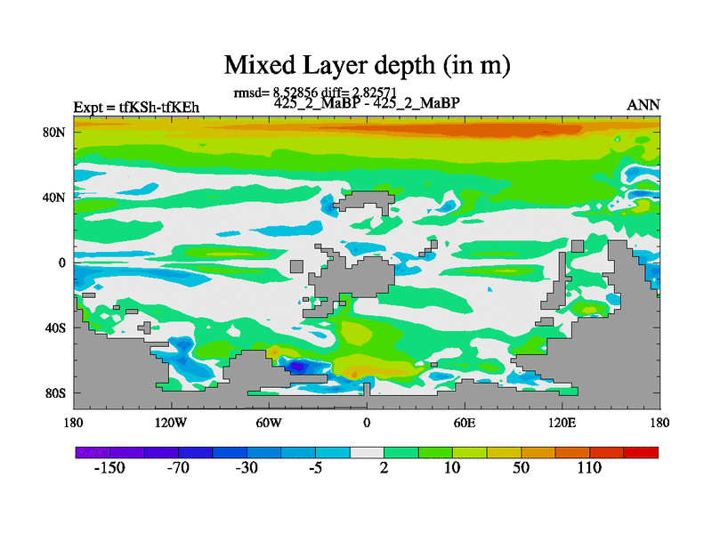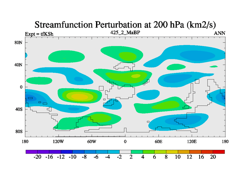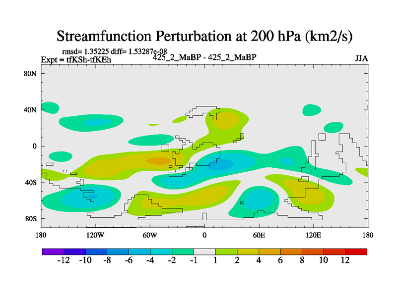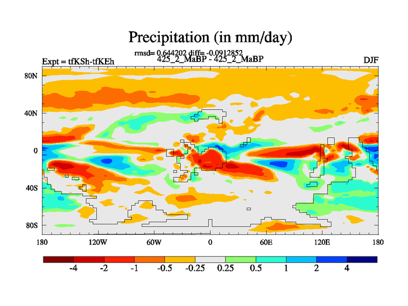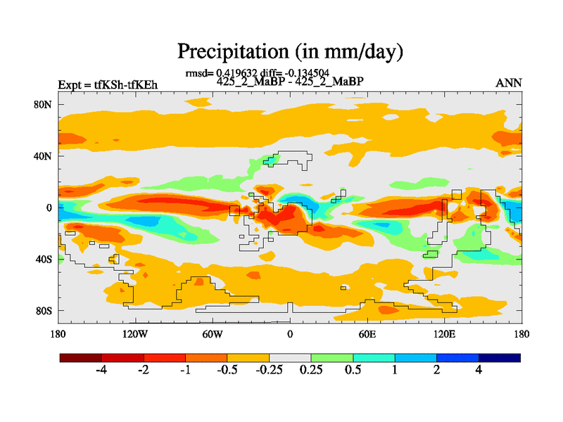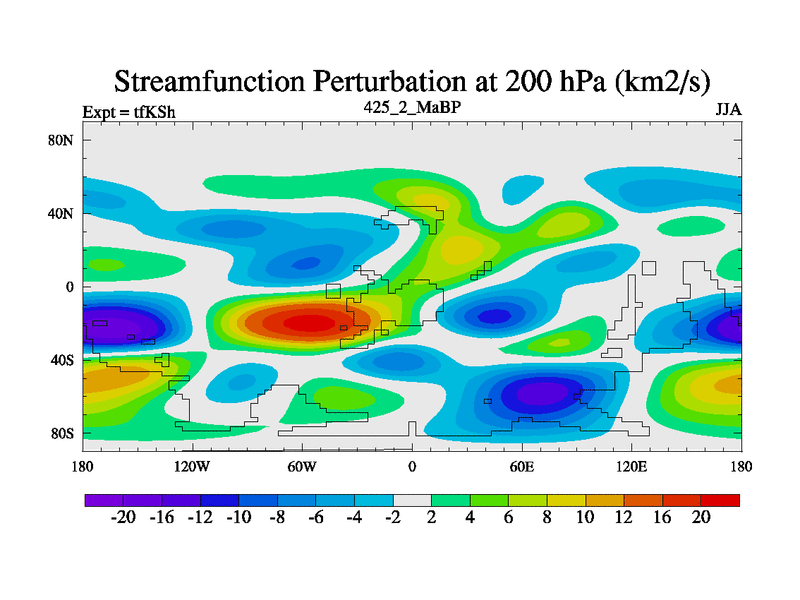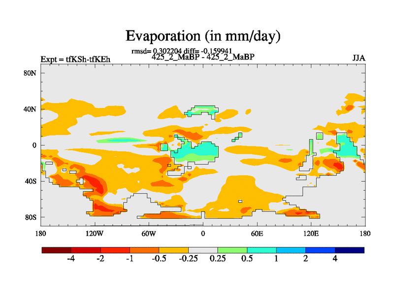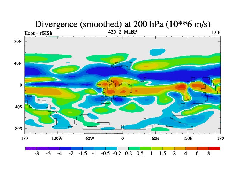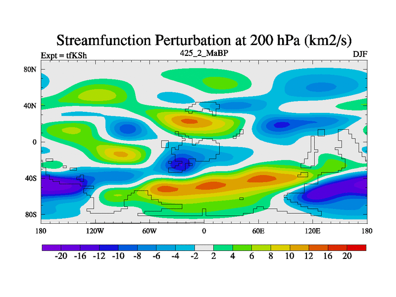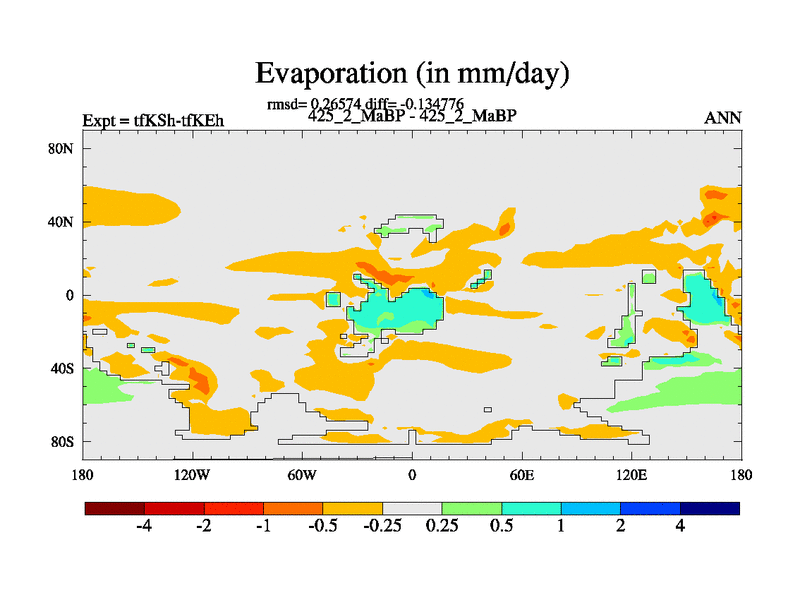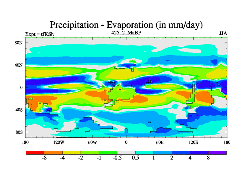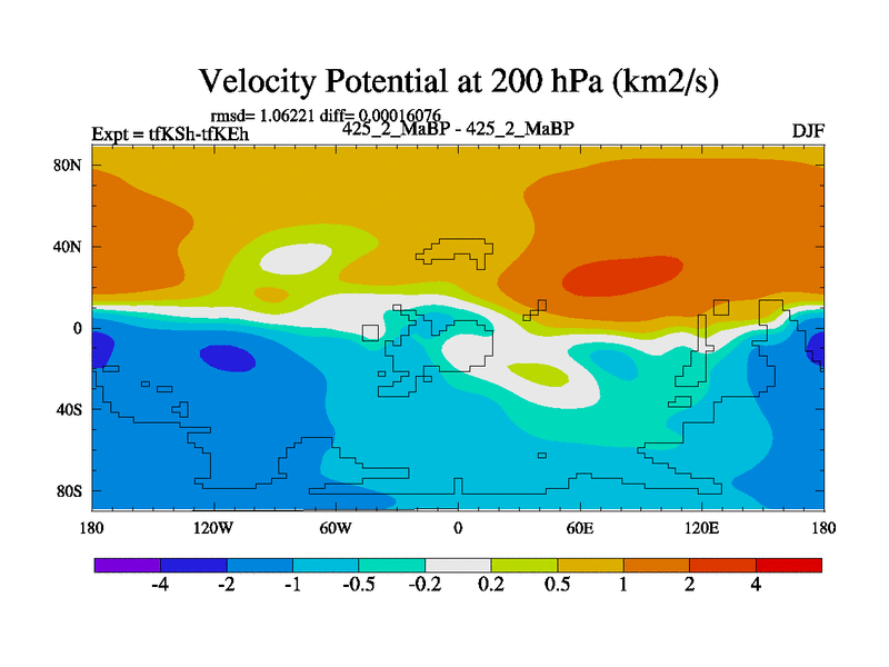 This is the 425.2 Ma simulation using the Scotese palaeogeographies and revised CCN etc. This version has islands and smoothing and desert albedo included. Tuned CO2 to give Scotese temperatures. Started from end of tfKEh.