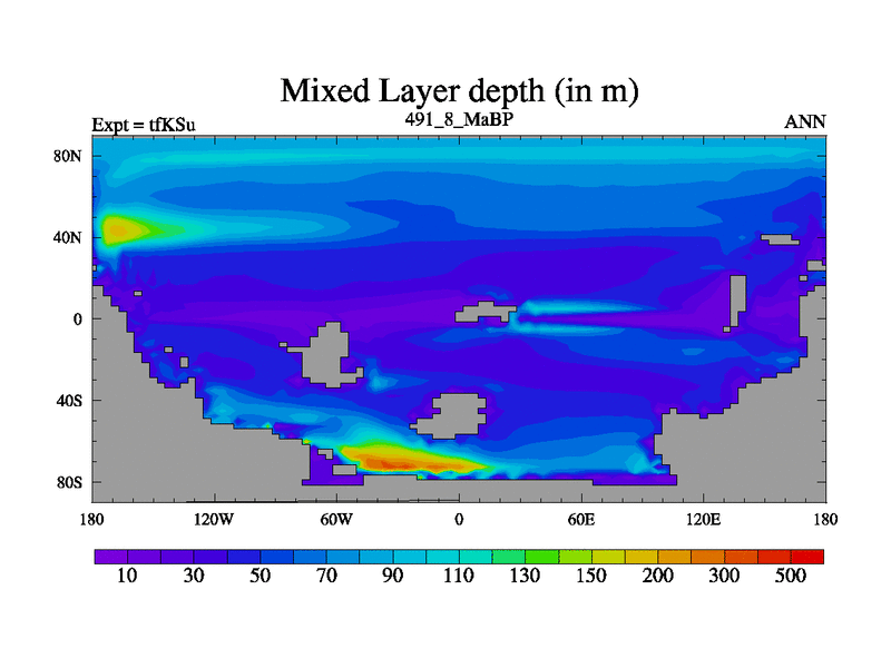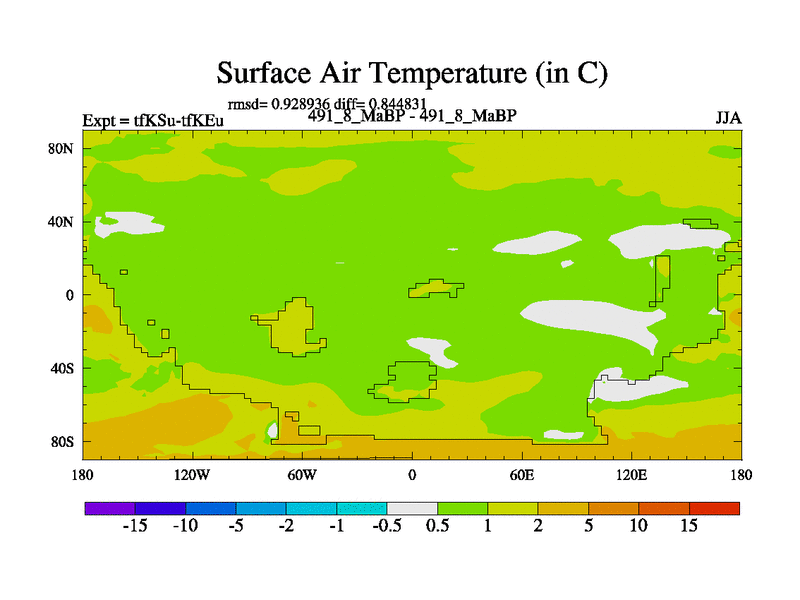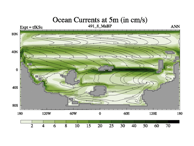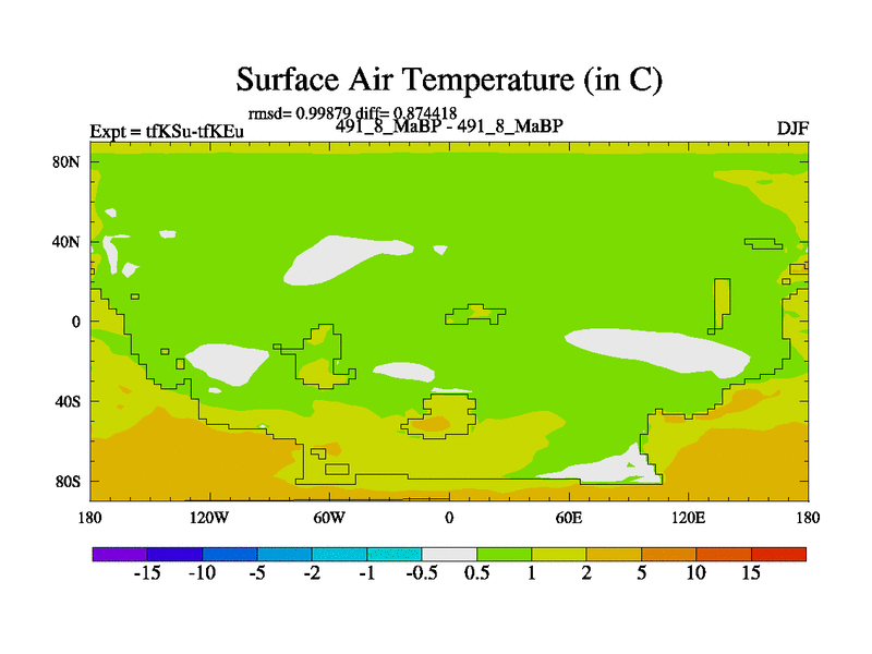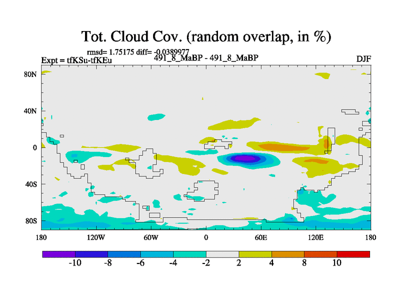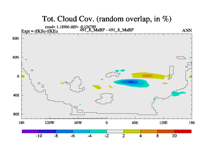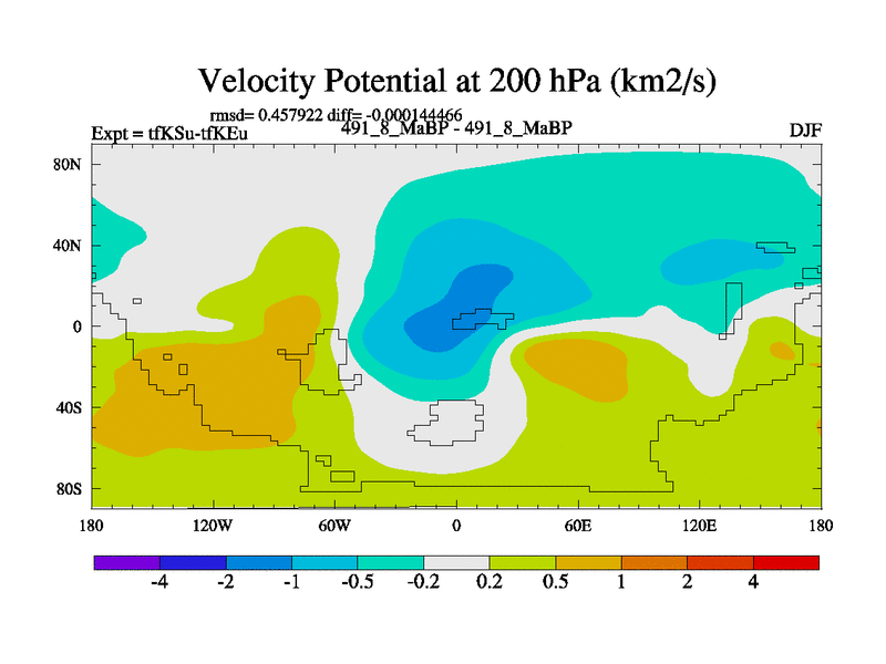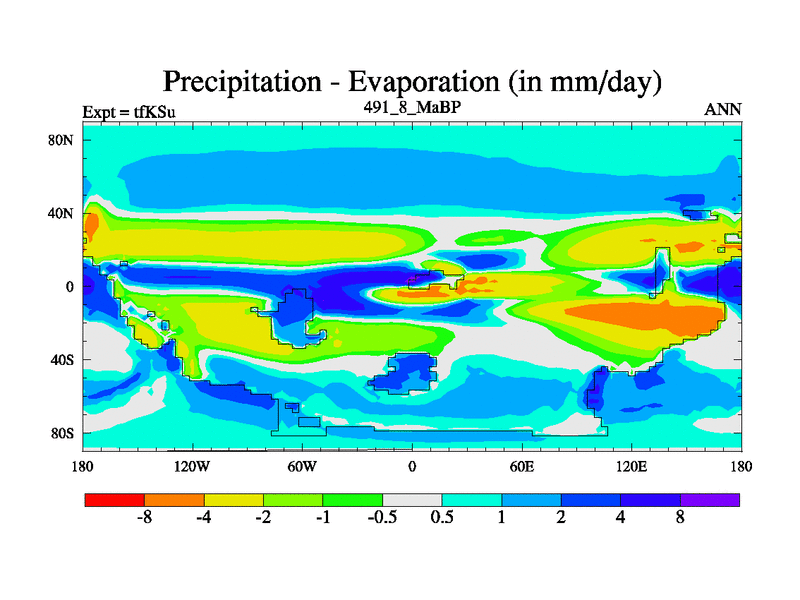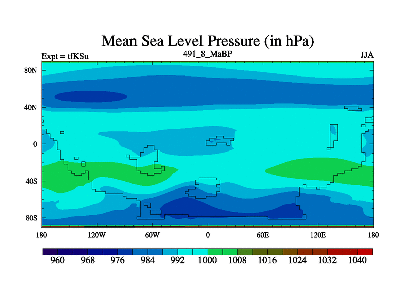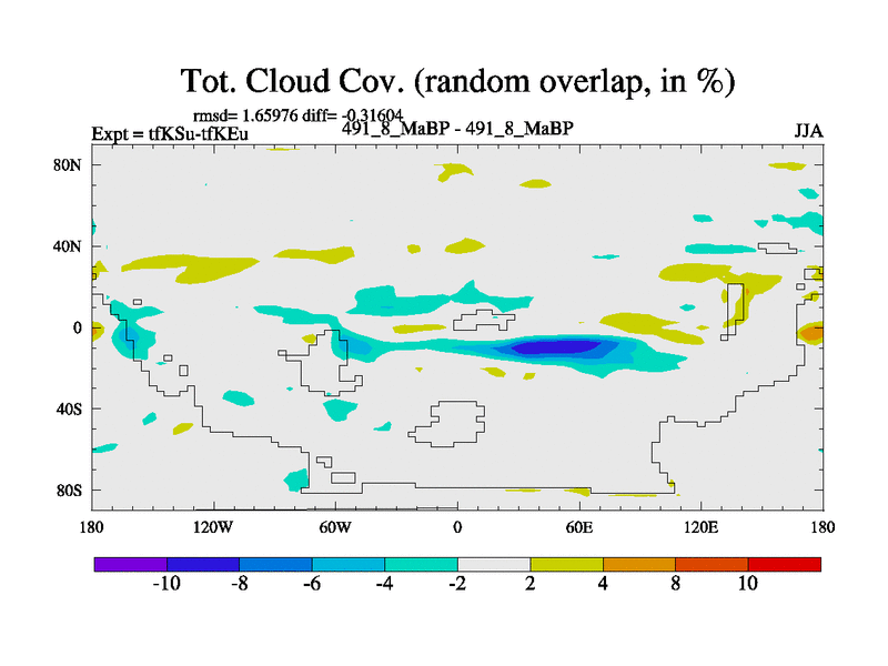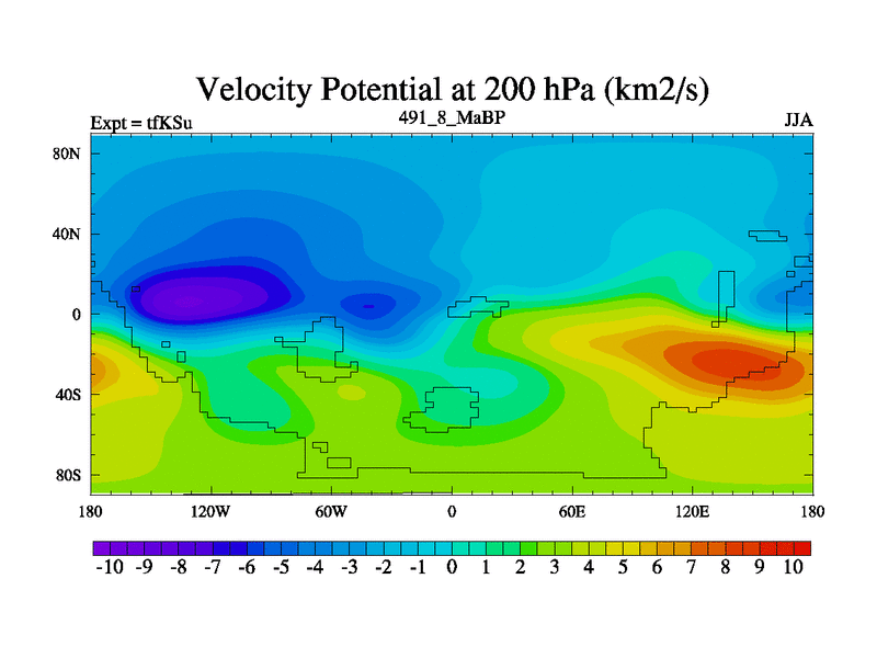 This is the 491.8 Ma simulation using the Scotese palaeogeographies and revised CCN etc. This version has islands and smoothing and desert albedo included. Tuned CO2 to give Scotese temperatures. Started from end of tfKEu.