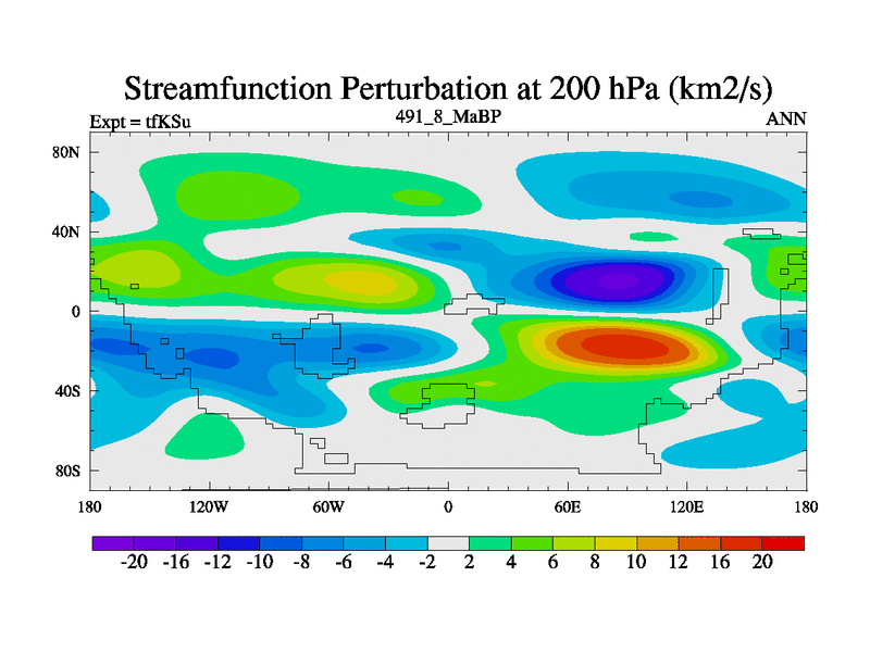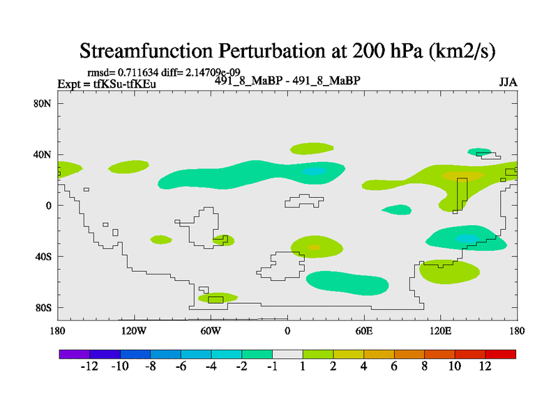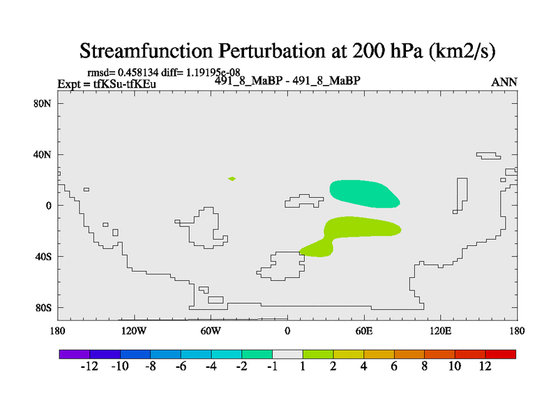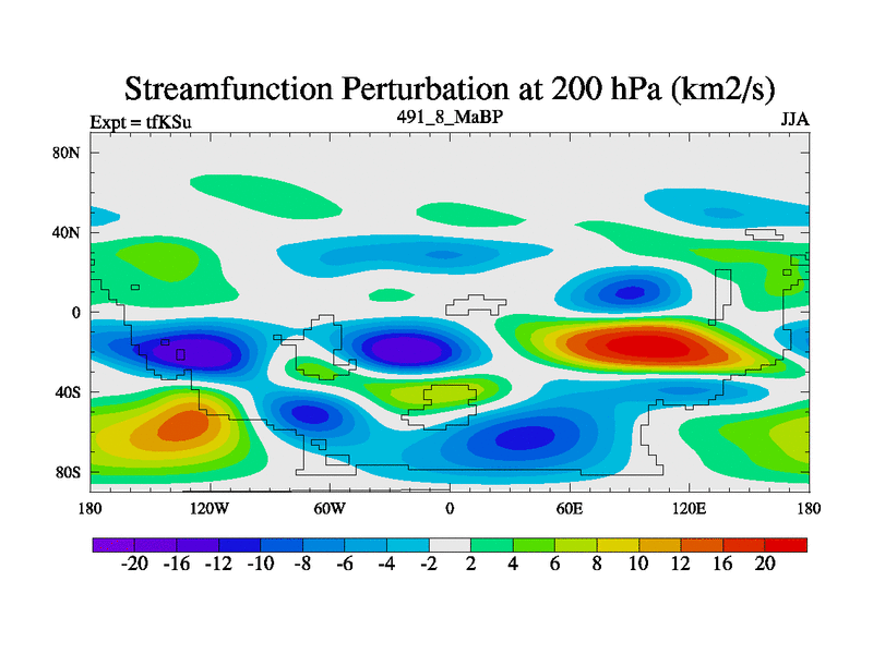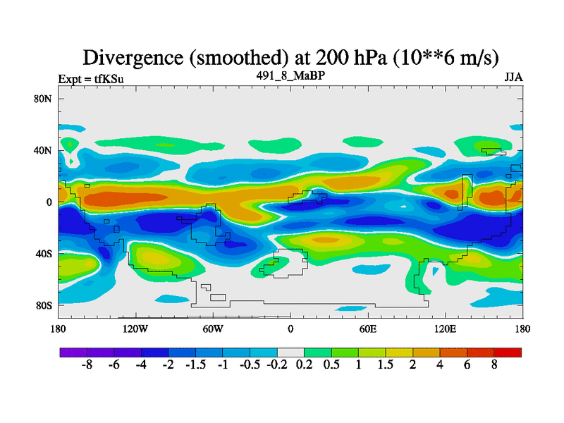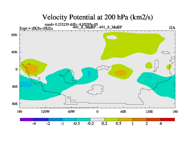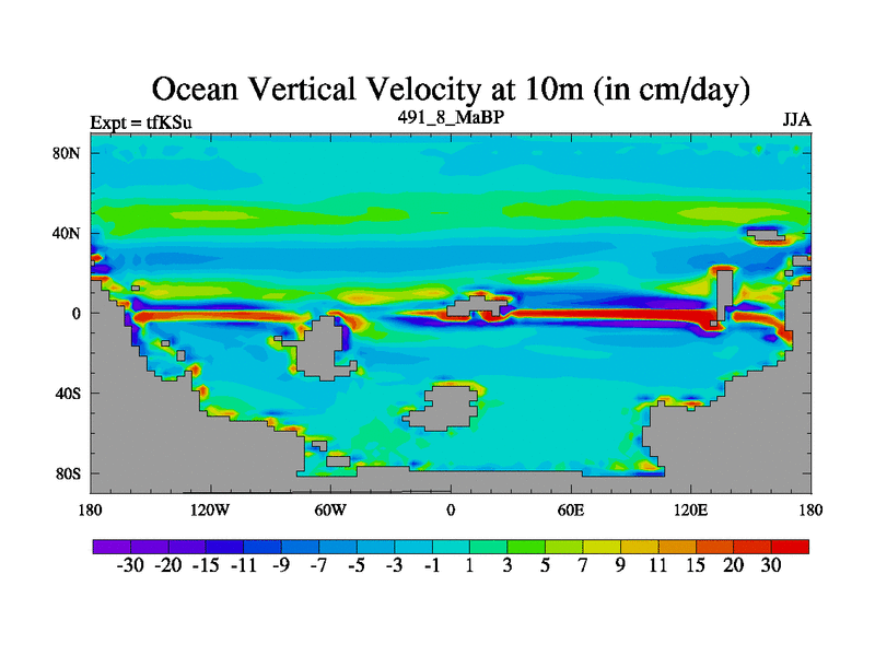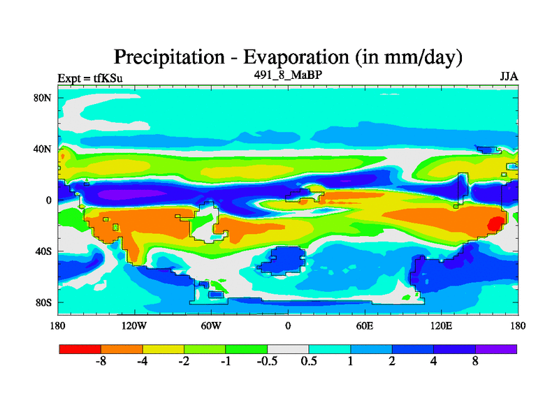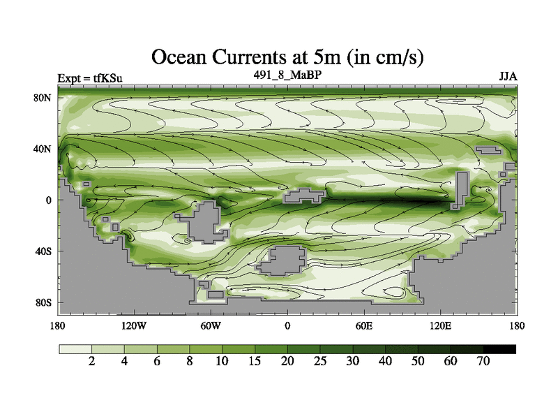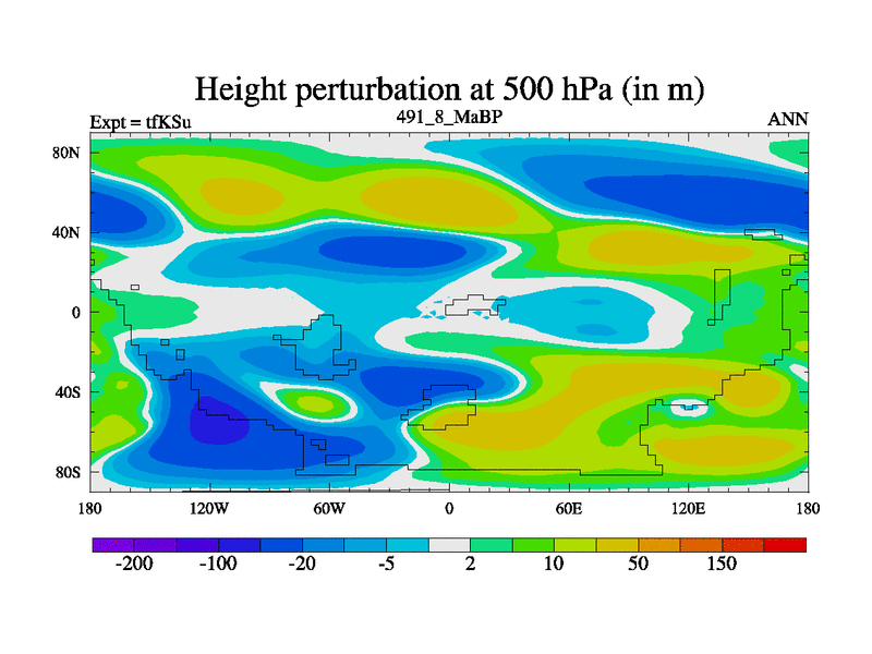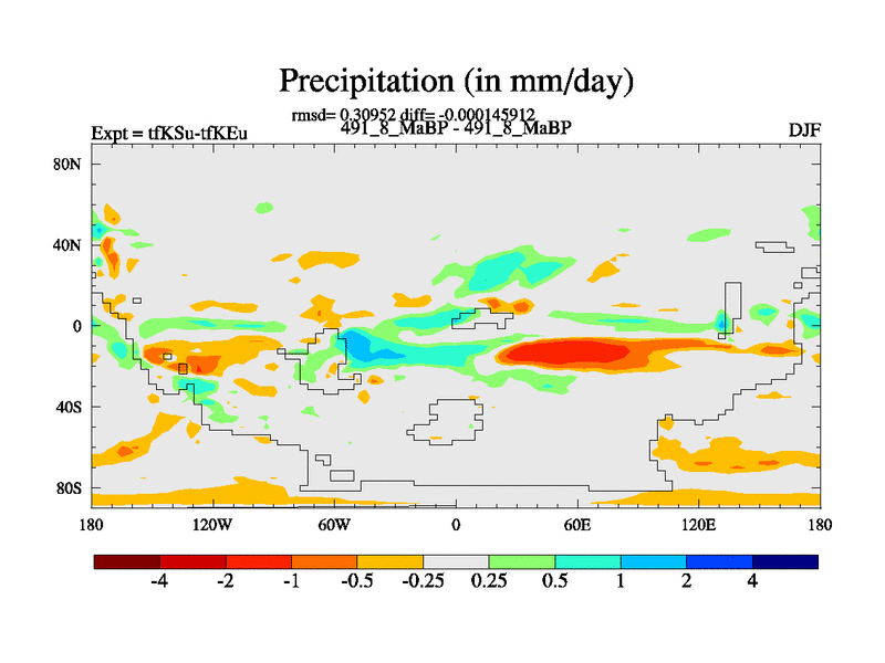 This is the 491.8 Ma simulation using the Scotese palaeogeographies and revised CCN etc. This version has islands and smoothing and desert albedo included. Tuned CO2 to give Scotese temperatures. Started from end of tfKEu.