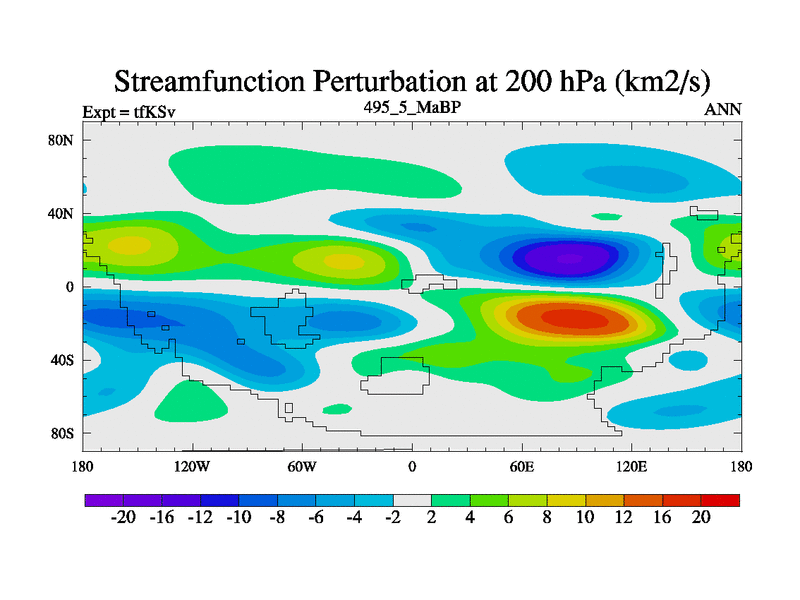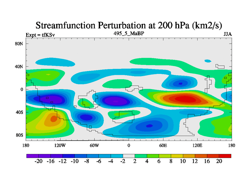 This is the 495.5 Ma simulation using the Scotese palaeogeographies and revised CCN etc. This version has islands and smoothing and desert albedo included. Tuned CO2 to give Scotese temperatures. Started from end of tfKEv.