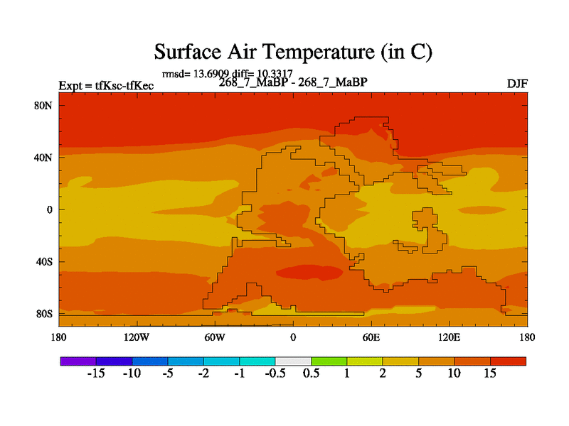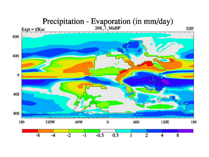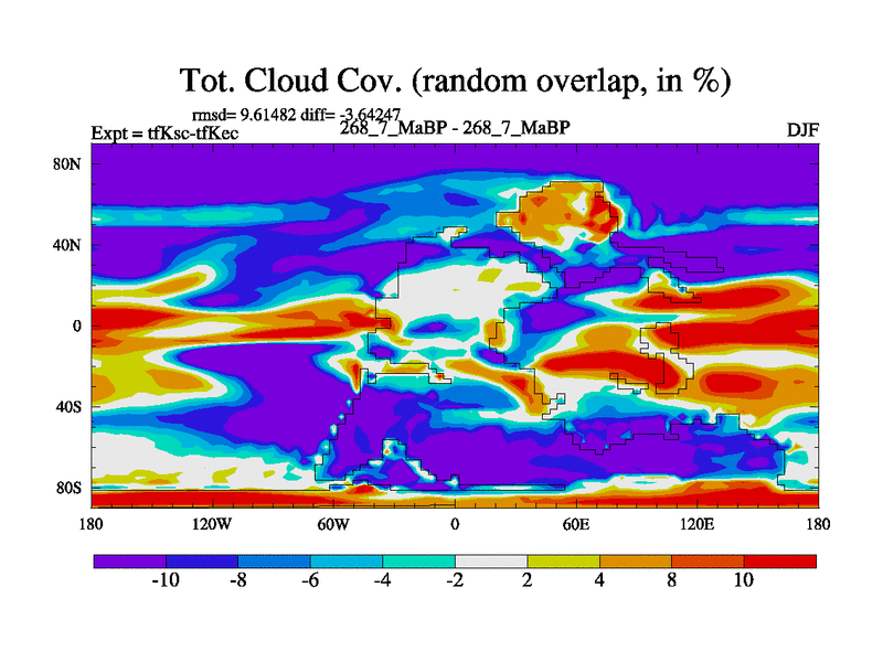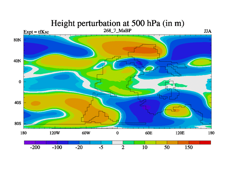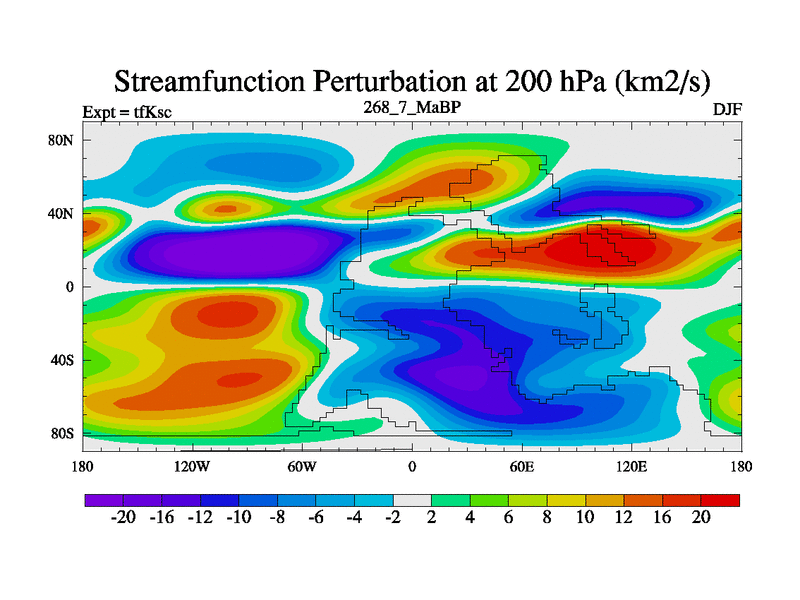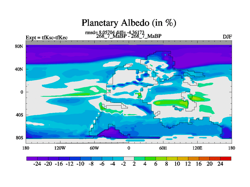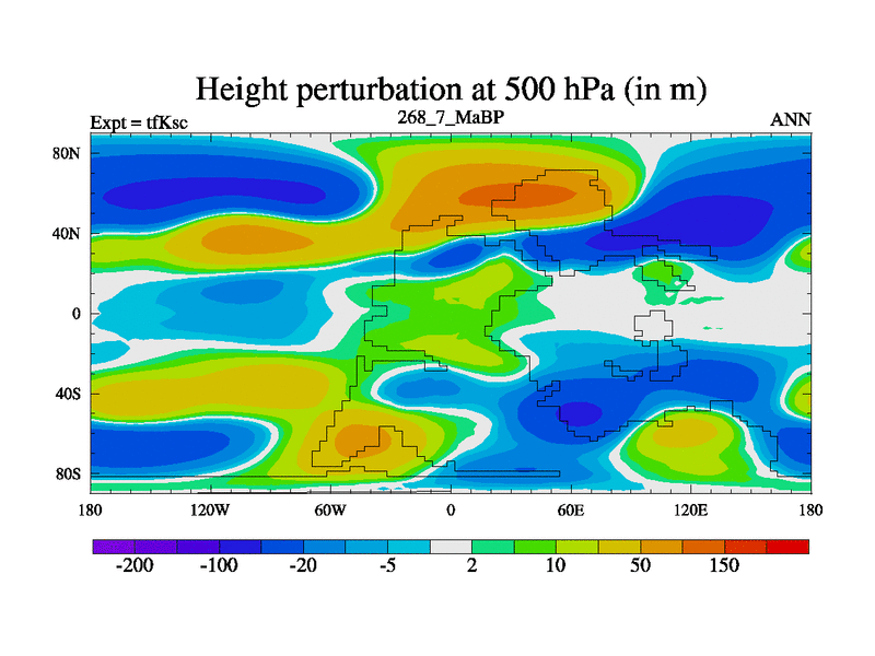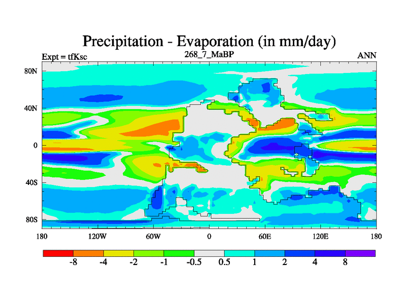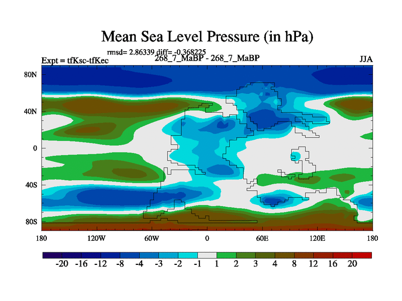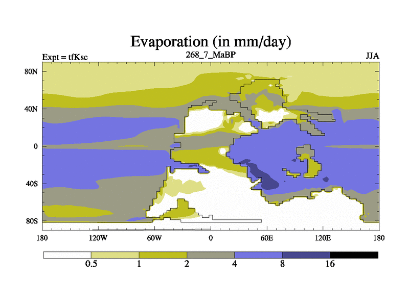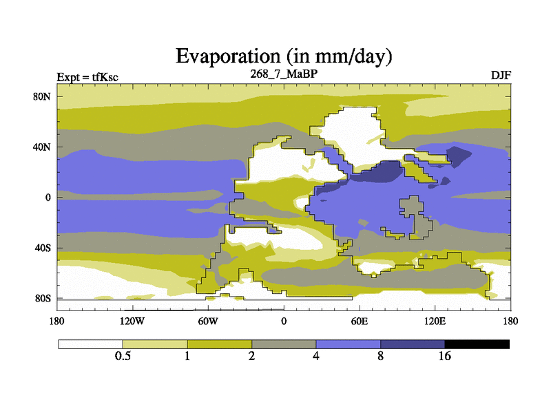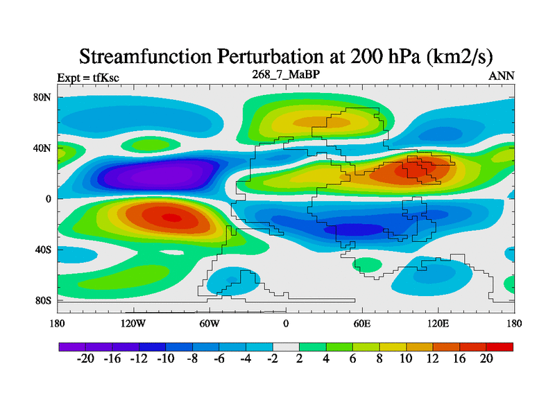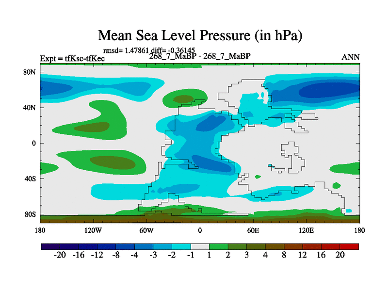 This is the 268.7 Ma simulation using the Scotese palaeogeographies and revised CCN etc. This version has islands and smoothing and desert albedo included. Tuned CO2 to give Scotese temperatures. Started from end of tfKec.