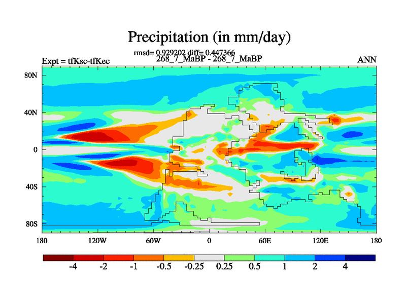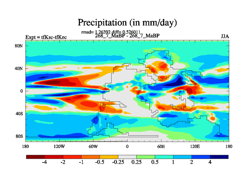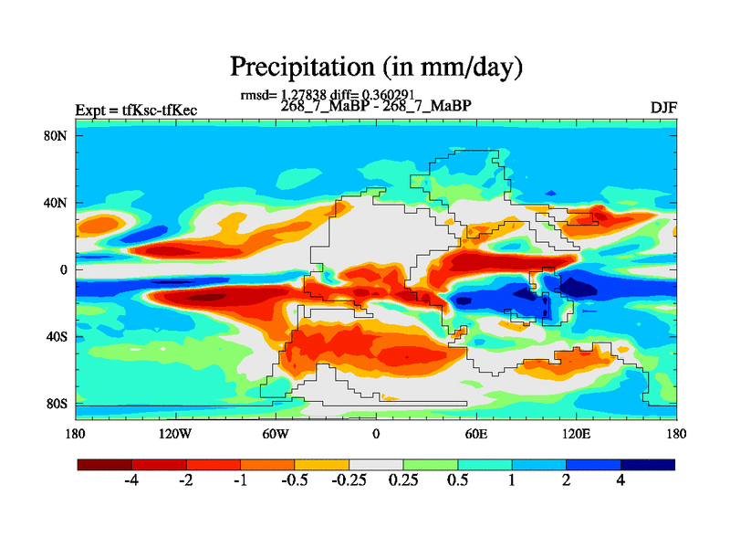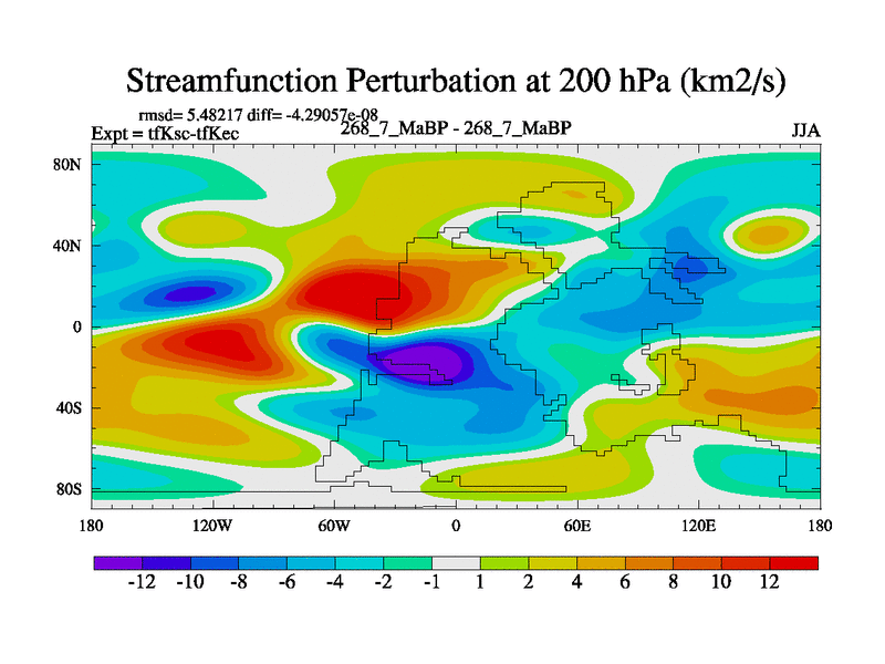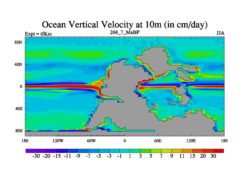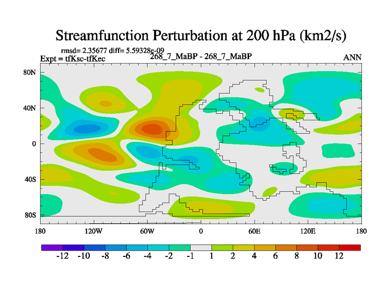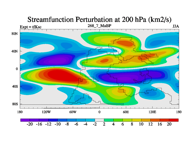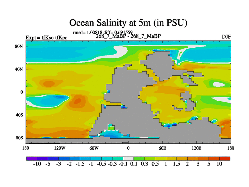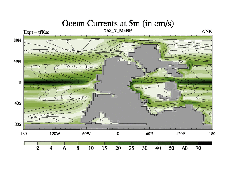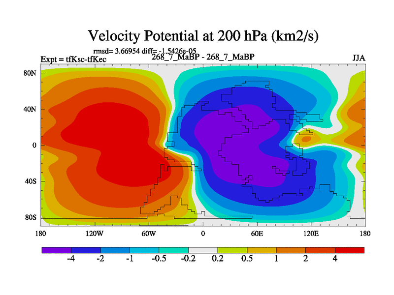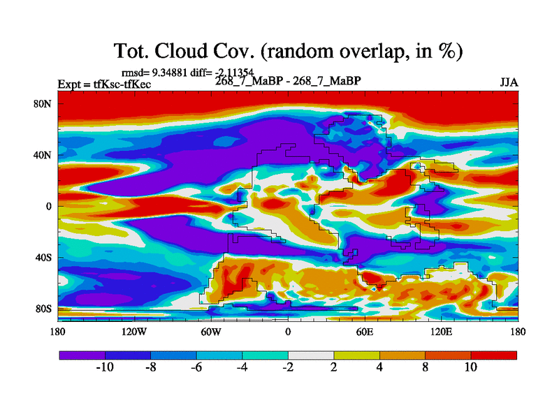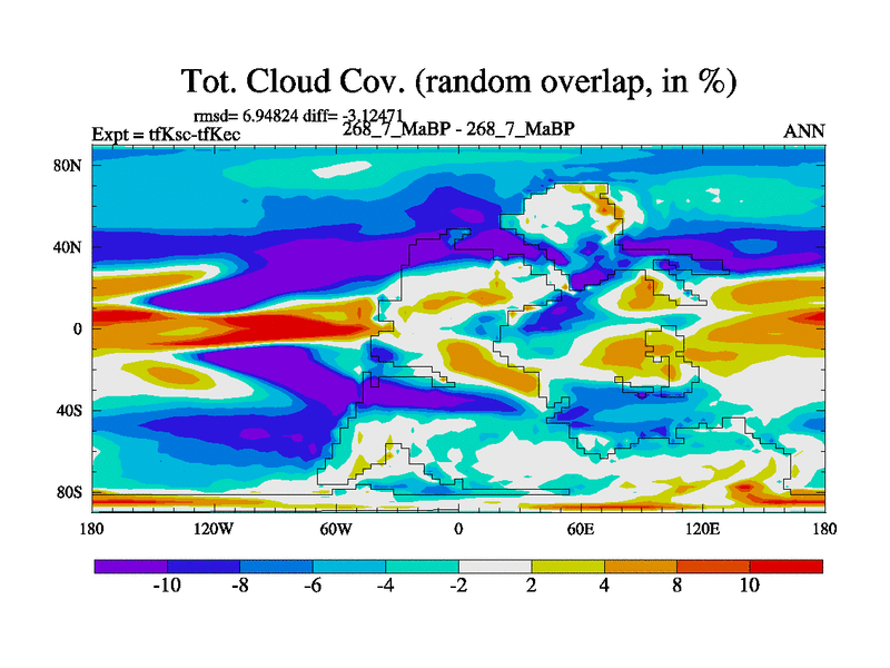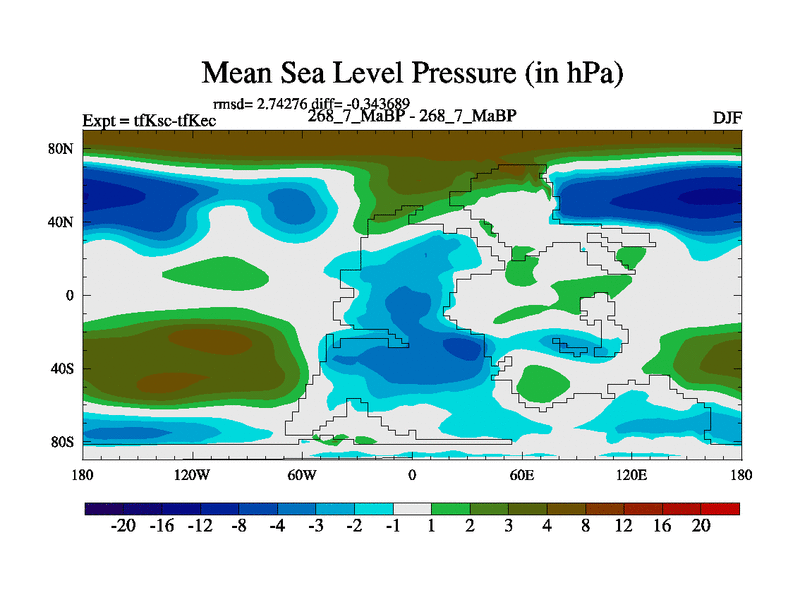 This is the 268.7 Ma simulation using the Scotese palaeogeographies and revised CCN etc. This version has islands and smoothing and desert albedo included. Tuned CO2 to give Scotese temperatures. Started from end of tfKec.